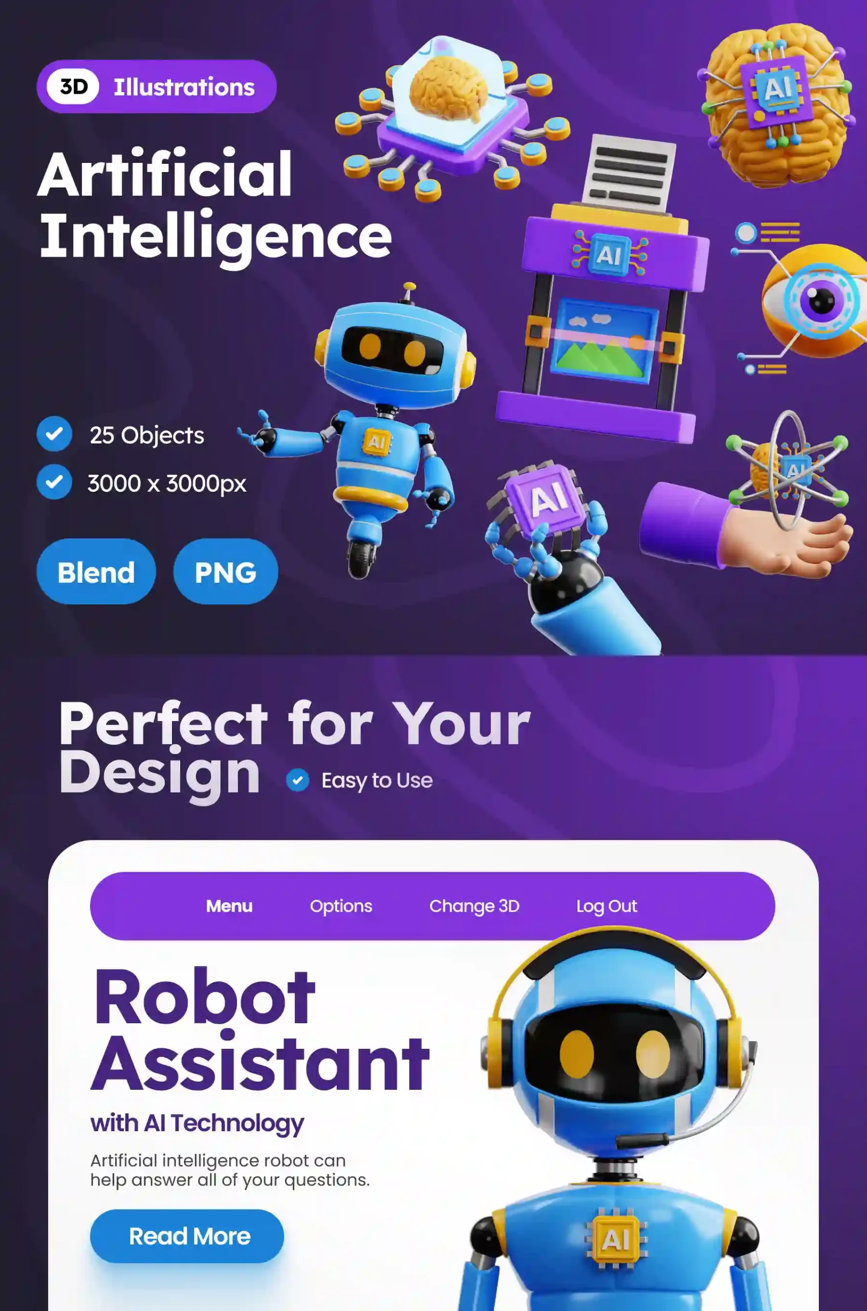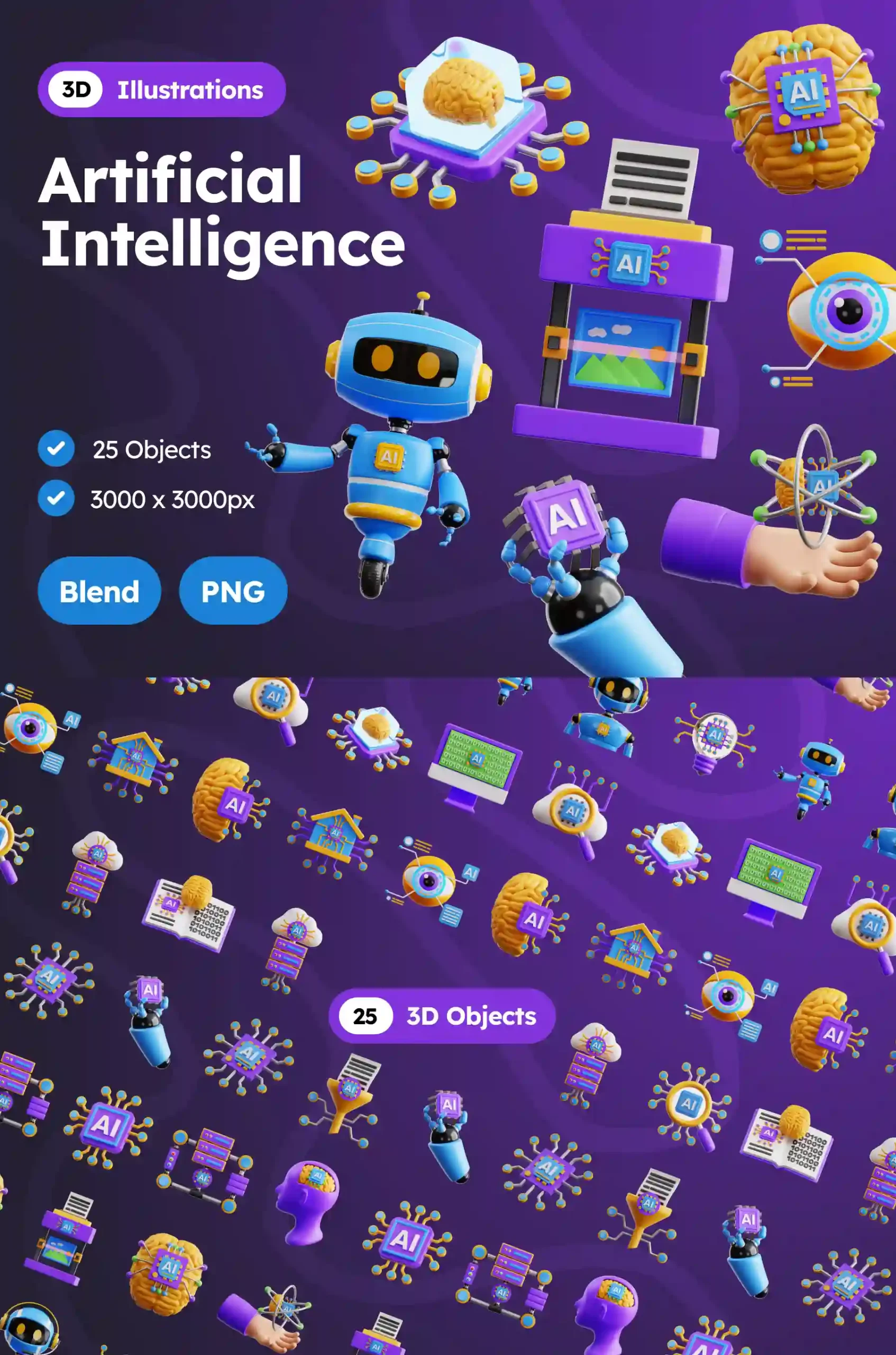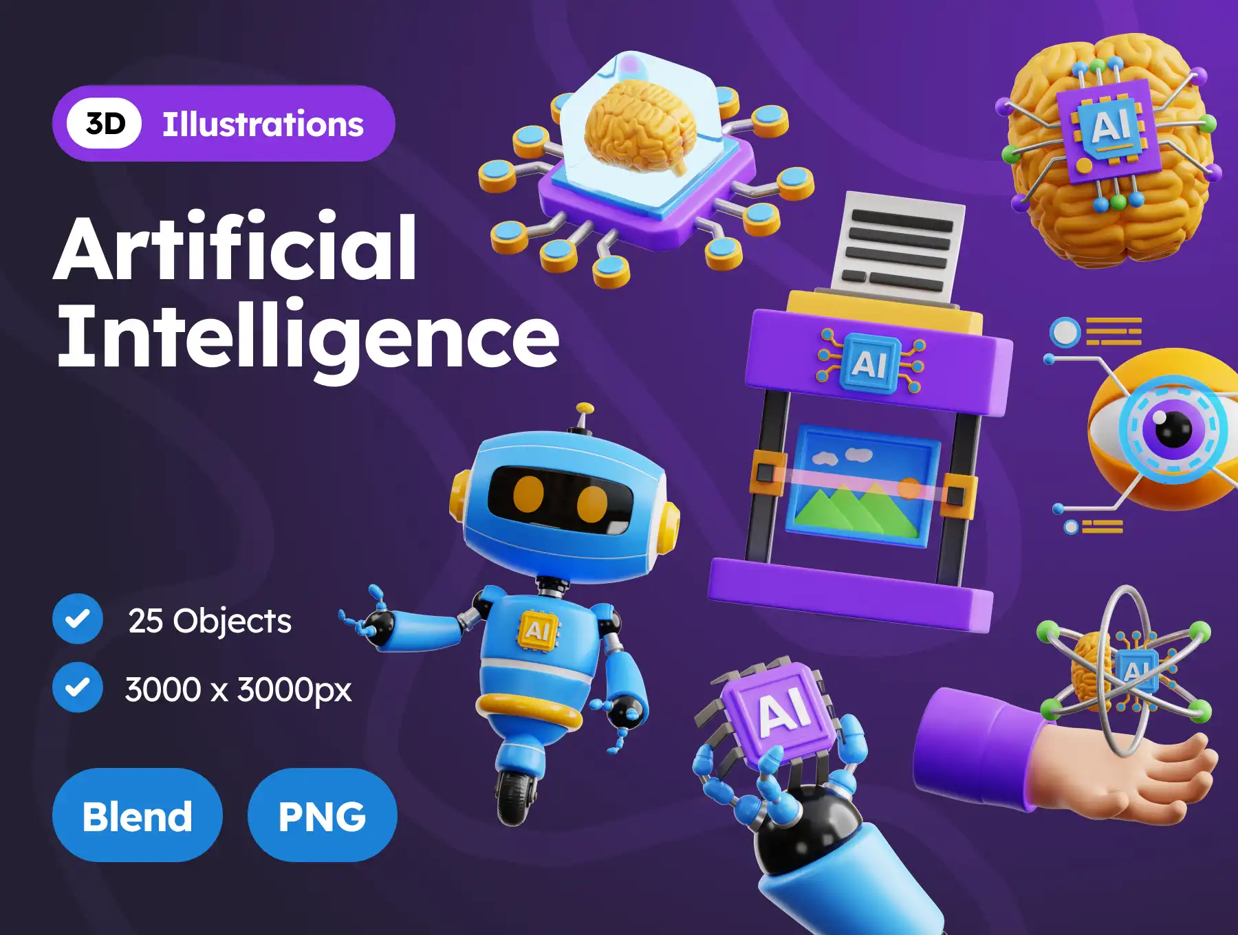 Artificial Intelligence 3D Icons can be used for design needs, animation,
