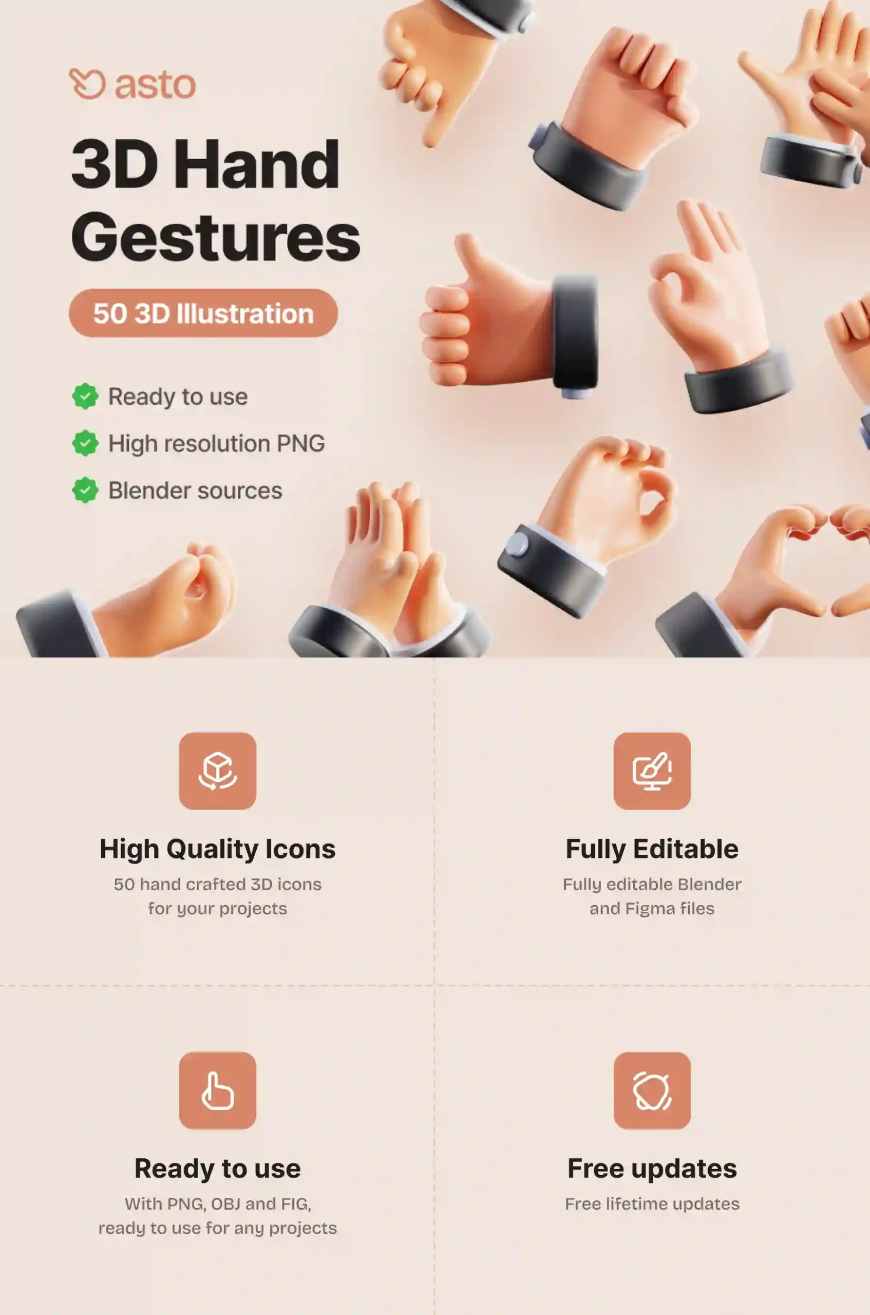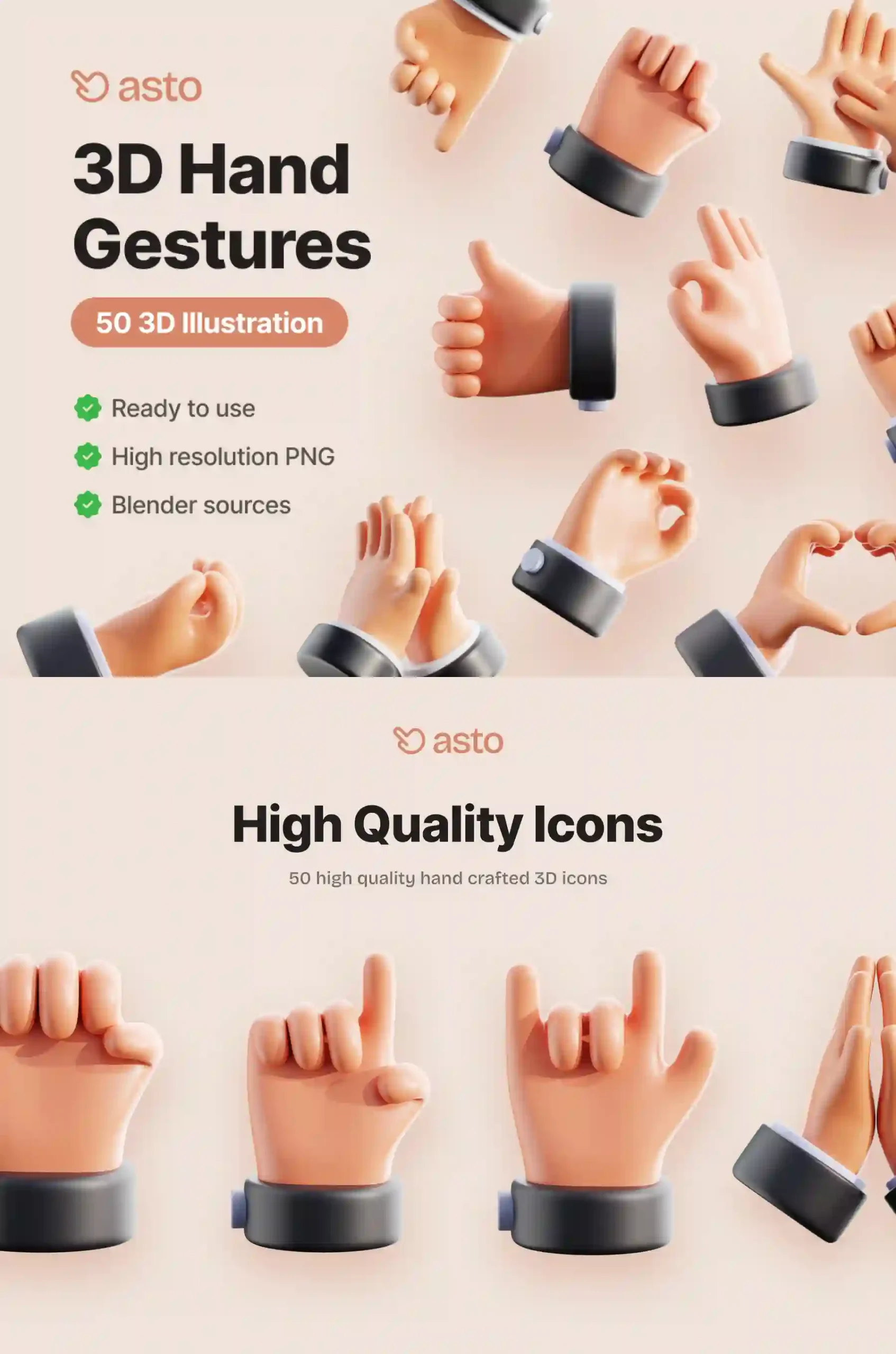 Hand Gesture 3D Icons offer a visually expressive collection of gestures in