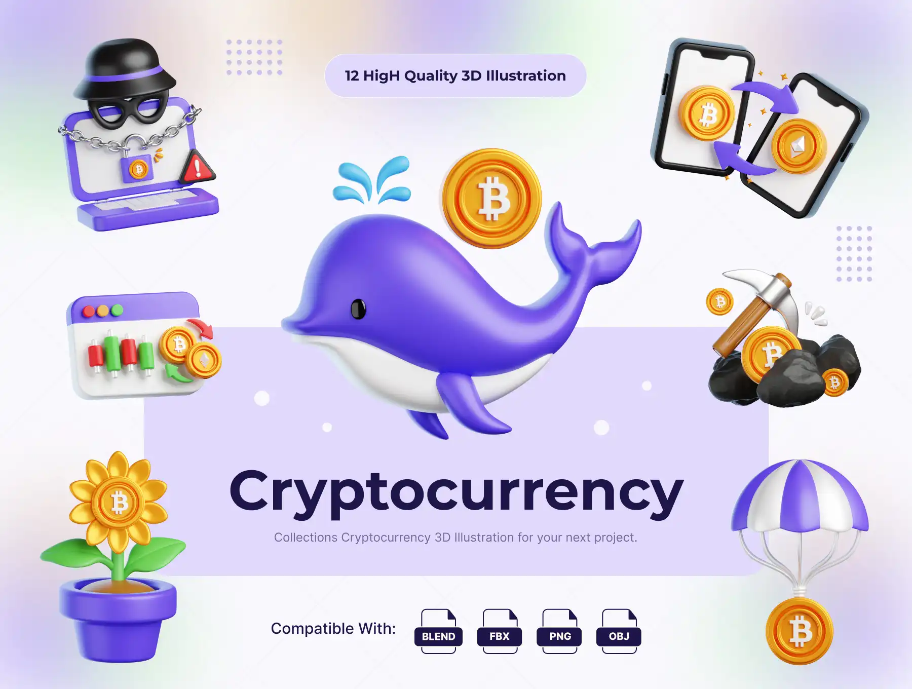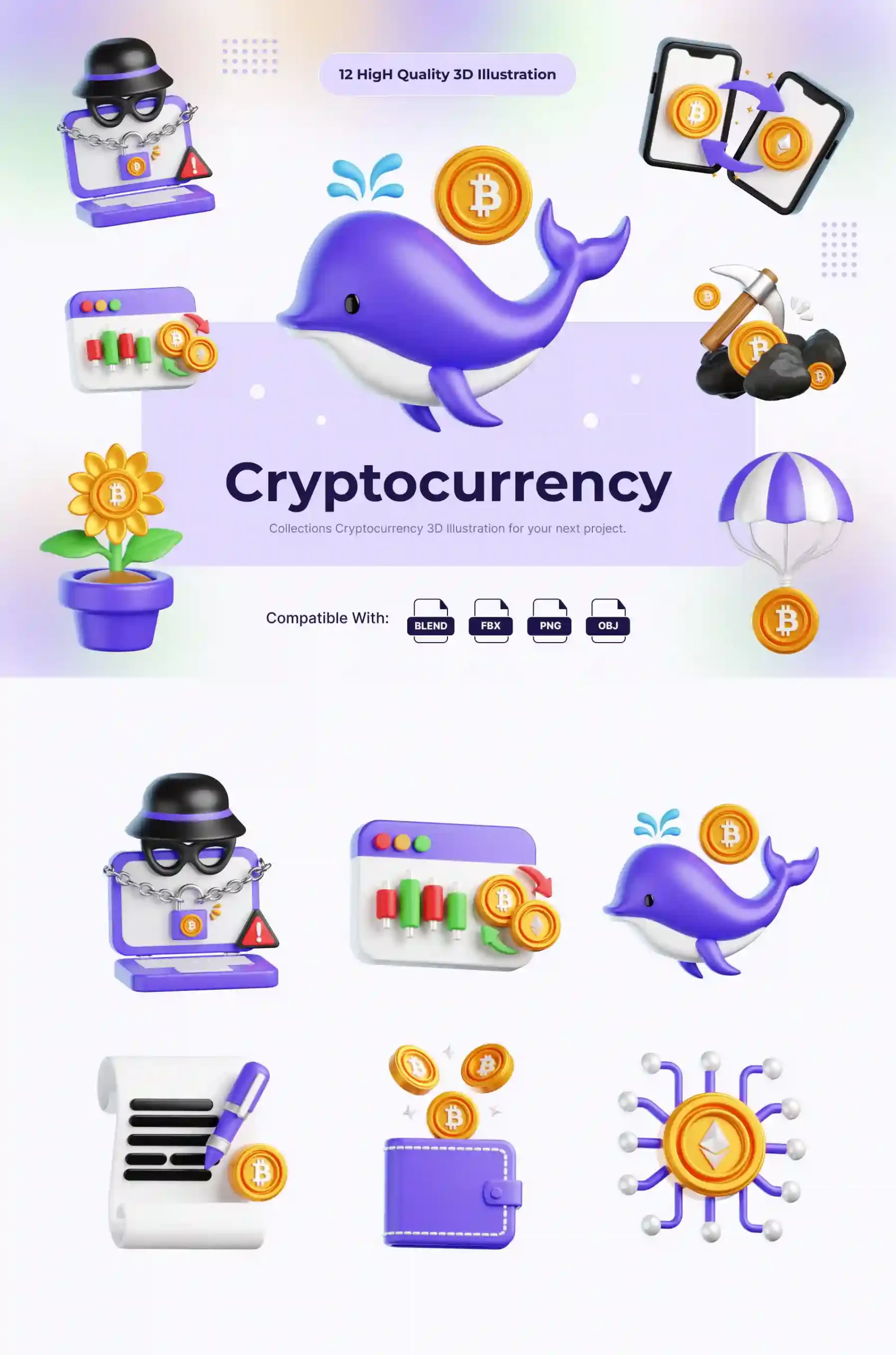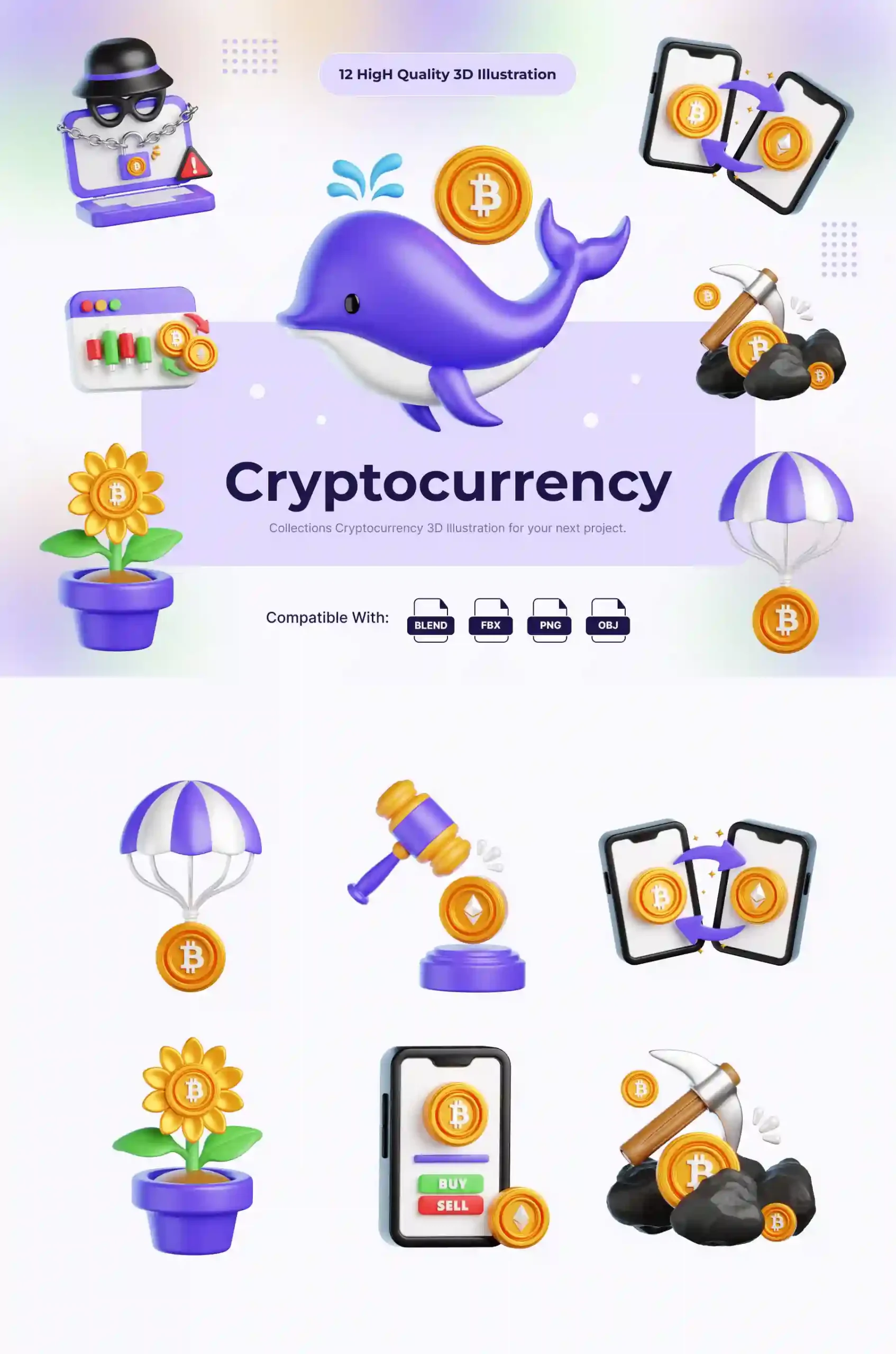 **Cryptocurrency 3D Icon** 12 ready-made Cryptocurrency 3D Icon file