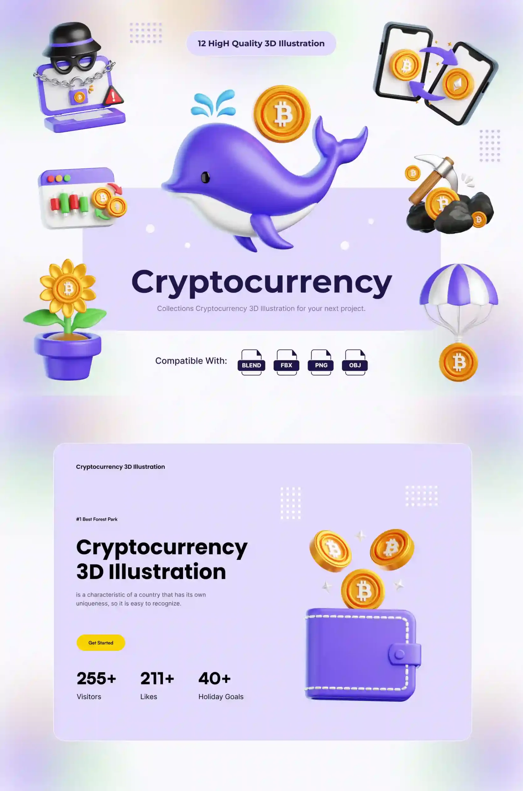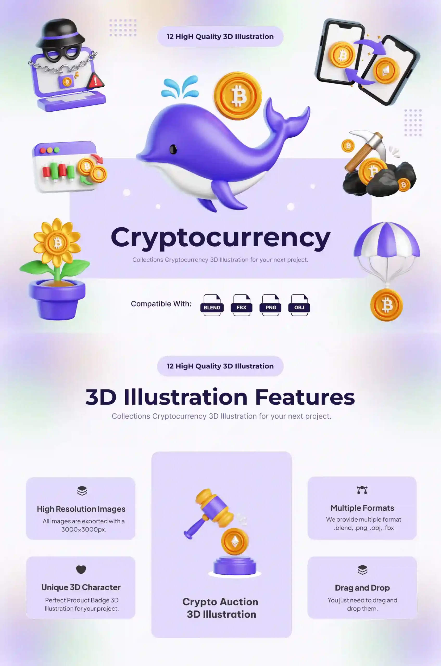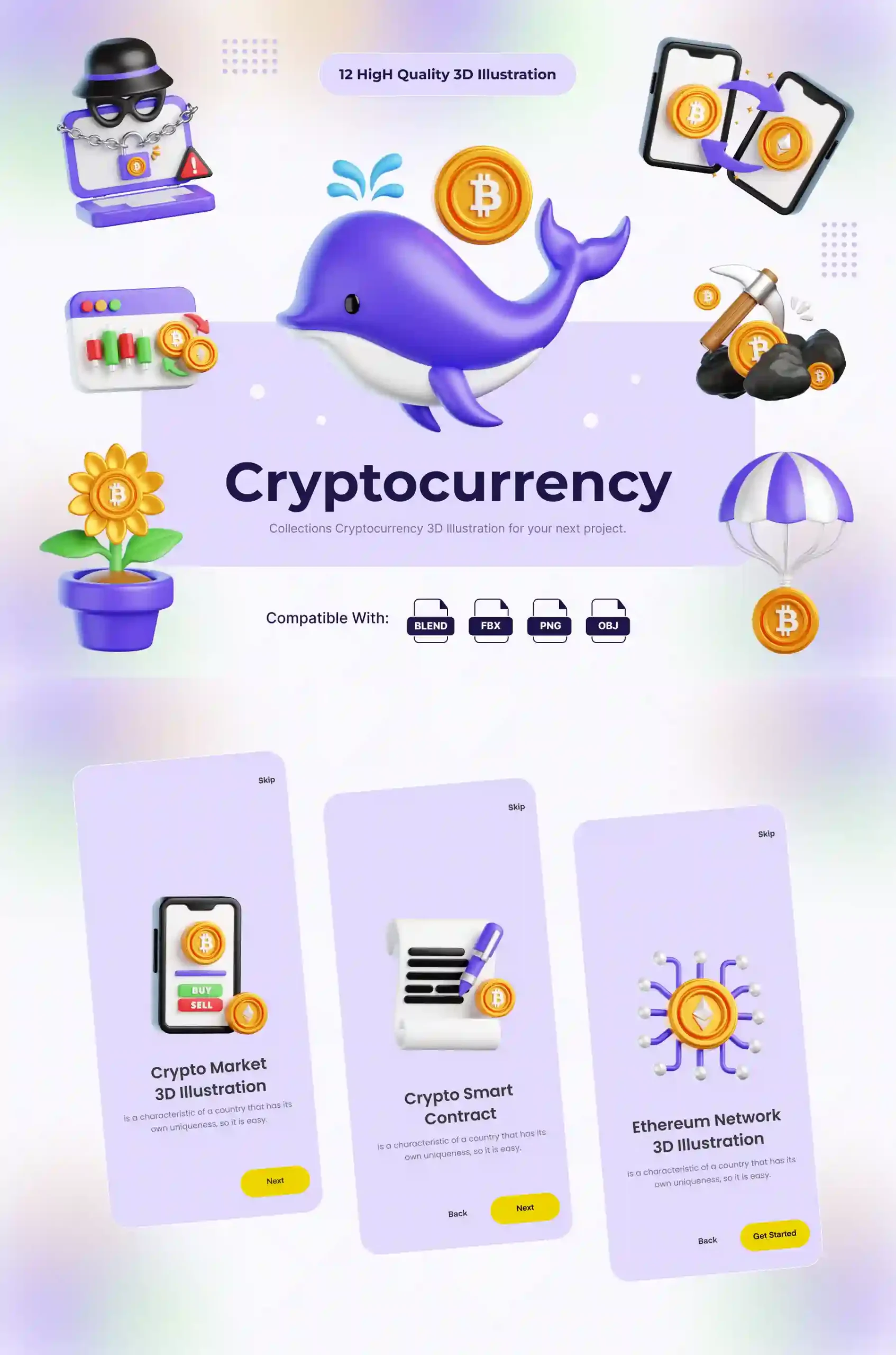 **Cryptocurrency 3D Icon** 12 ready-made Cryptocurrency 3D Icon file