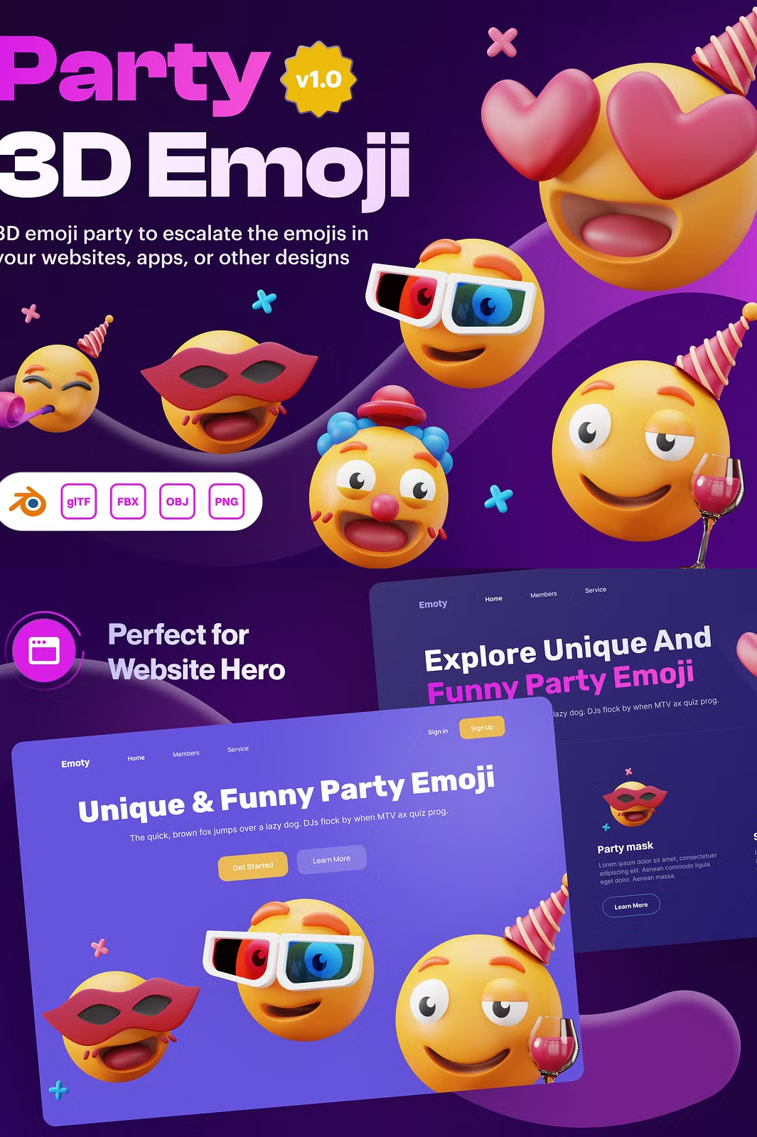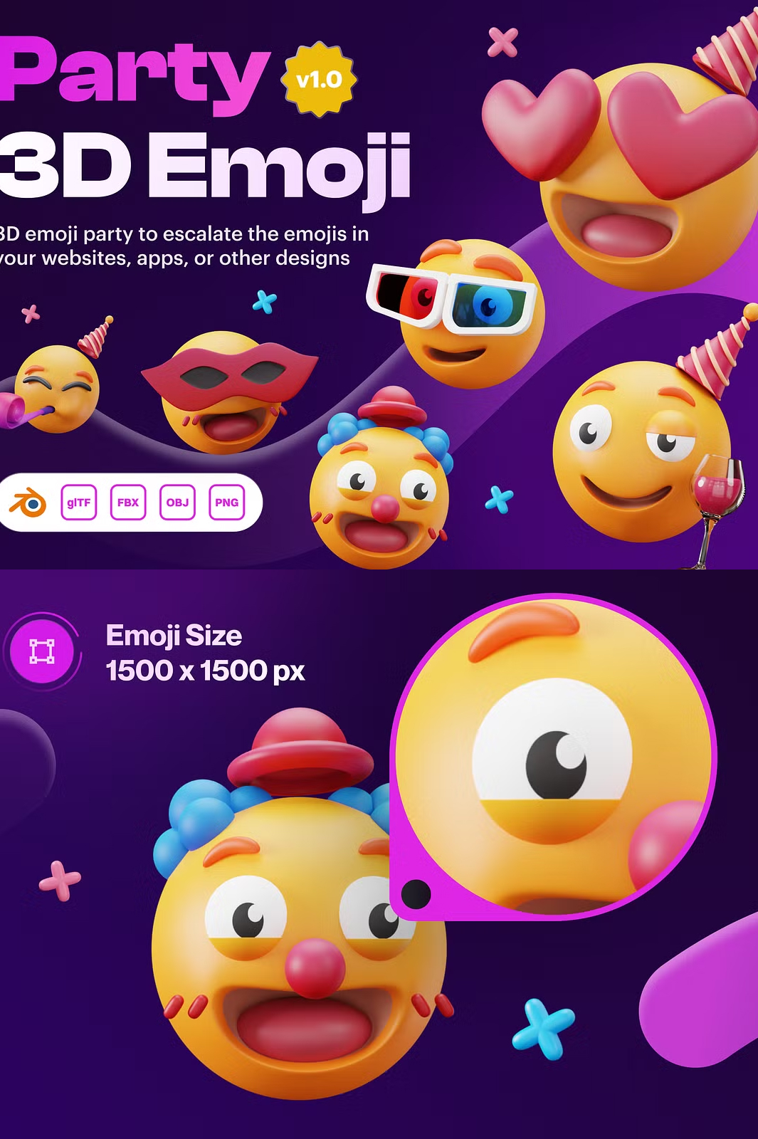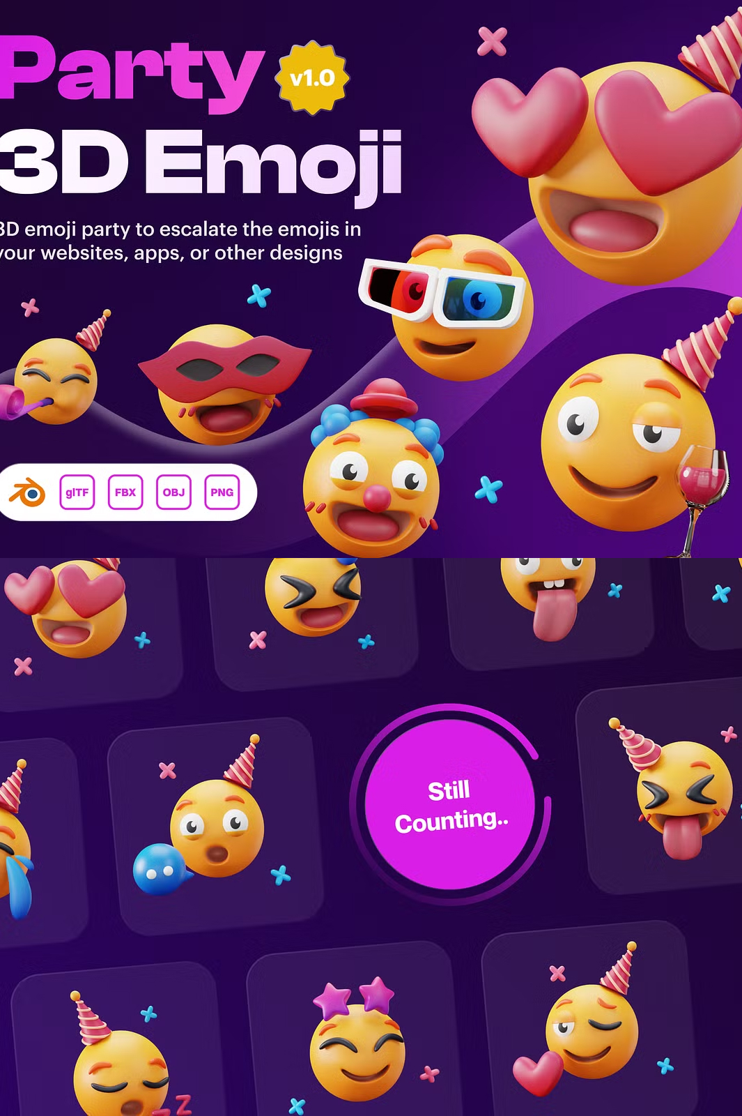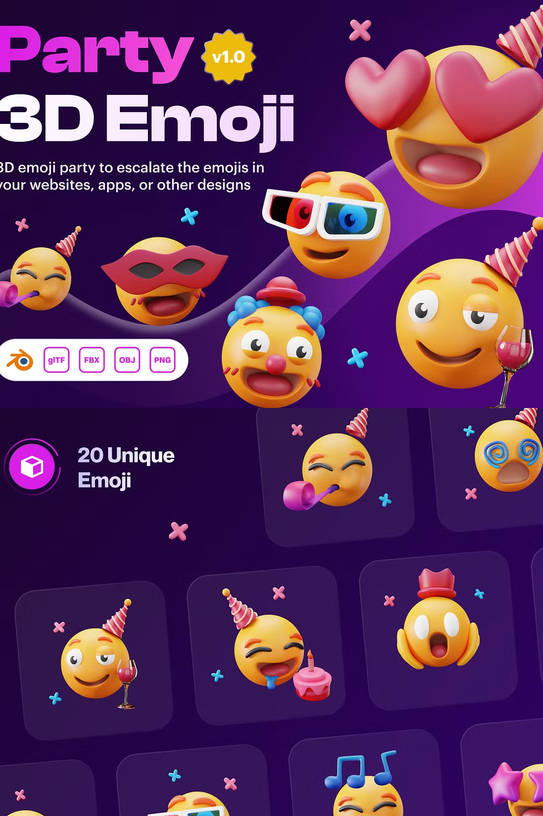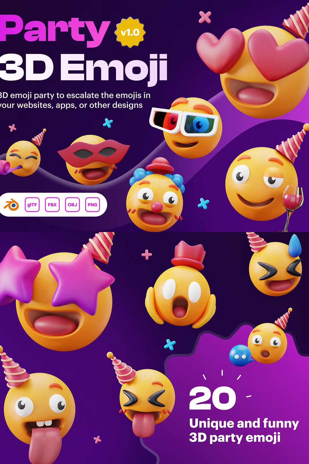 Upgrade your creative projects with the Emoty 3D Party Emoji Pack and add a lively, fun-filled vibe to your designs. Perfect for digital artists, graphic designers, social media marketers, and event planners.