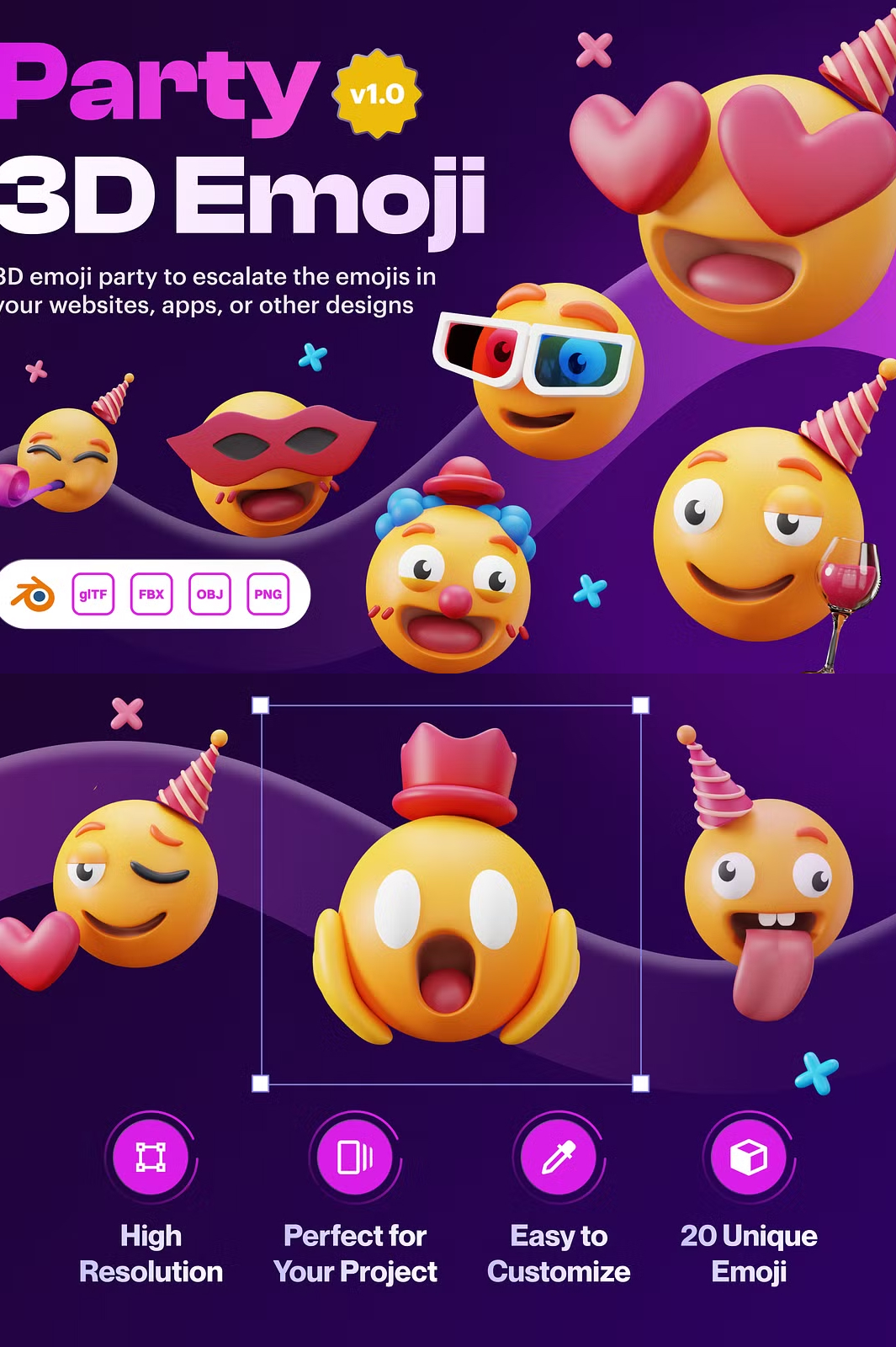 Inject joy, excitement, and personality into your projects with Emoty 3D Party Emoji Pack! This unique and fun collection features high-quality 3D emojis designed for parties, birthdays, festivals, and celebrations. Whether you’re designing a website, social media post, or mobile app, these customizable emojis will add a playful and engaging touch to your work.