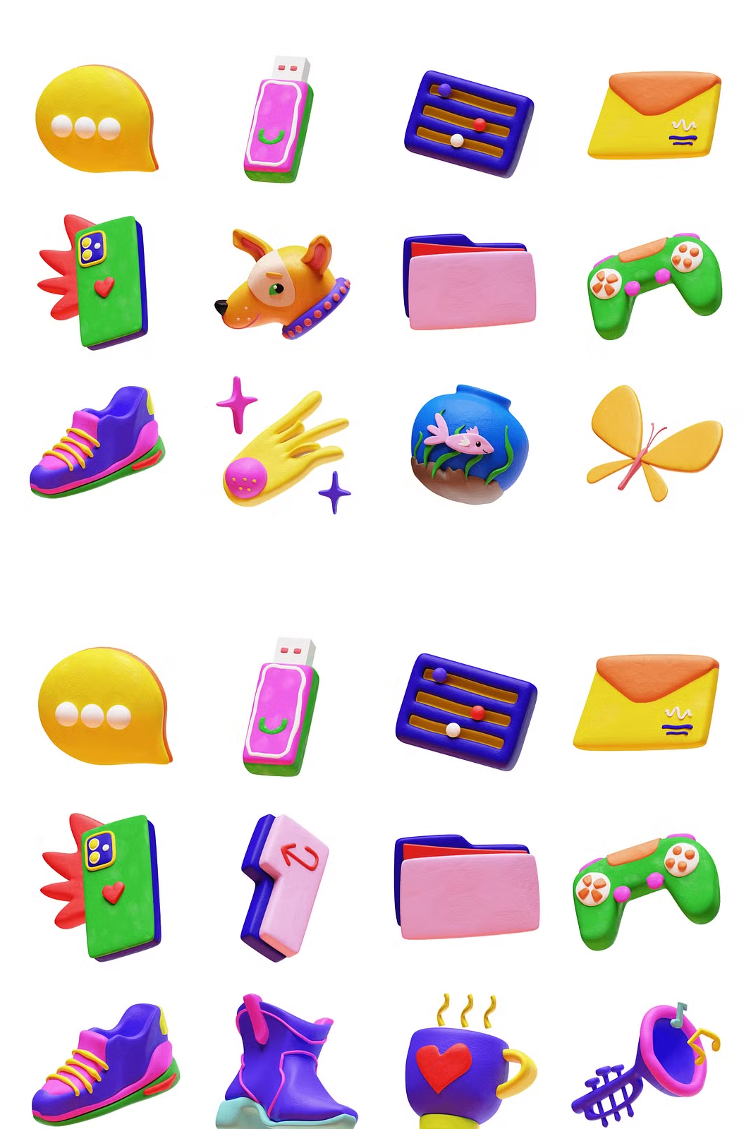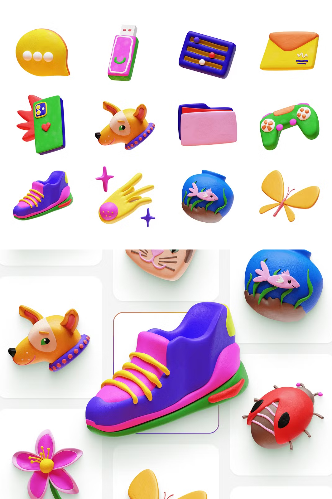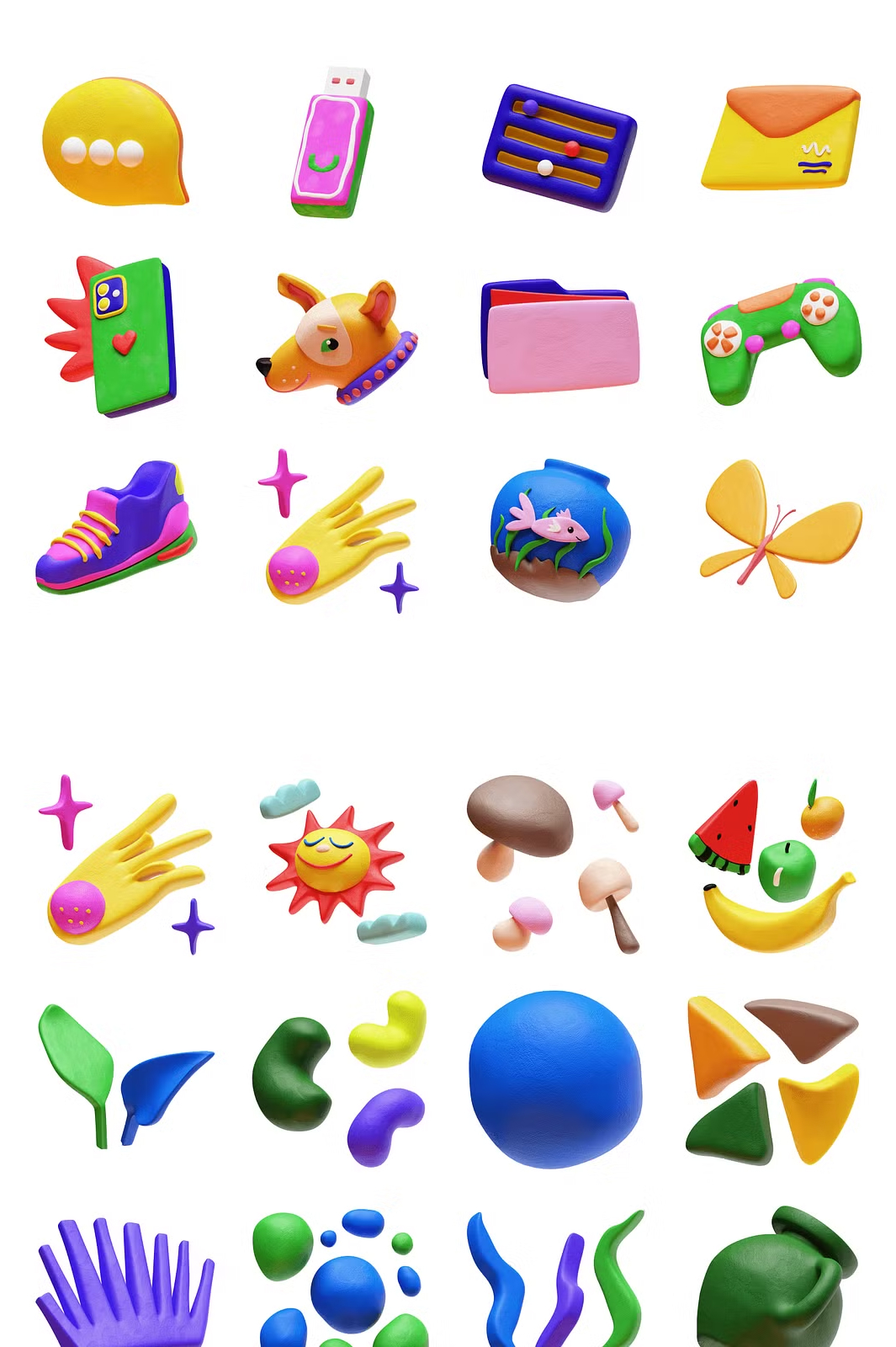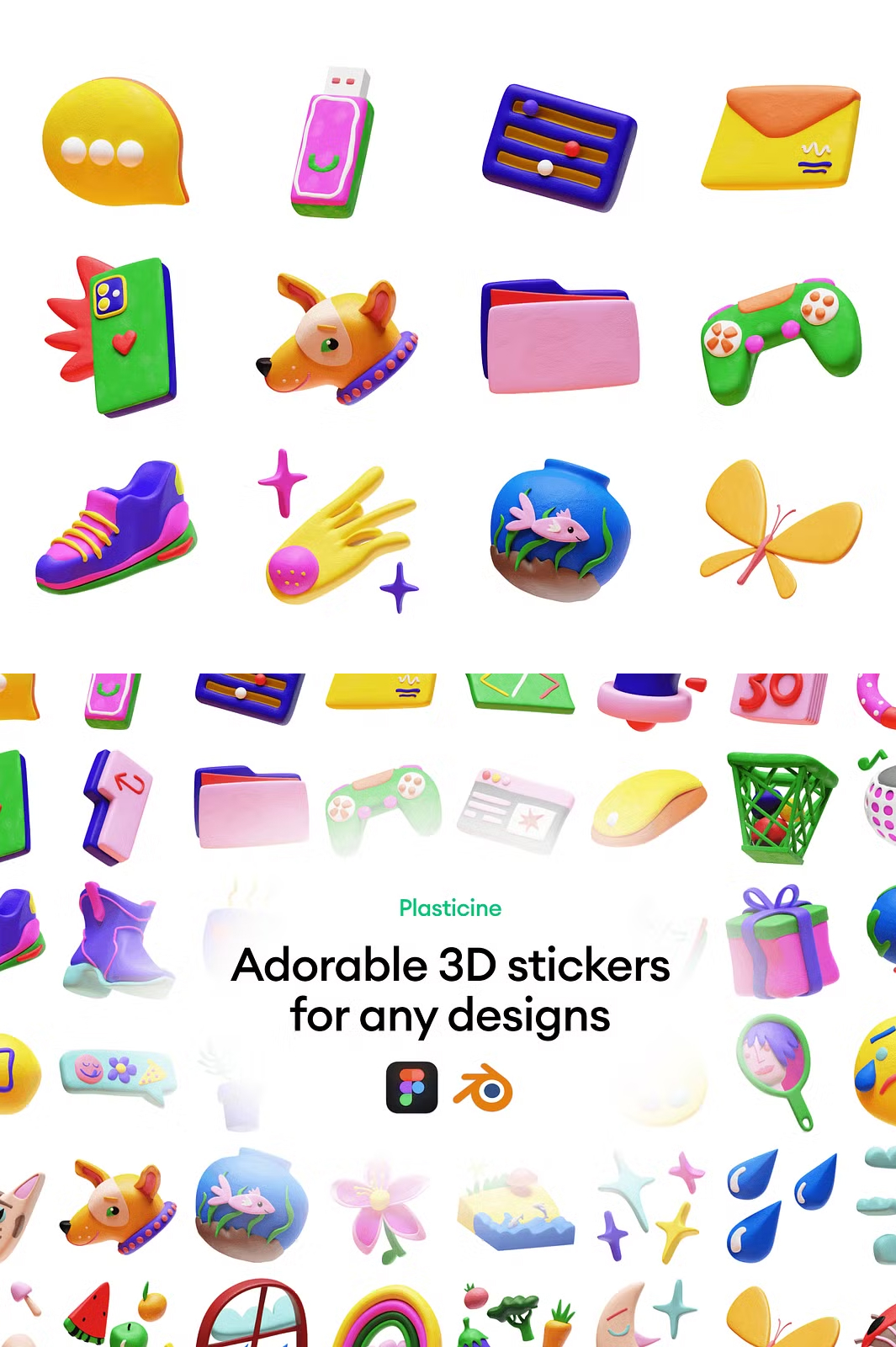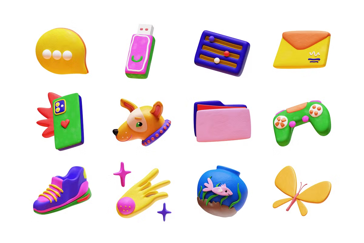 Bring **fun, charm, and creativity** to your designs with this delightful set of **80 high-quality 3D stickers**! Perfectly crafted in a **playful plasticine style**, these stickers will add a **unique and engaging** touch to your projects. Whether you’re working on **social media graphics, websites, apps, branding, or digital products**, this pack is a must-have! ✨