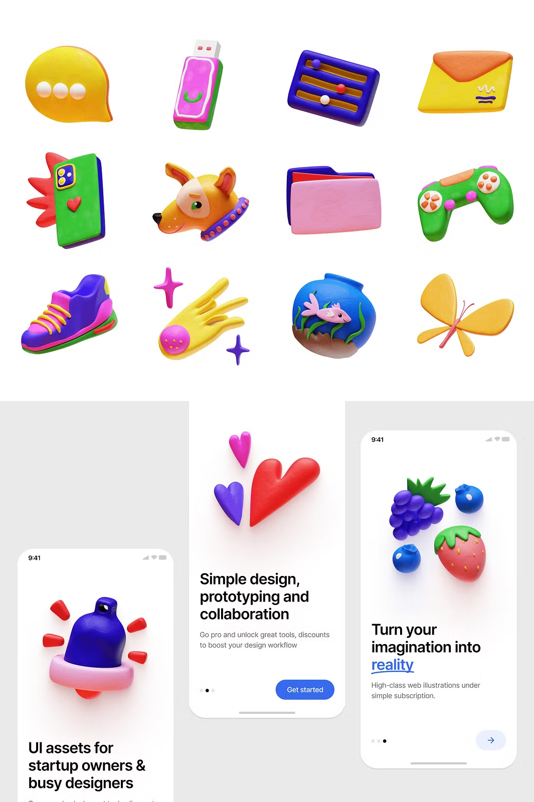 Elevate your **designs, presentations, and branding** with these vibrant **plasticine-style 3D stickers**. Add a **playful and modern** touch to your work **effortlessly**. Don’t miss out on this **exclusive collection**! 🚀