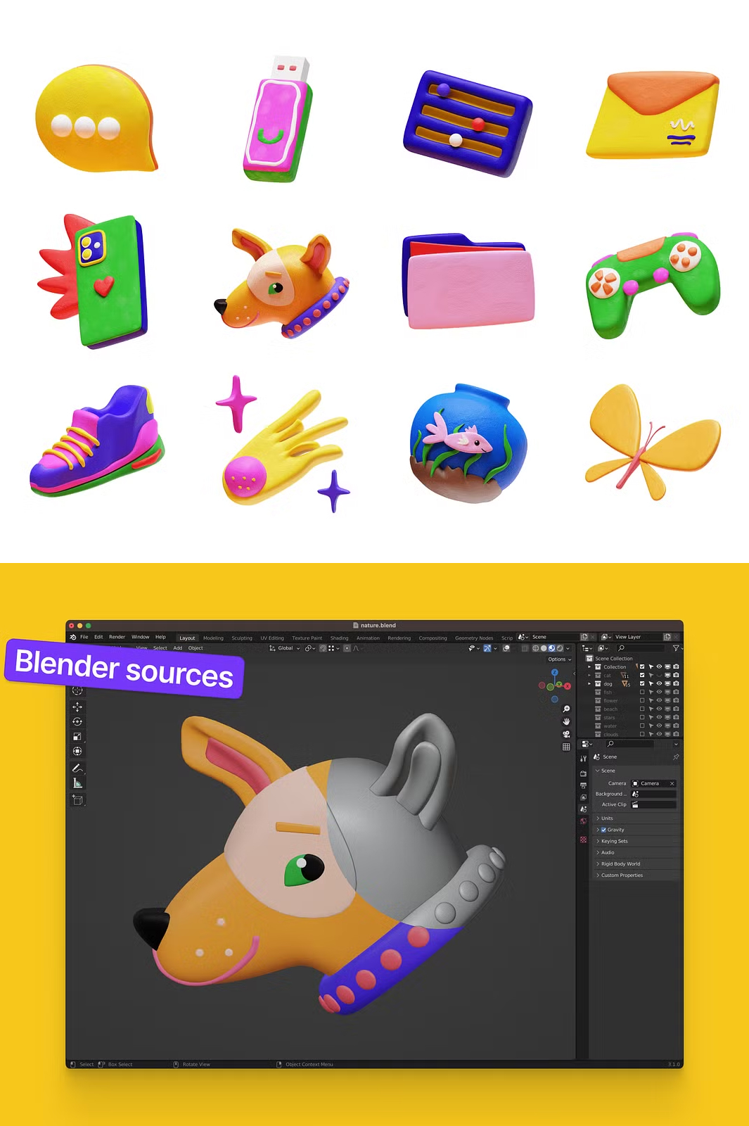 - 🎭 **Blender Source Files** – Full access to edit, tweak, and customize as you like.