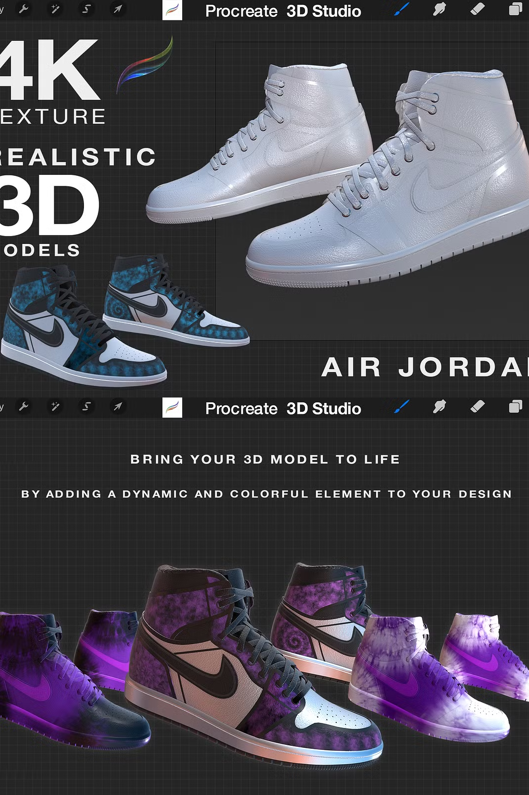 Download your Procreate 3D Model β Nike Air Jordan today and start creating stunning sneaker art with lifelike textures and unbeatable precision!