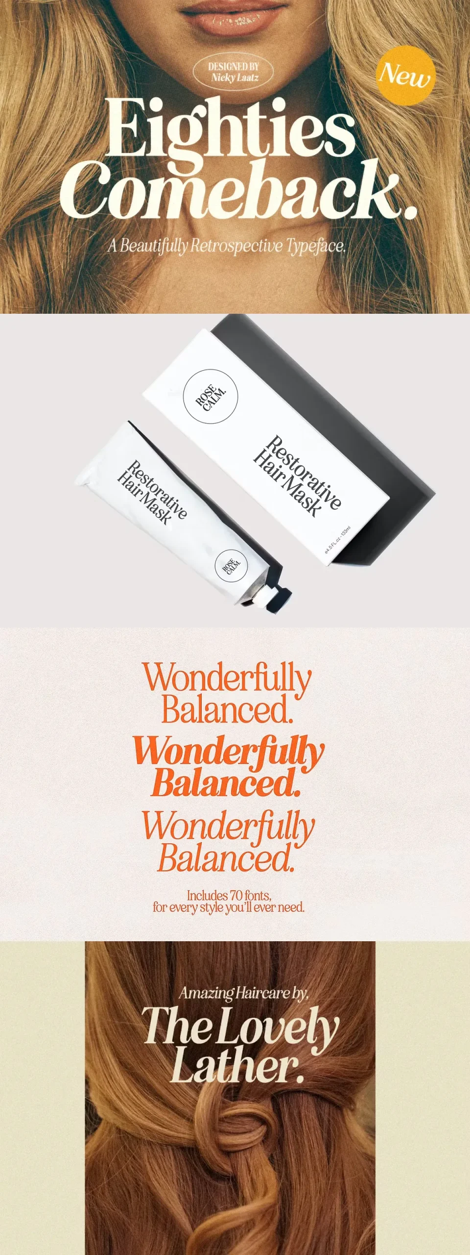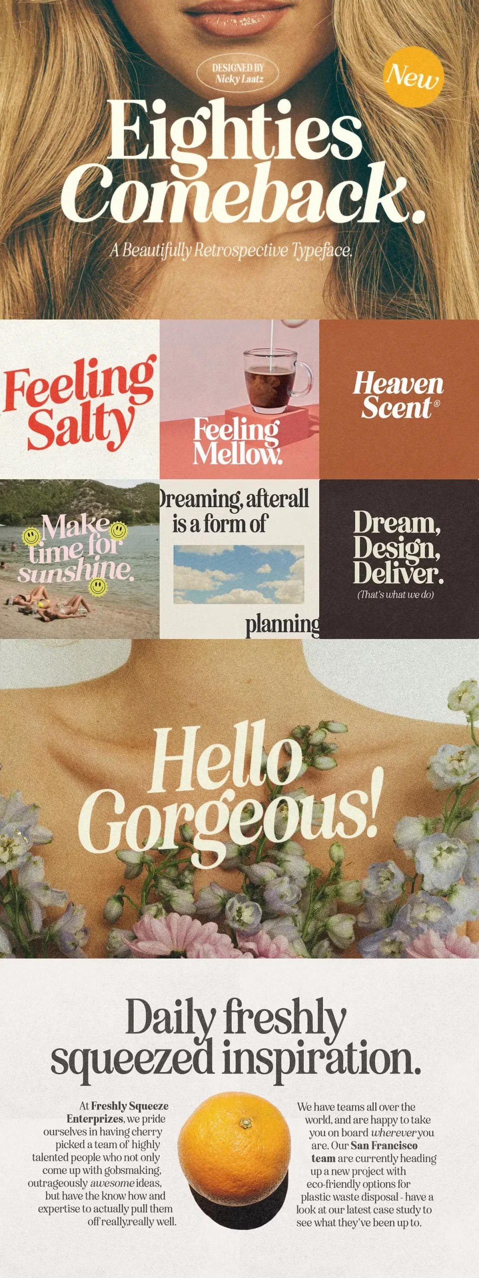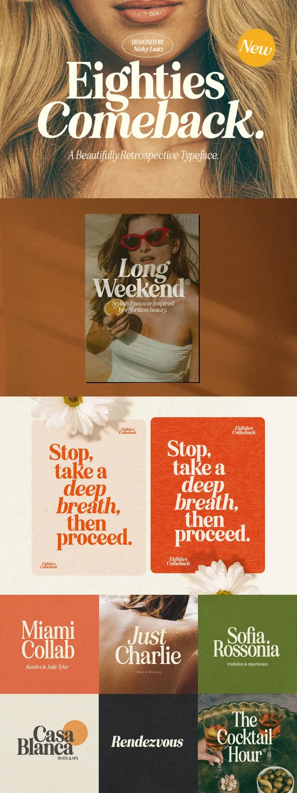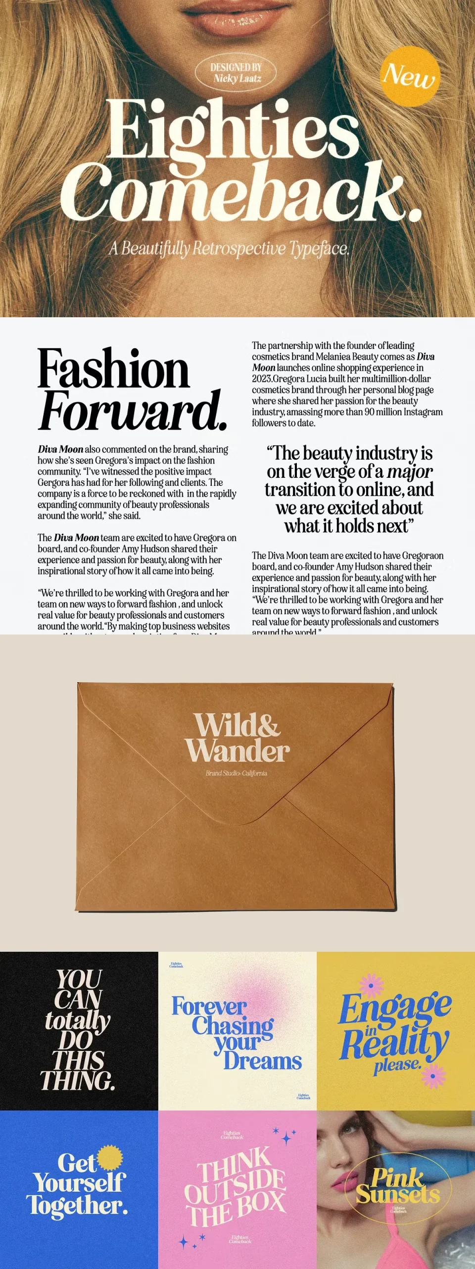 Say hello to “Eighties Comeback” – A flirtatiously charming 80’s retro-inspired typeface with wonderful versatility given it includes 70 fonts. 2 Handy variable fonts are also included for those who have Adobe Photoshop/Illustrator CC 2020 and up 🙂