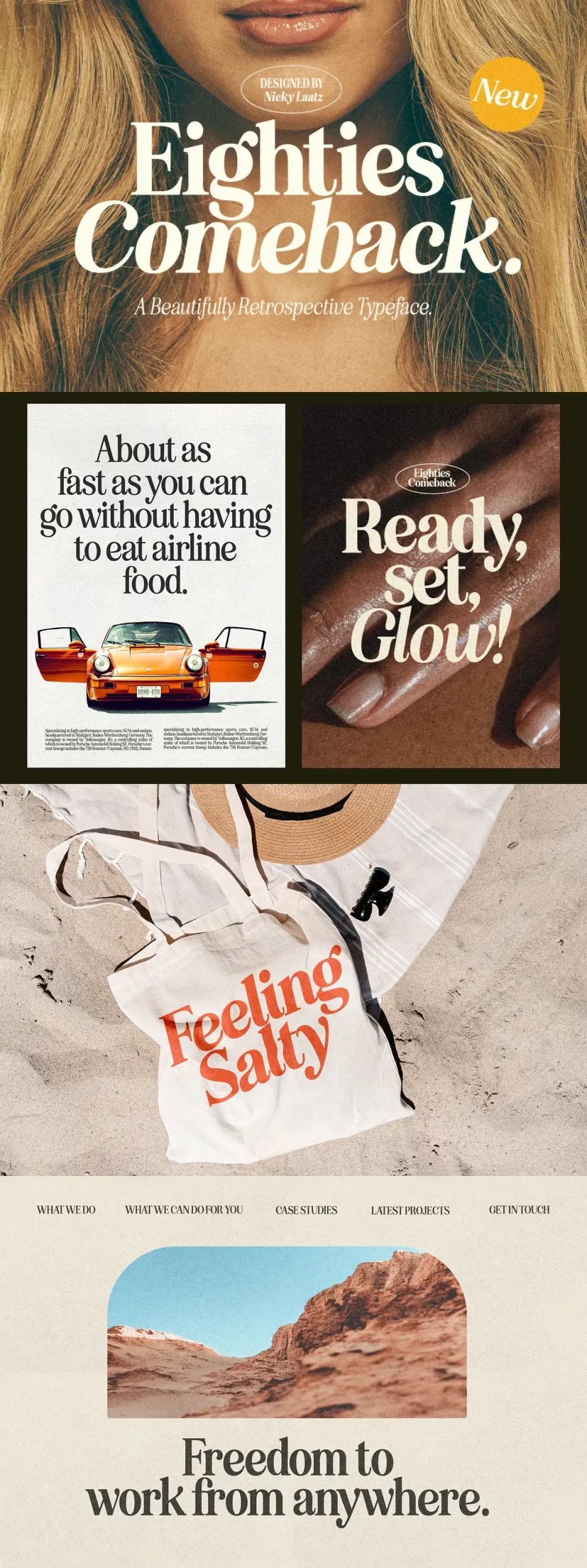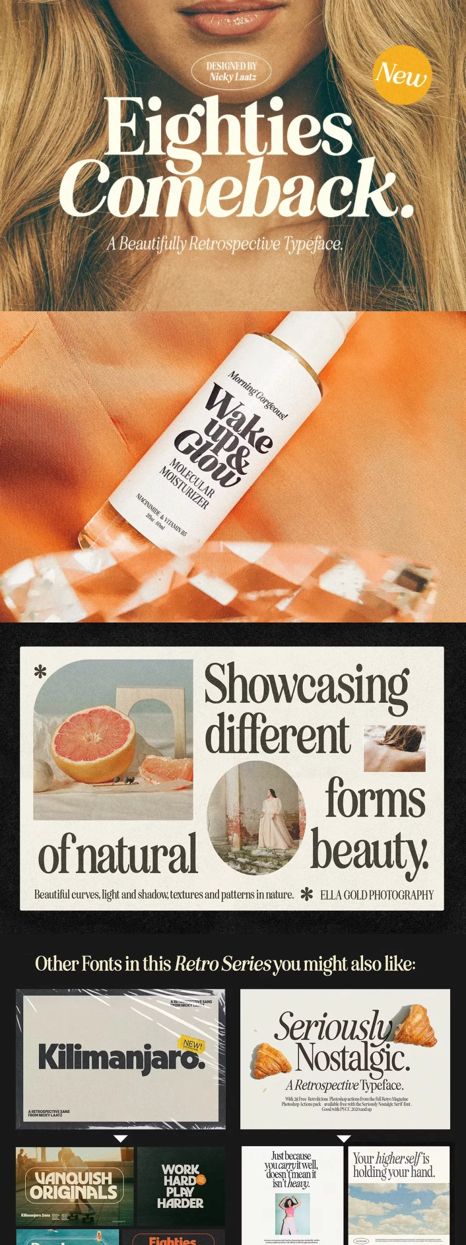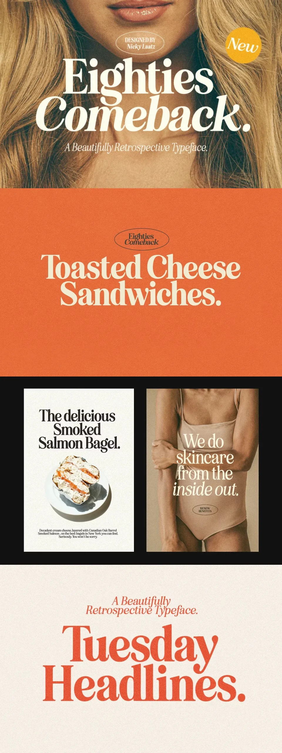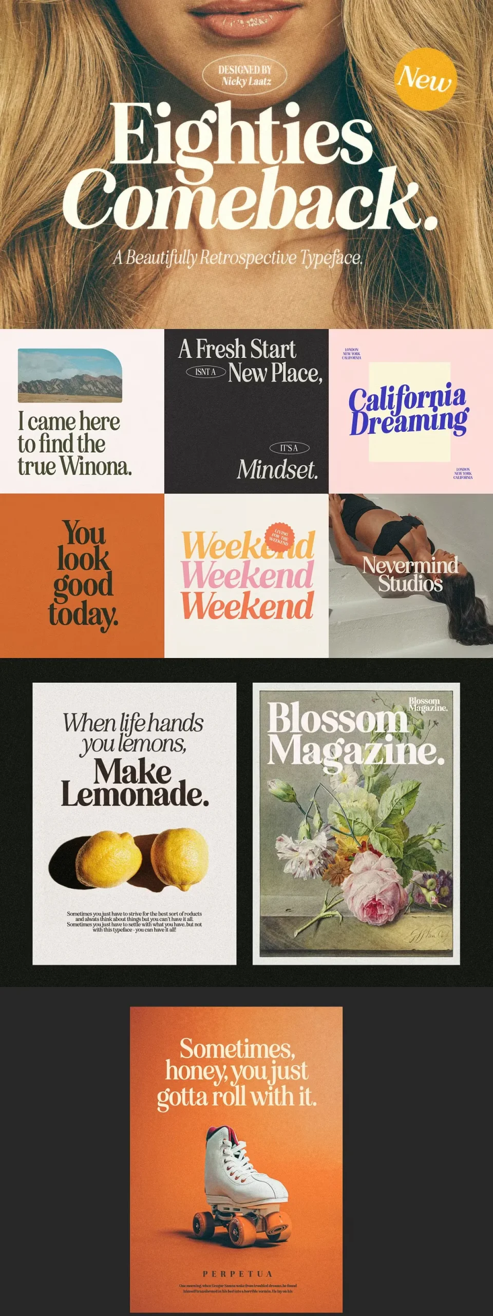 Say hello to “Eighties Comeback” – A flirtatiously charming 80’s retro-inspired typeface with wonderful versatility given it includes 70 fonts. 2 Handy variable fonts are also included for those who have Adobe Photoshop/Illustrator CC 2020 and up 🙂