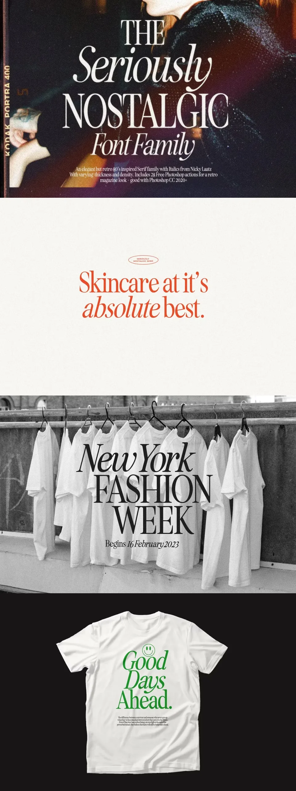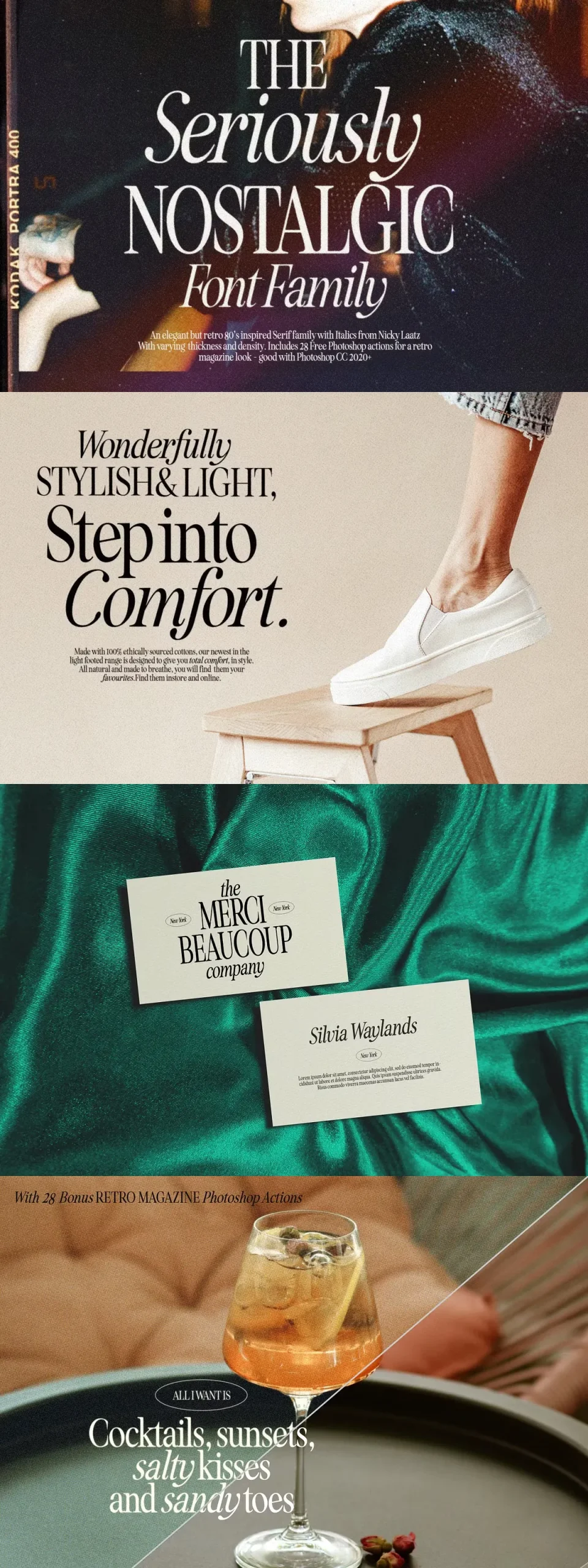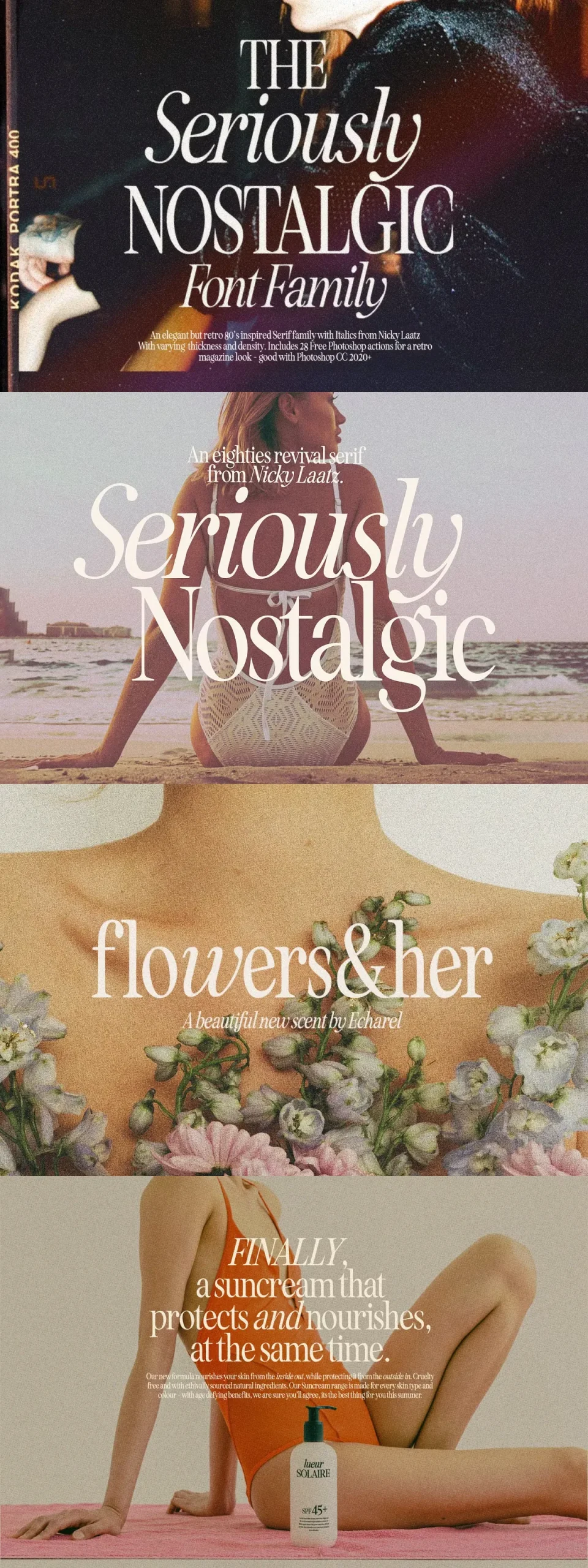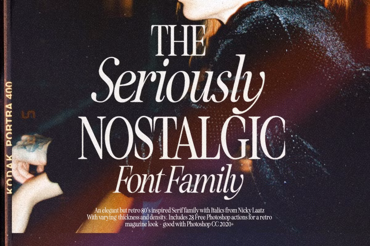 Say hello to Seriously Nostalgic! A classy eighties magazine inspired serif – with a complementary italic version 🙂 Both come in two versions one with more contrast and crisper than the other. In true Eighties style, they also come in varying degrees of Condensed form – mix and match them to create eye-catching effects.