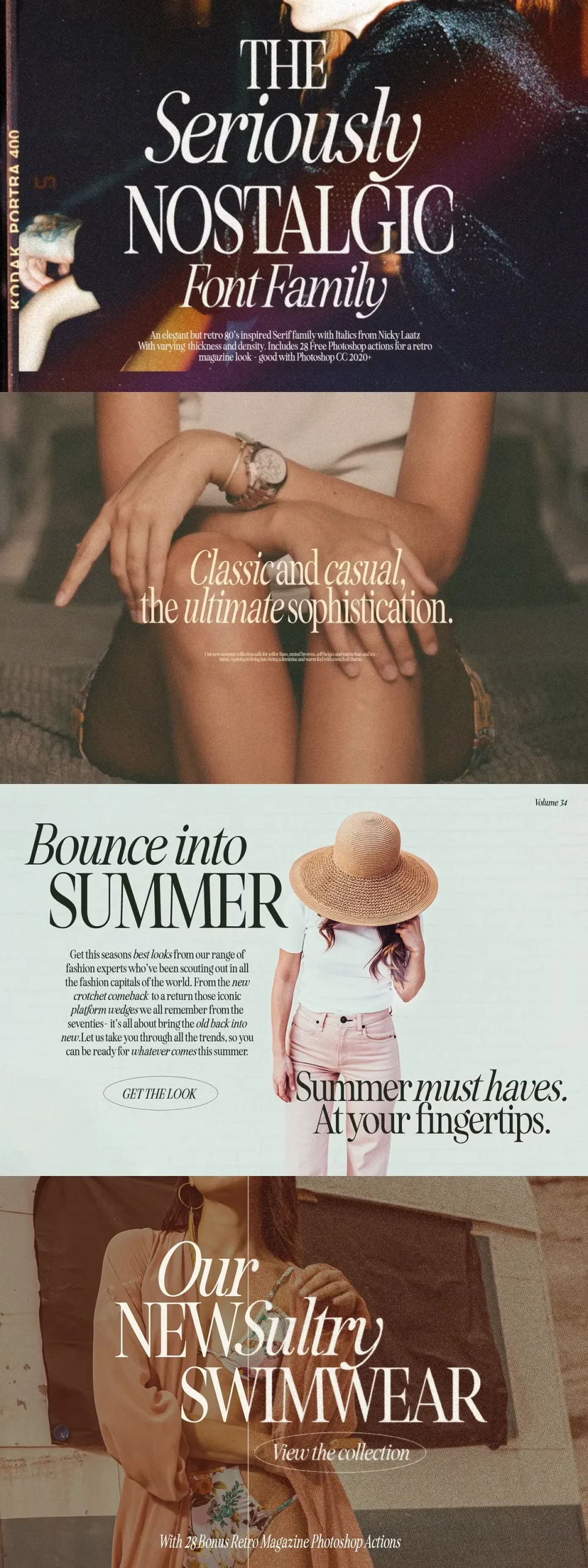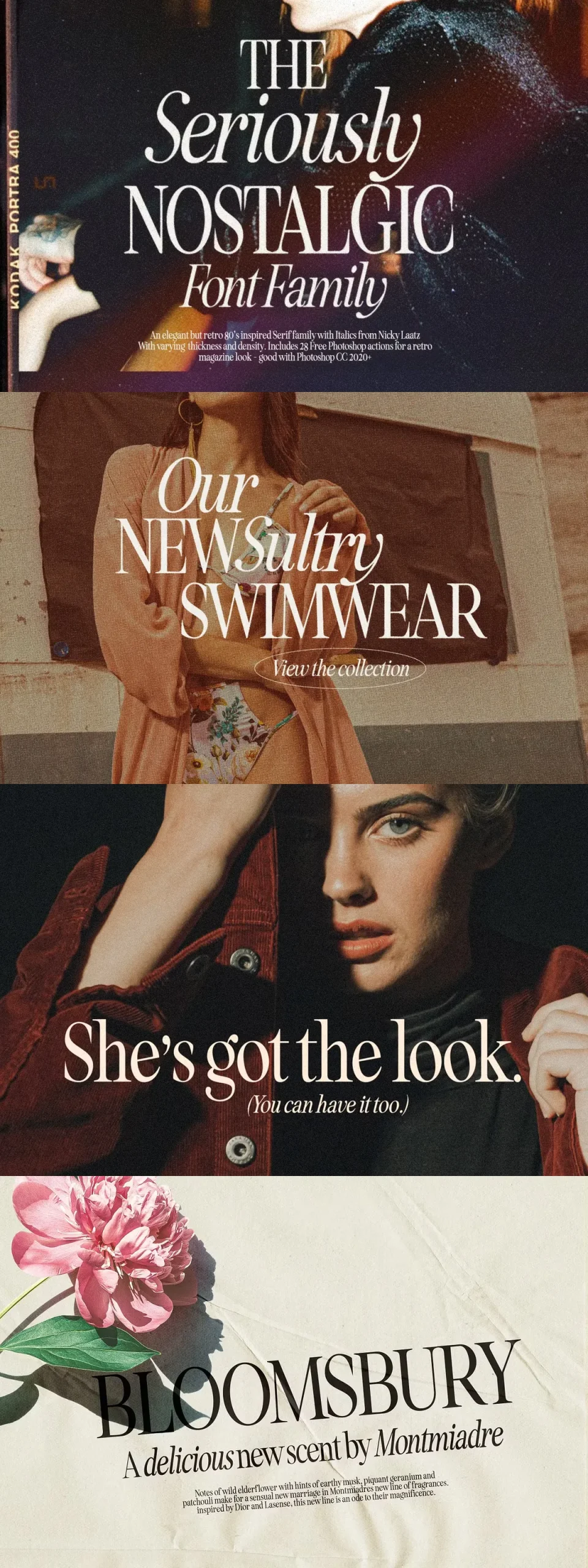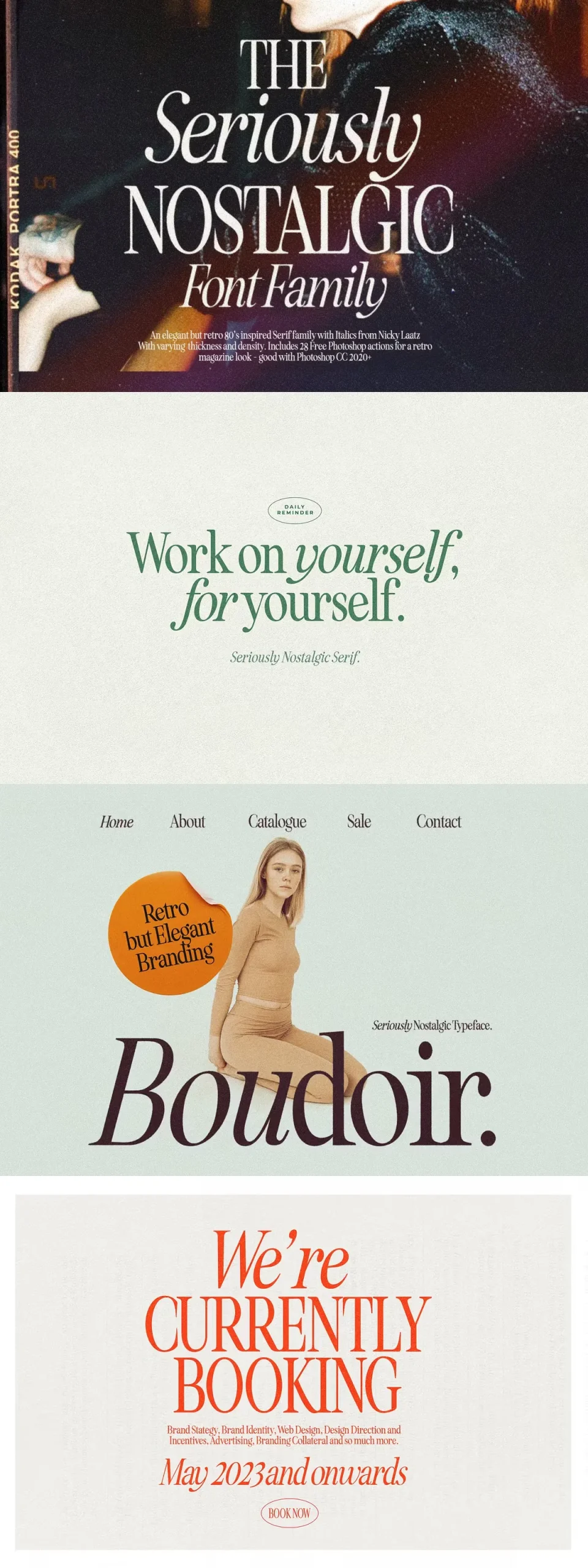 Say hello to Seriously Nostalgic! A classy eighties magazine inspired serif – with a complementary italic version 🙂 Both come in two versions one with more contrast and crisper than the other. In true Eighties style, they also come in varying degrees of Condensed form – mix and match them to create eye-catching effects.