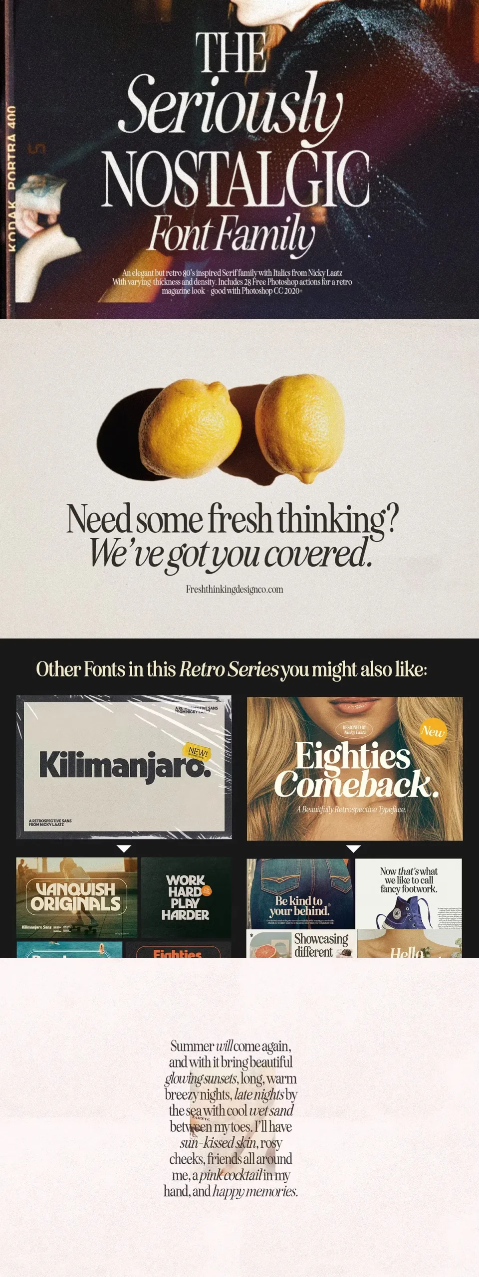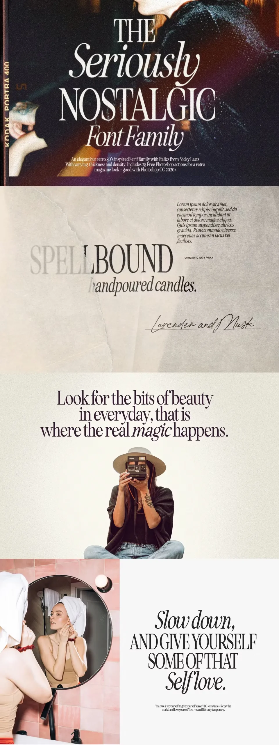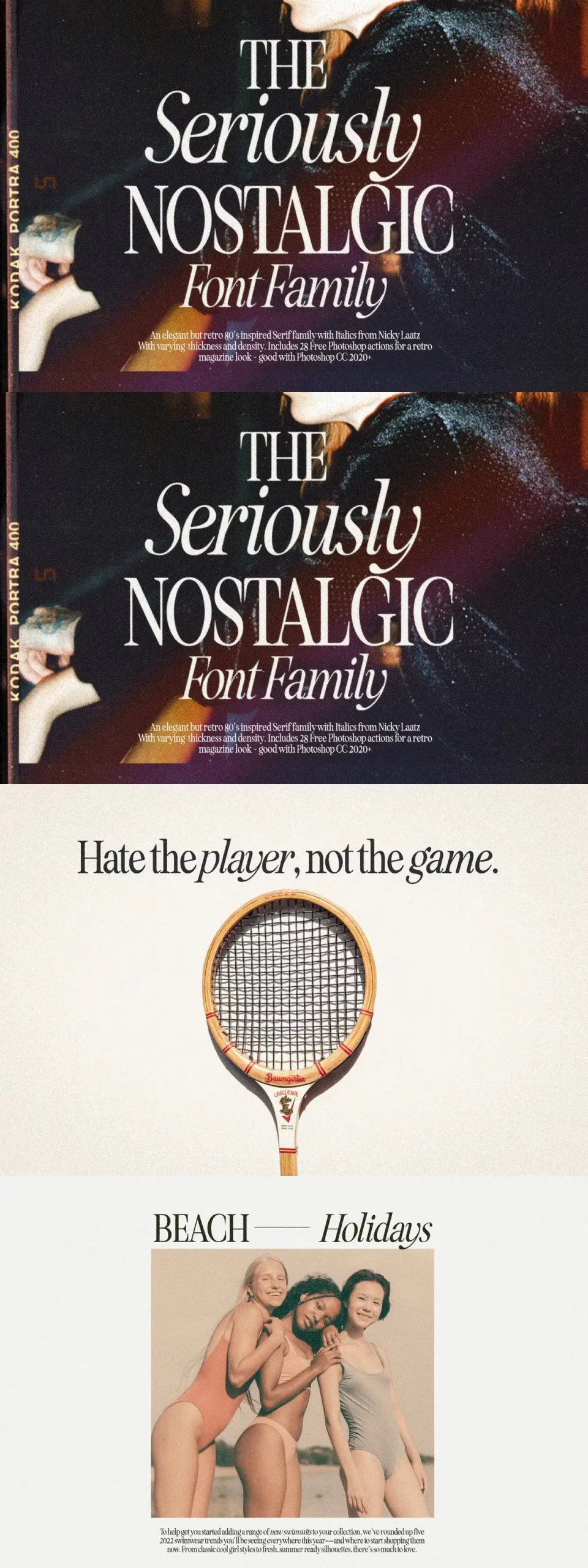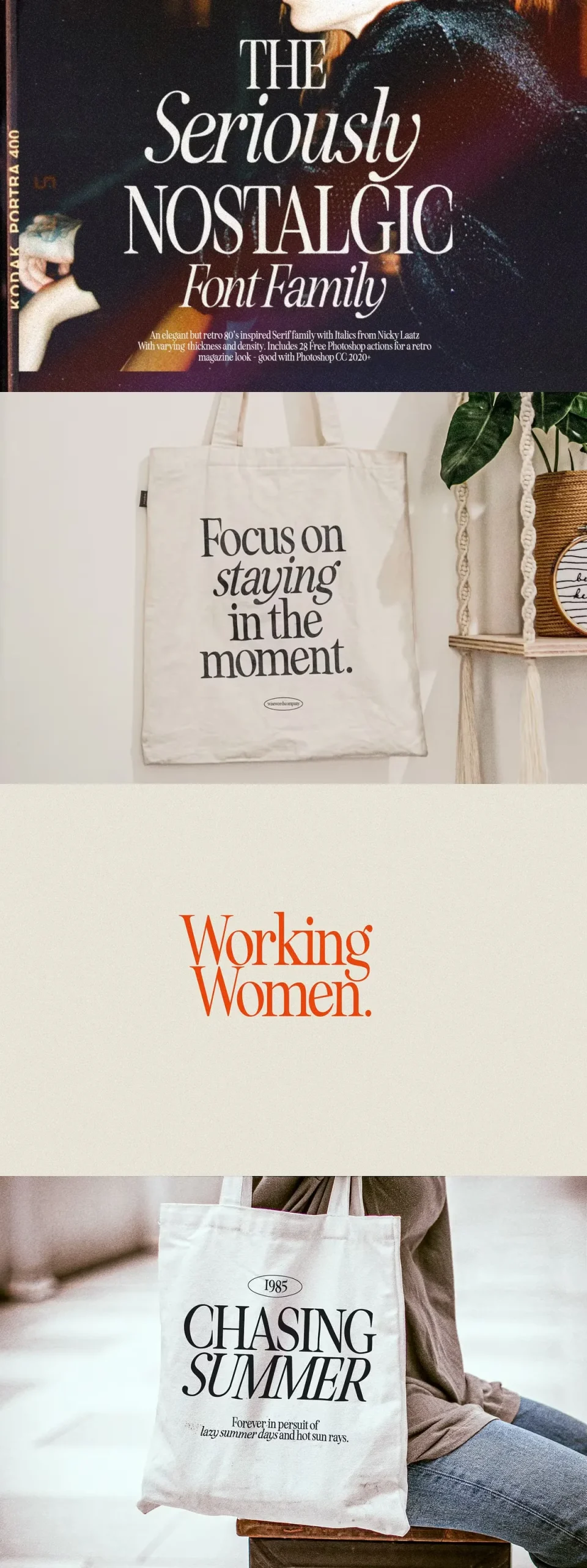 Say hello to Seriously Nostalgic! A classy eighties magazine inspired serif – with a complementary italic version 🙂 Both come in two versions one with more contrast and crisper than the other. In true Eighties style, they also come in varying degrees of Condensed form – mix and match them to create eye-catching effects.