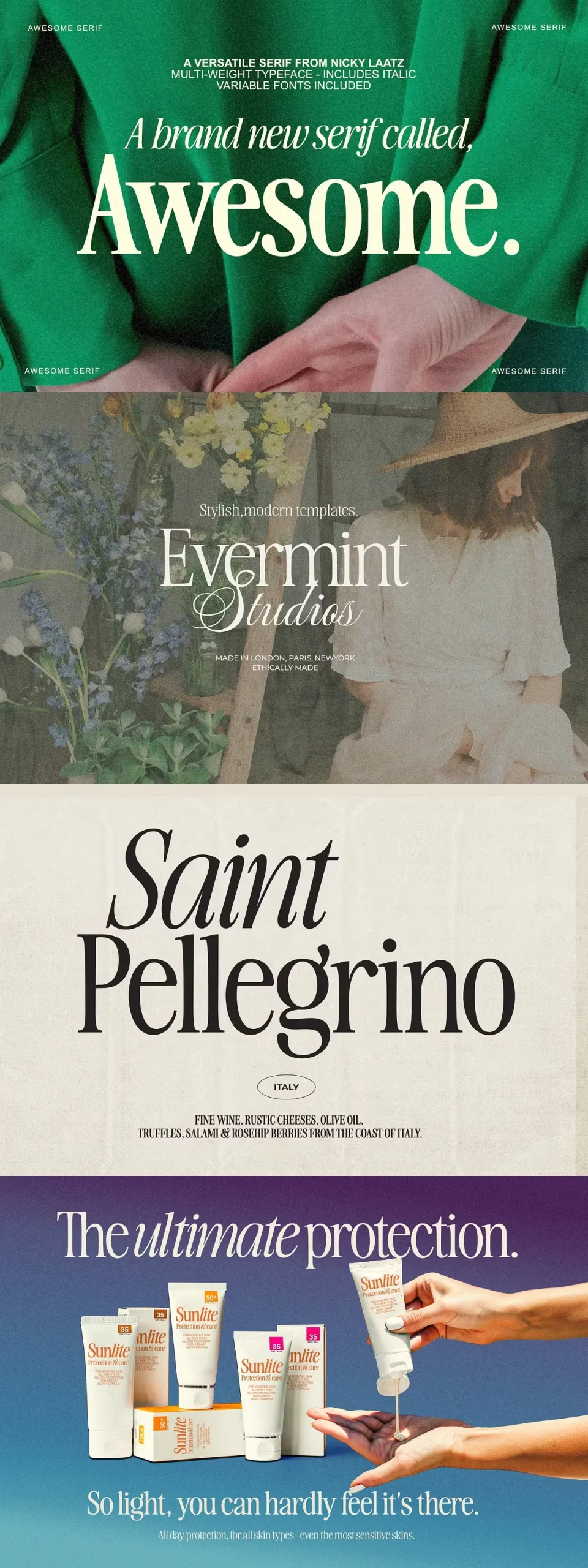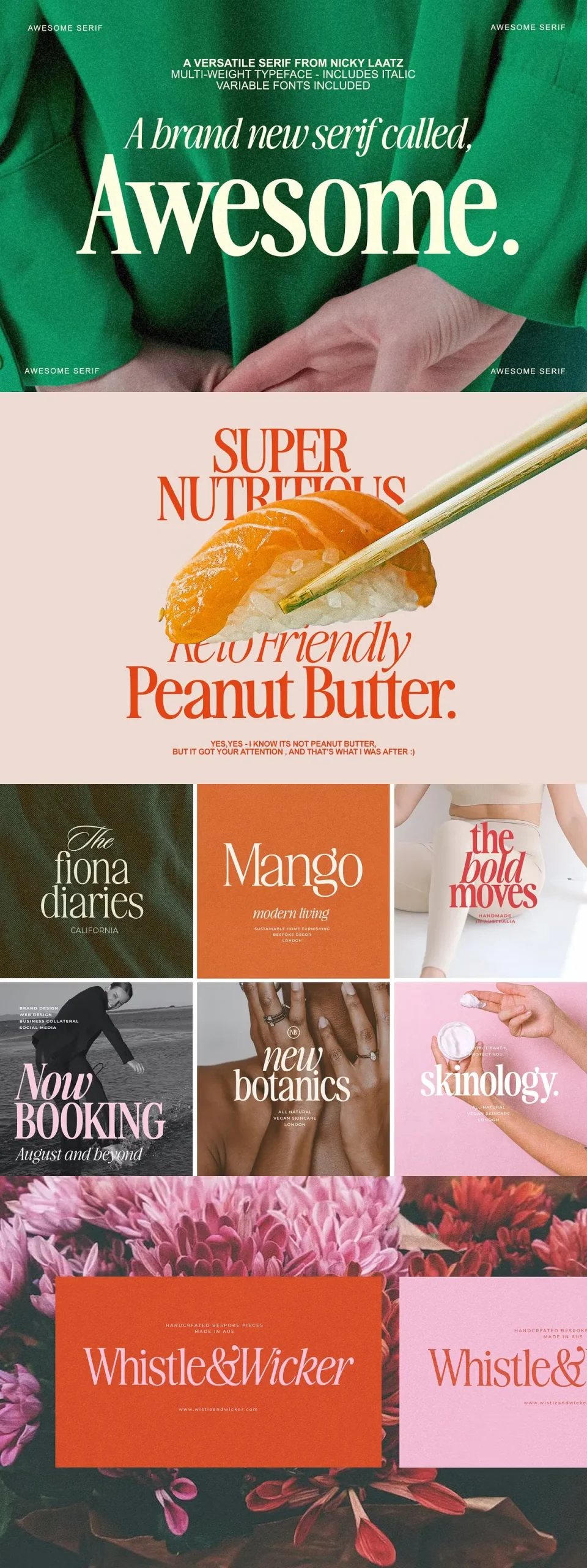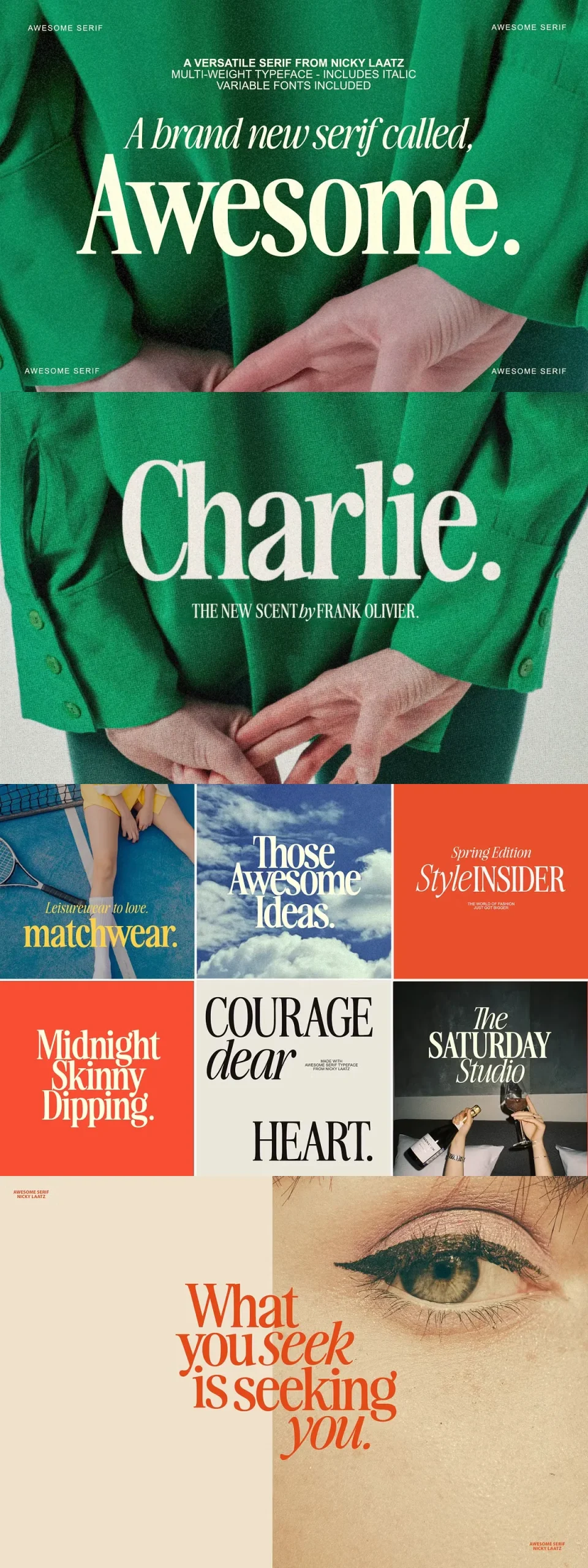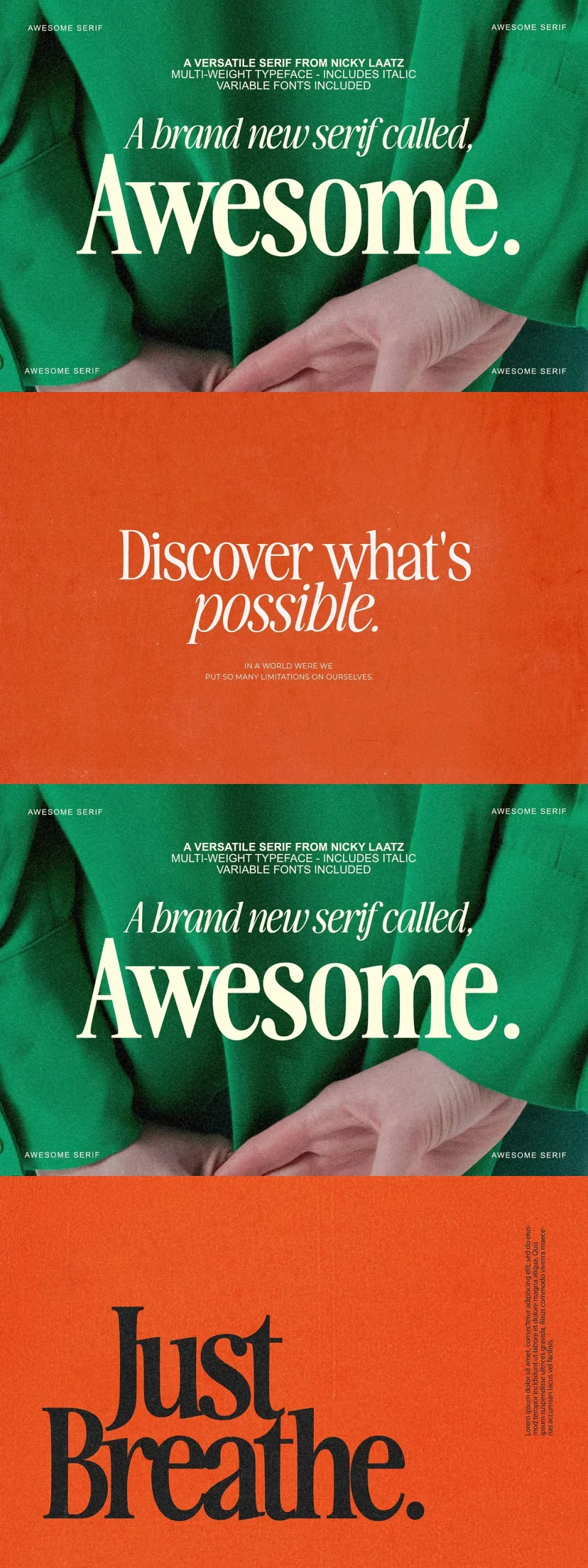 Say hello to Awesome Serif ðŸ™‚ A dreamy multi-weight , multi height type family – In both Regular and Italic styles – 30 fonts in total. Two handy variable fonts are included if you have software that can read variable fonts.
