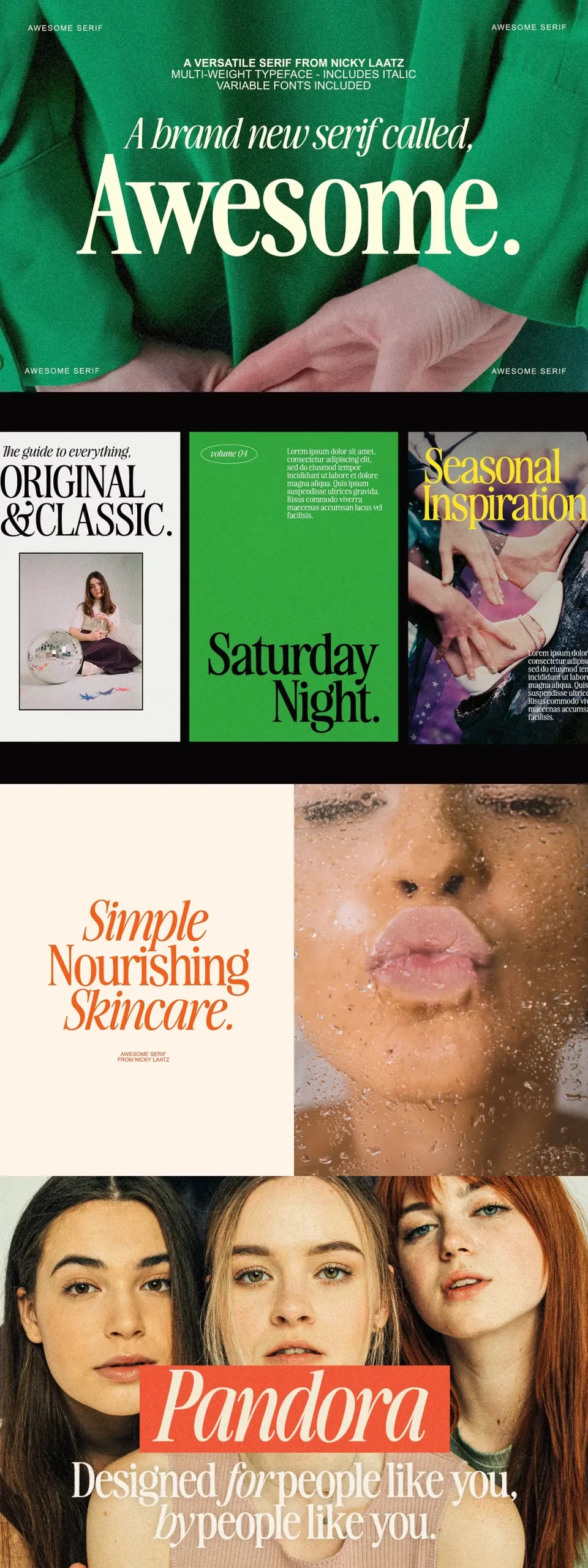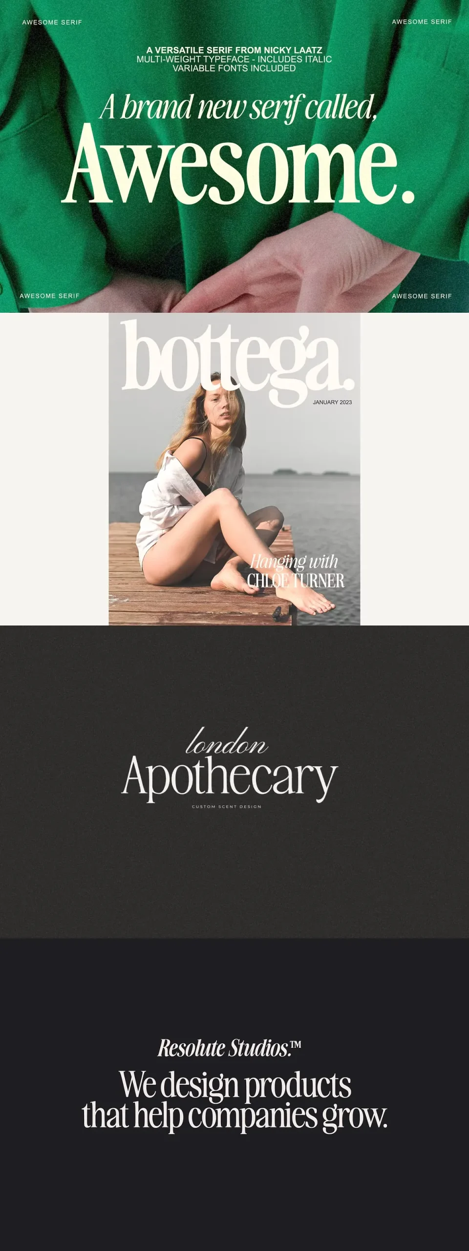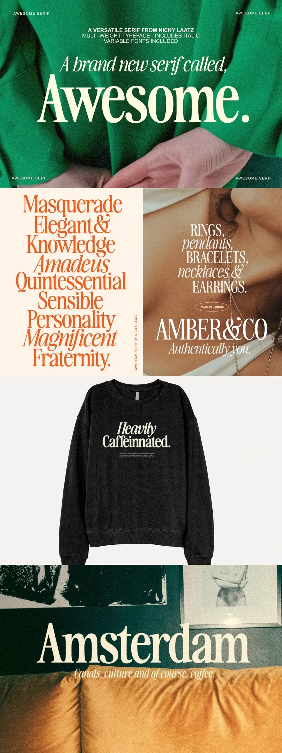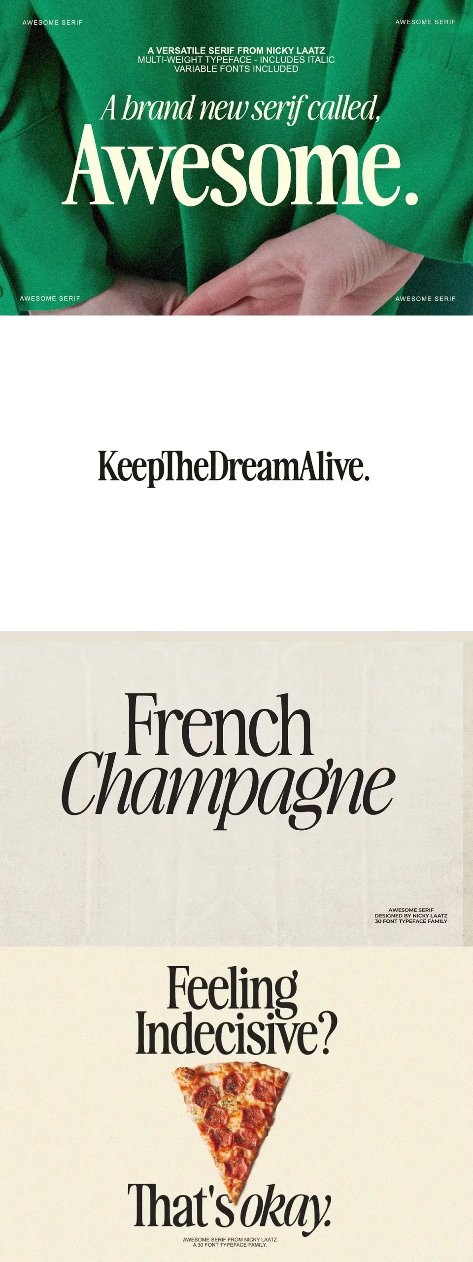 Say hello to Awesome Serif ðŸ™‚ A dreamy multi-weight , multi height type family – In both Regular and Italic styles – 30 fonts in total. Two handy variable fonts are included if you have software that can read variable fonts.