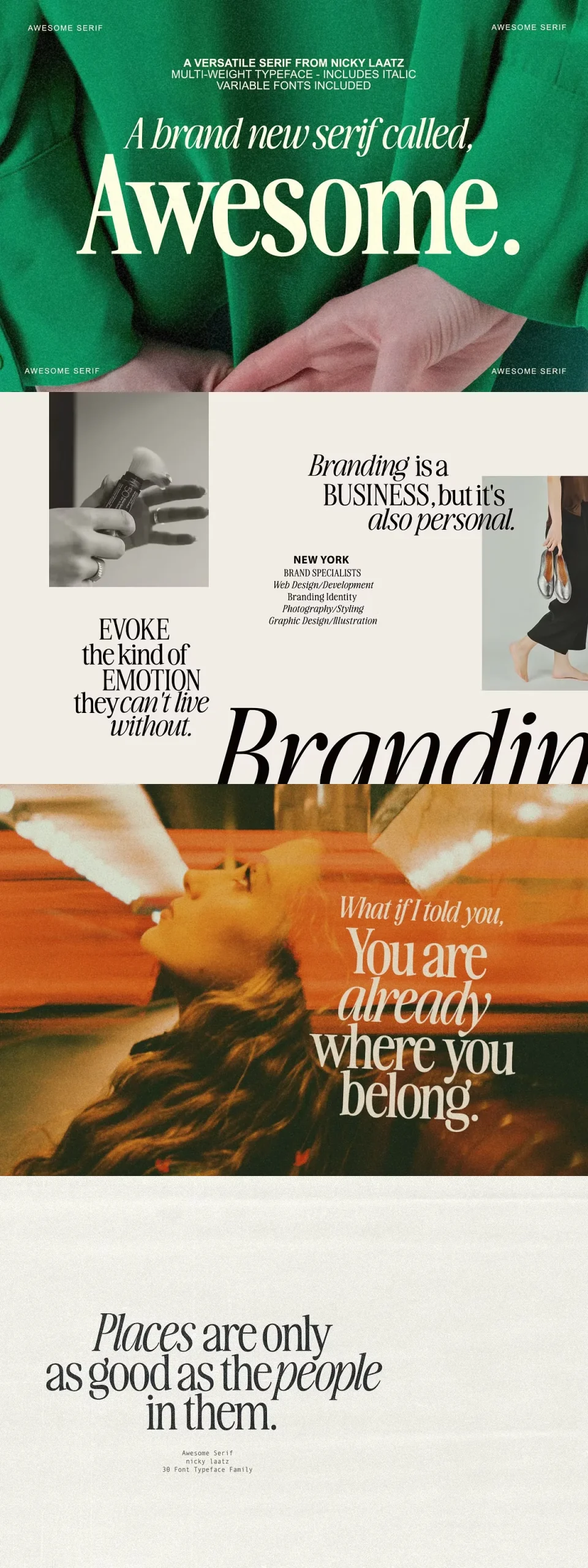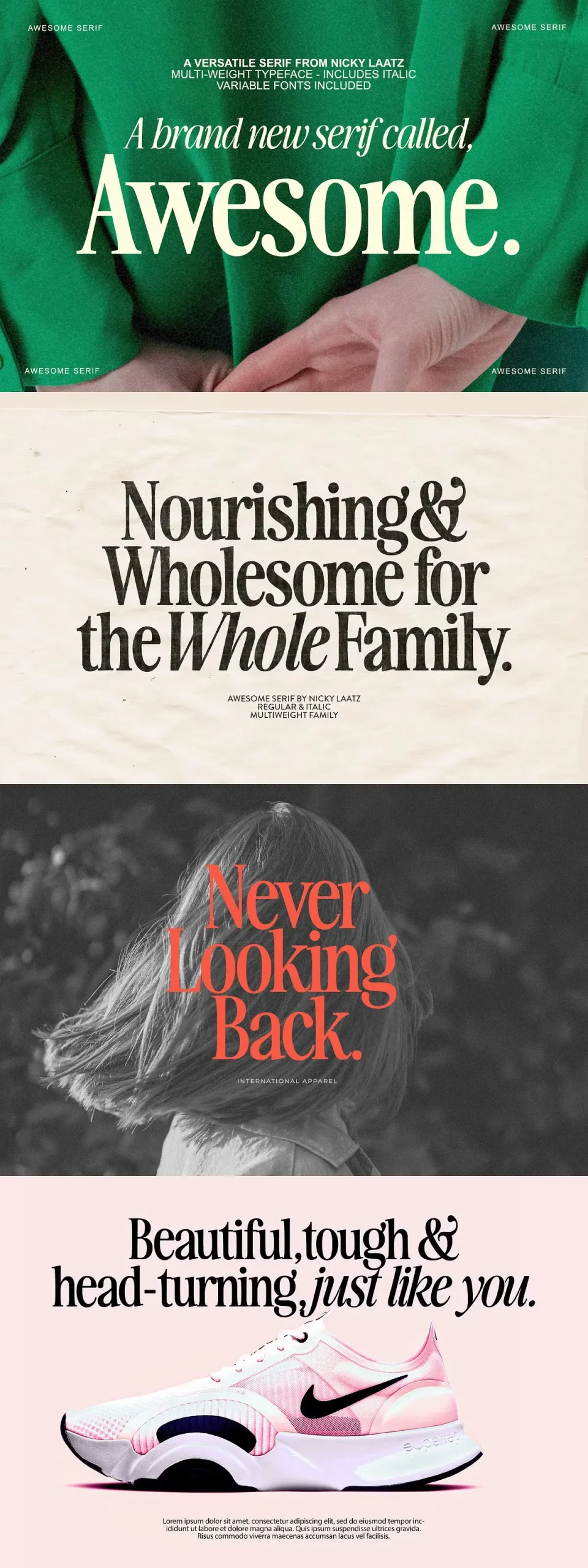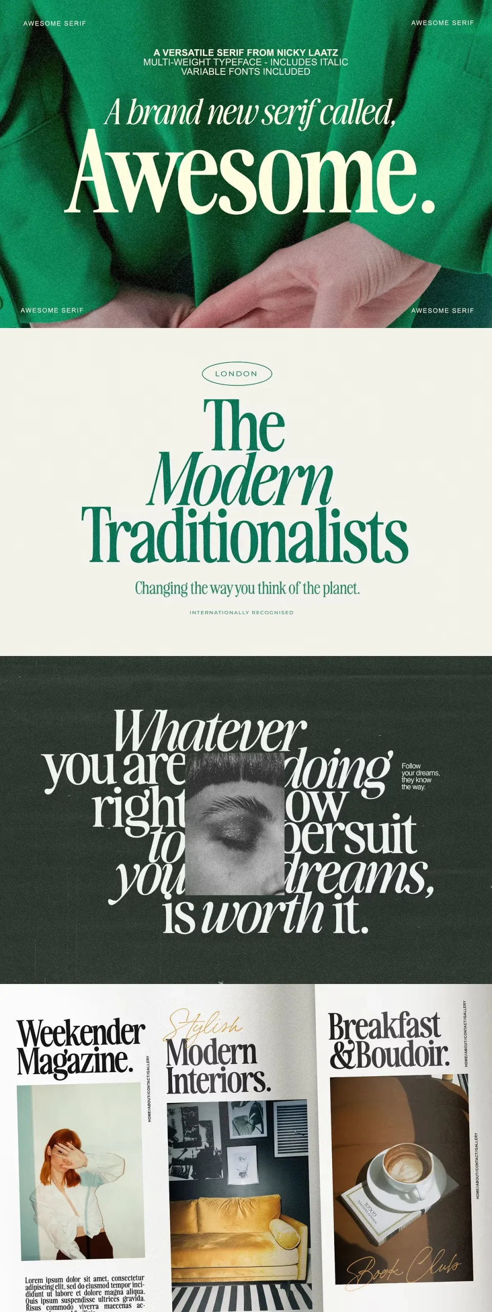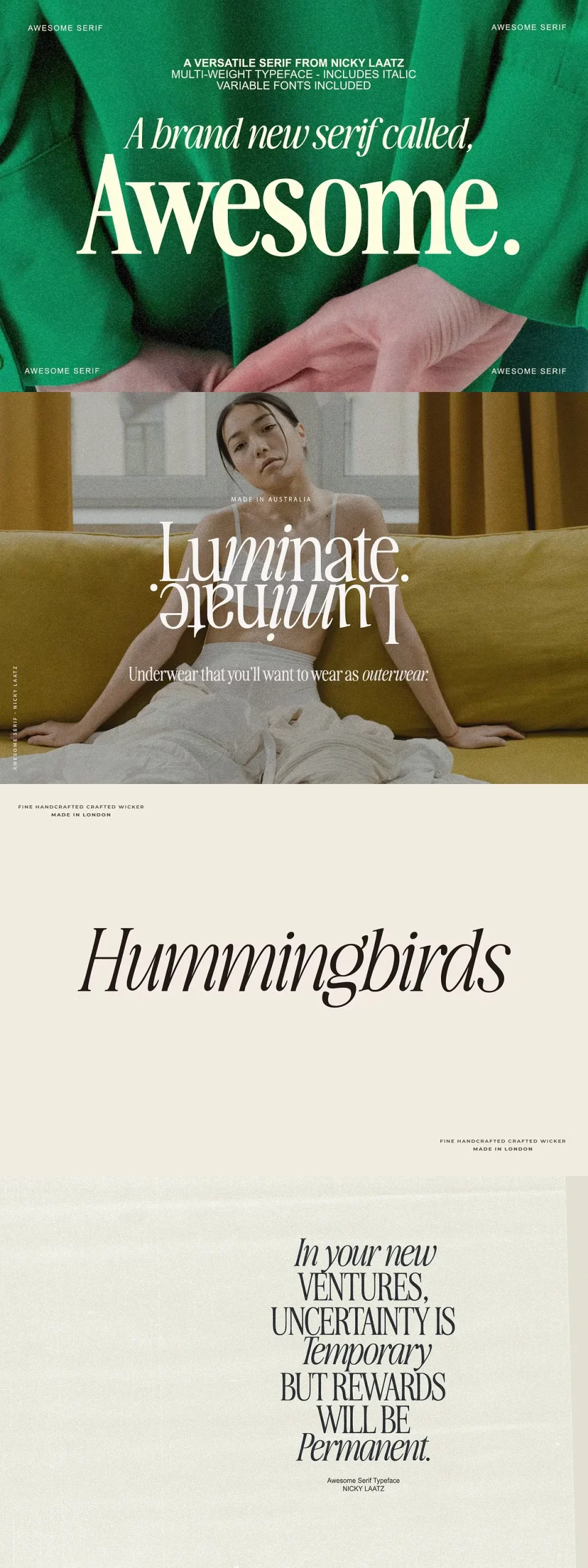 Say hello to Awesome Serif ðŸ™‚ A dreamy multi-weight , multi height type family – In both Regular and Italic styles – 30 fonts in total. Two handy variable fonts are included if you have software that can read variable fonts.