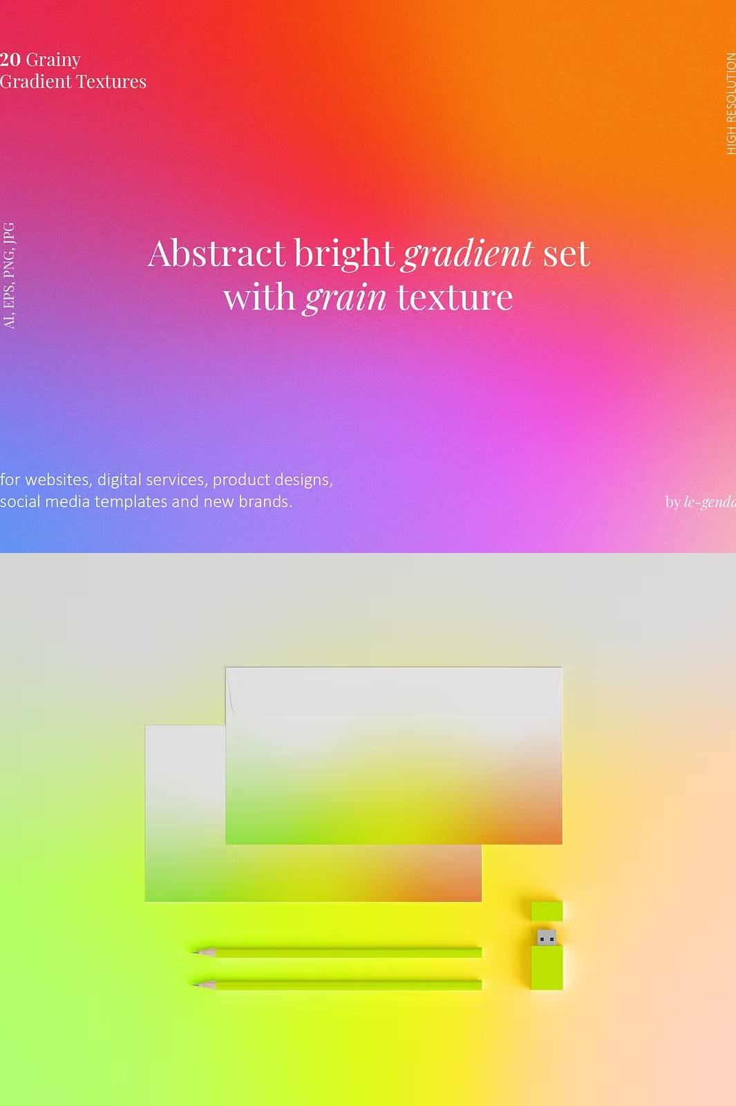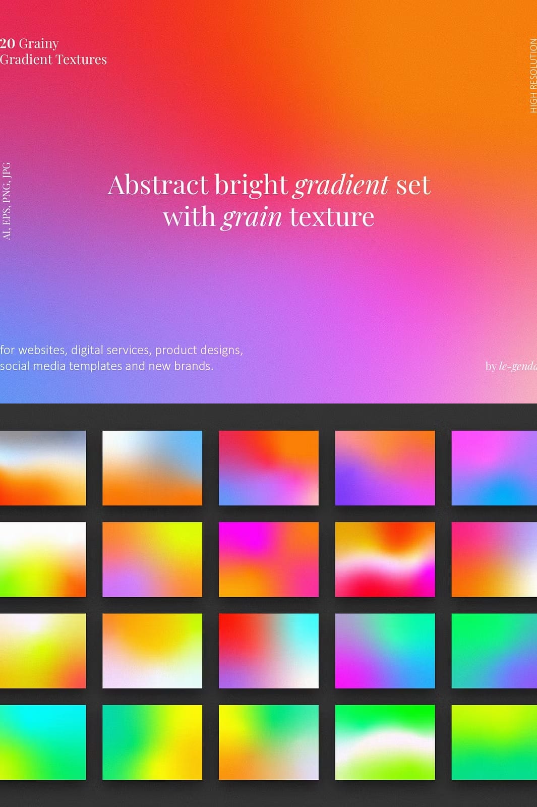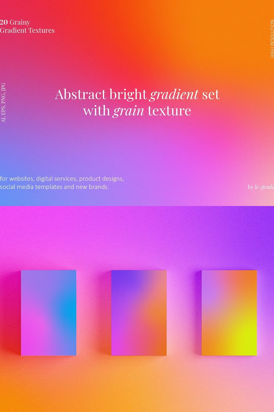 - Diverse Color Palette: Each gradient is crafted using bright colors that can complement any design theme or branding strategy.