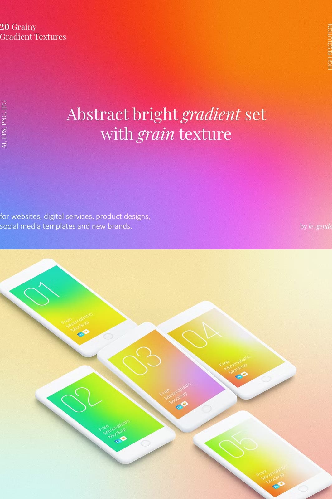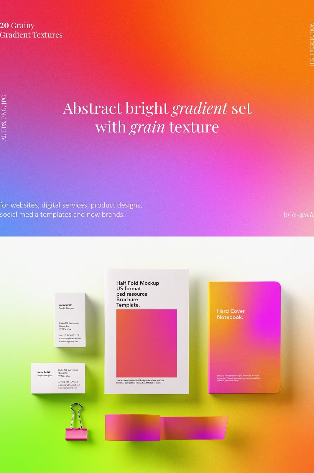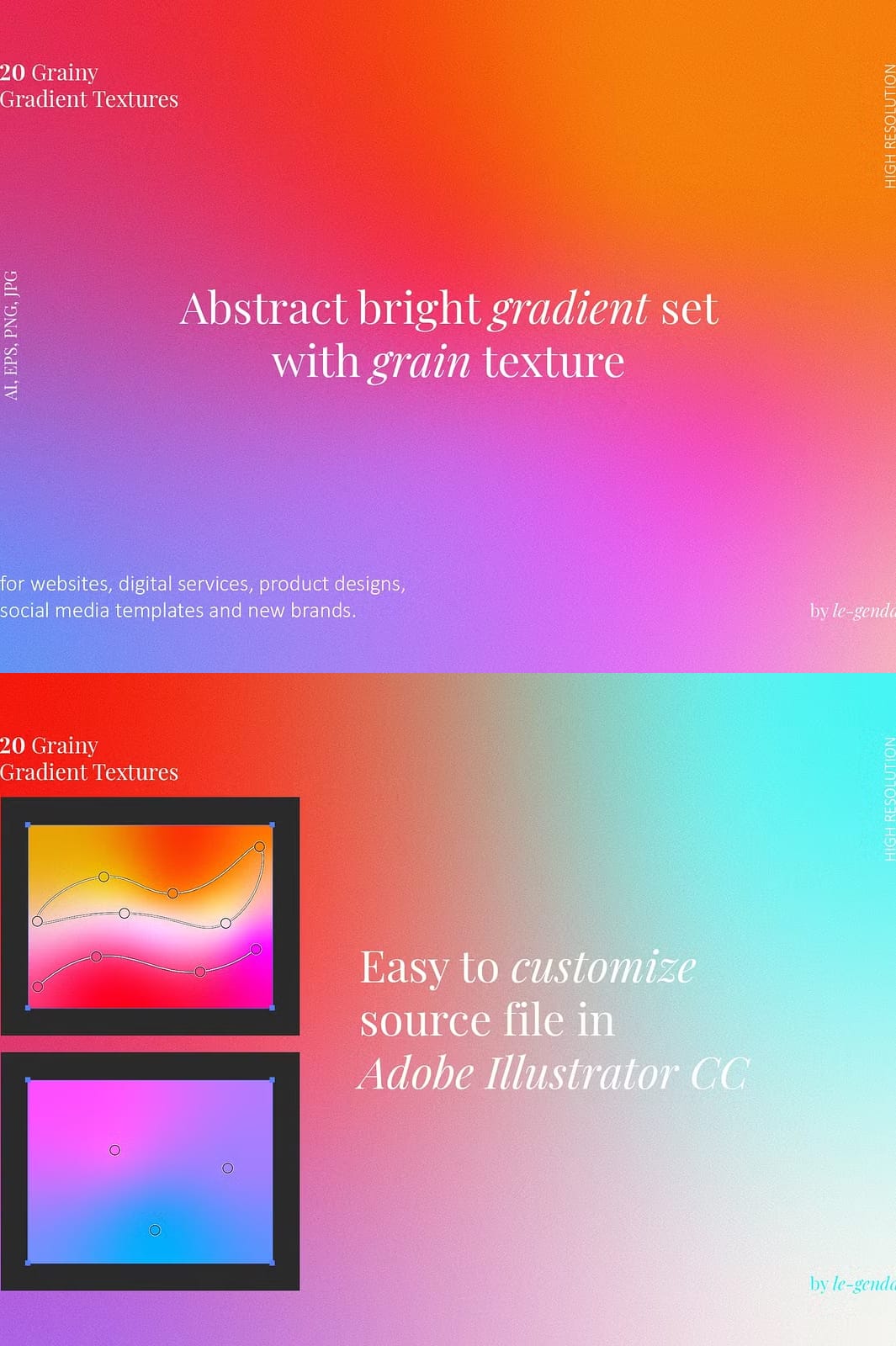 - Diverse Color Palette: Each gradient is crafted using bright colors that can complement any design theme or branding strategy.