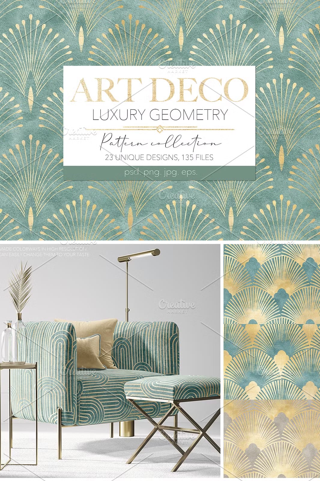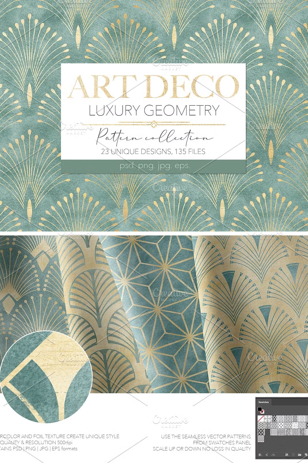 Give your creative projects the edge they deserve with Art Deco Geometry Patterns. The combination of luxurious textures, seamless repeatability, and elegant geometric motifs provides a foundation for creating sophisticated and memorable designs. Whether your goal is to produce high-end fashion prints, captivating stationery, or bold digital graphics, this collection empowers you to realize your artistic vision with flair and confidence.