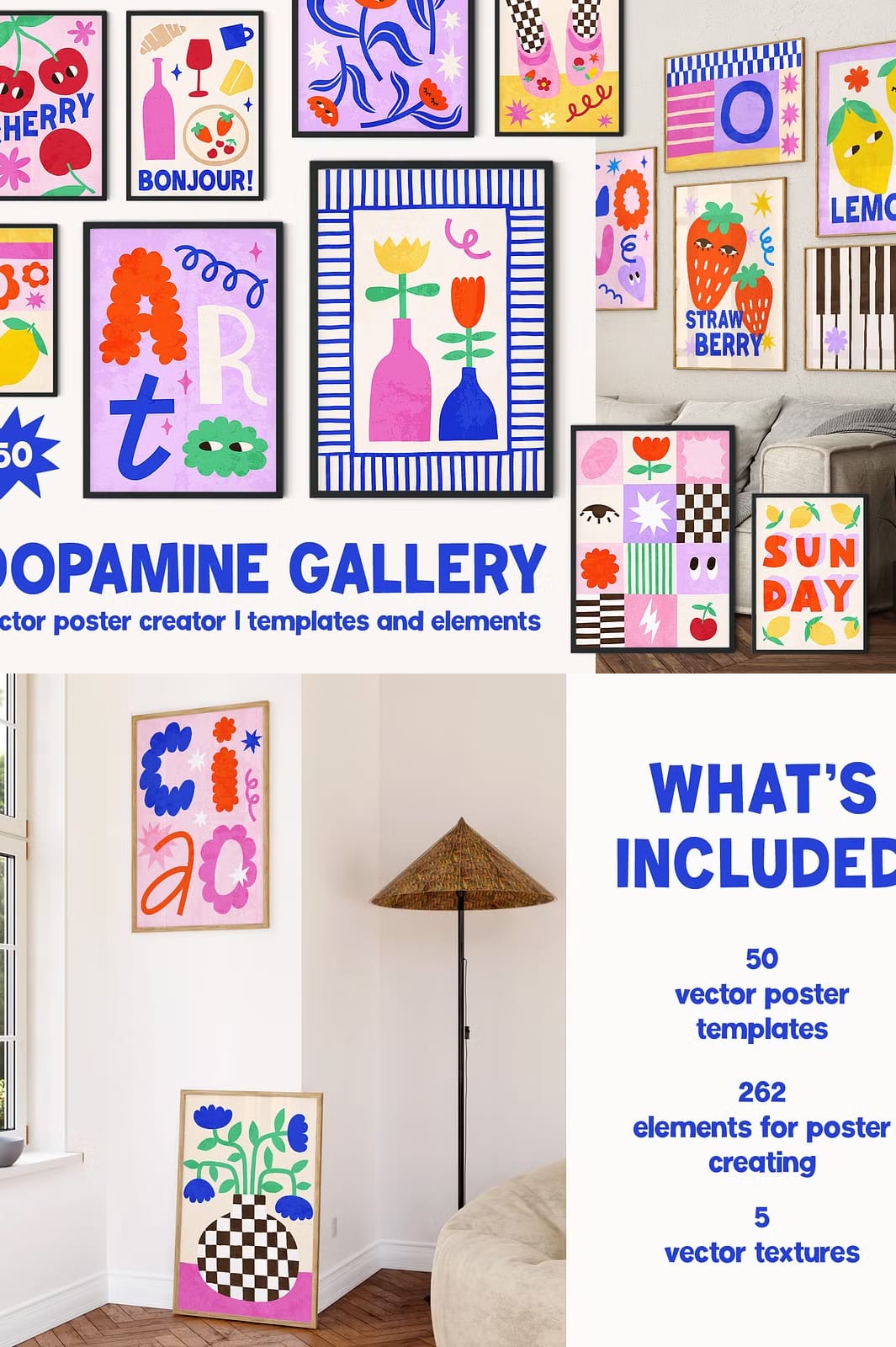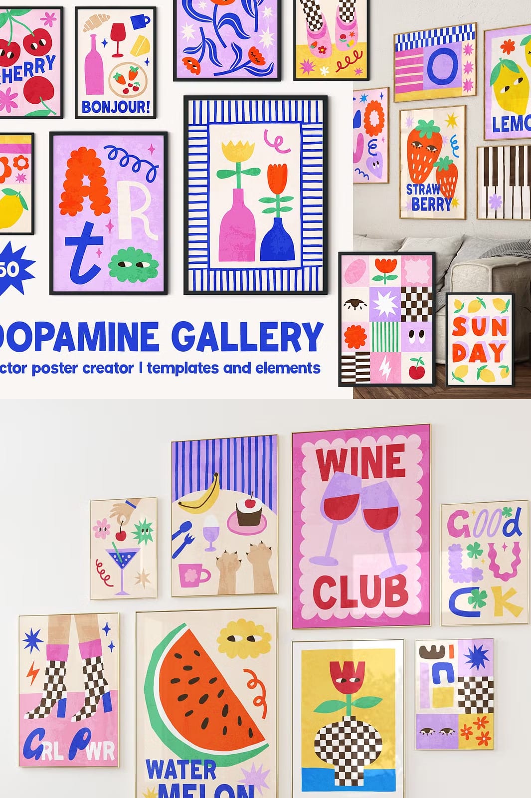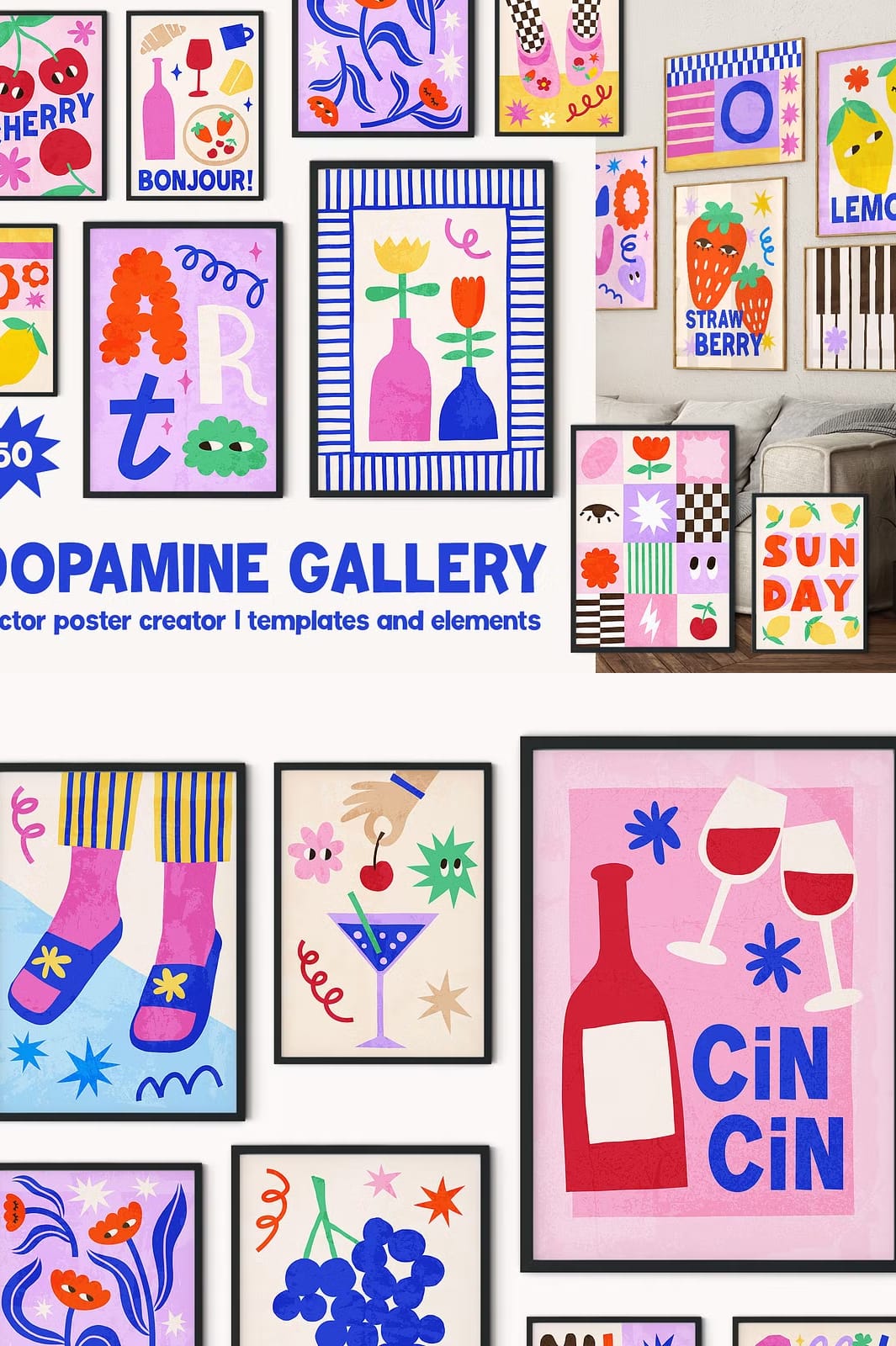 Don’t miss out on this opportunity! The Dopamine Gallery Collection empowers you with everything needed for creating stunning wall art effortlessly . Whether you’re an experienced designer looking for fresh ideas or someone just starting their creative journey , this collection has something valuable waiting just for YOU!