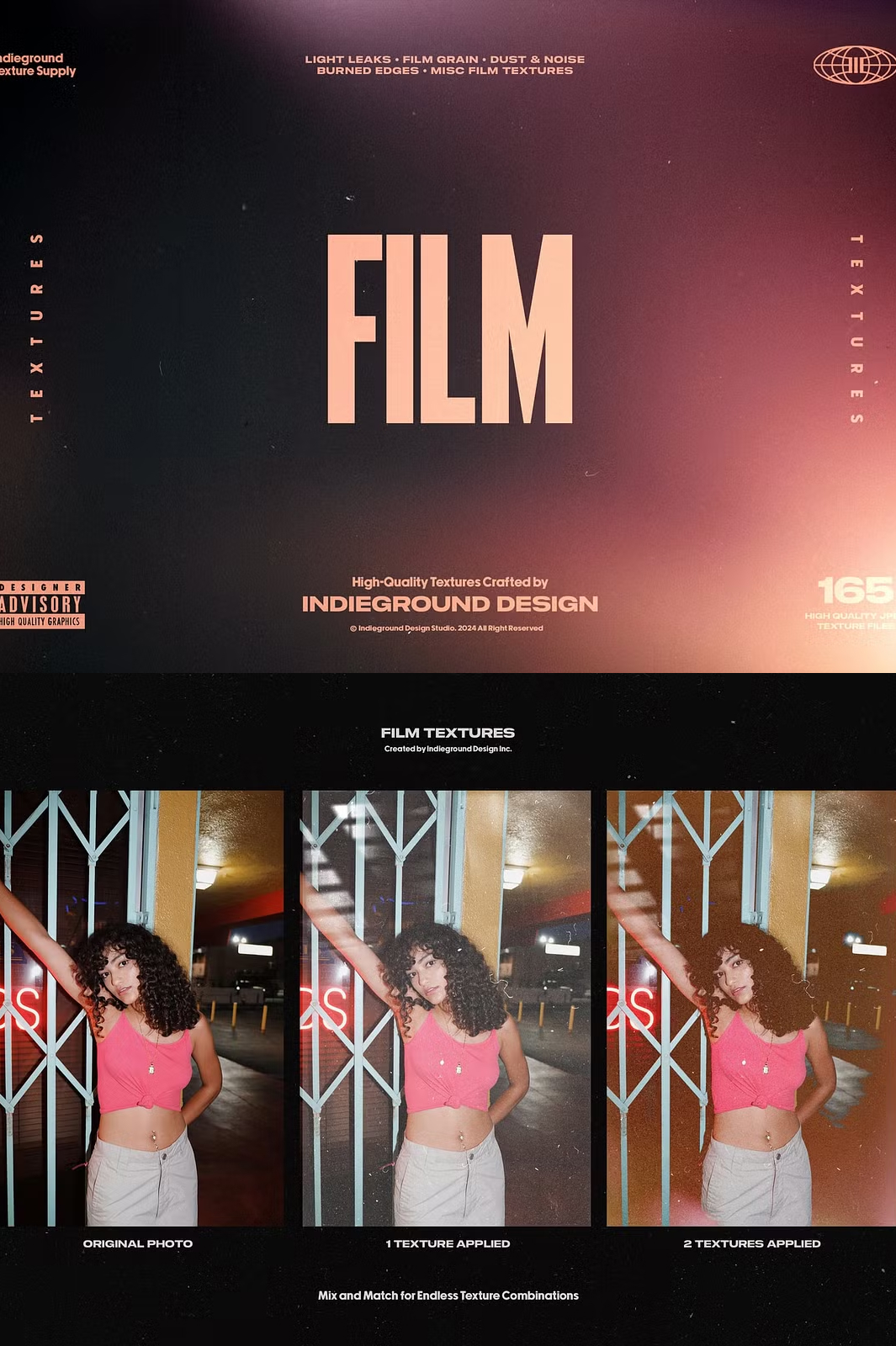 - Authentic scanned textures from real analog film.