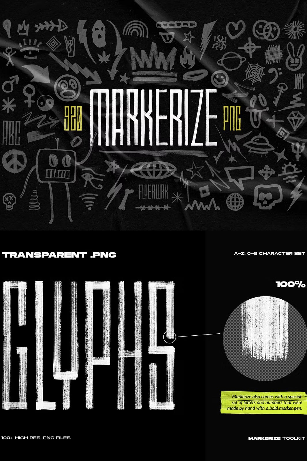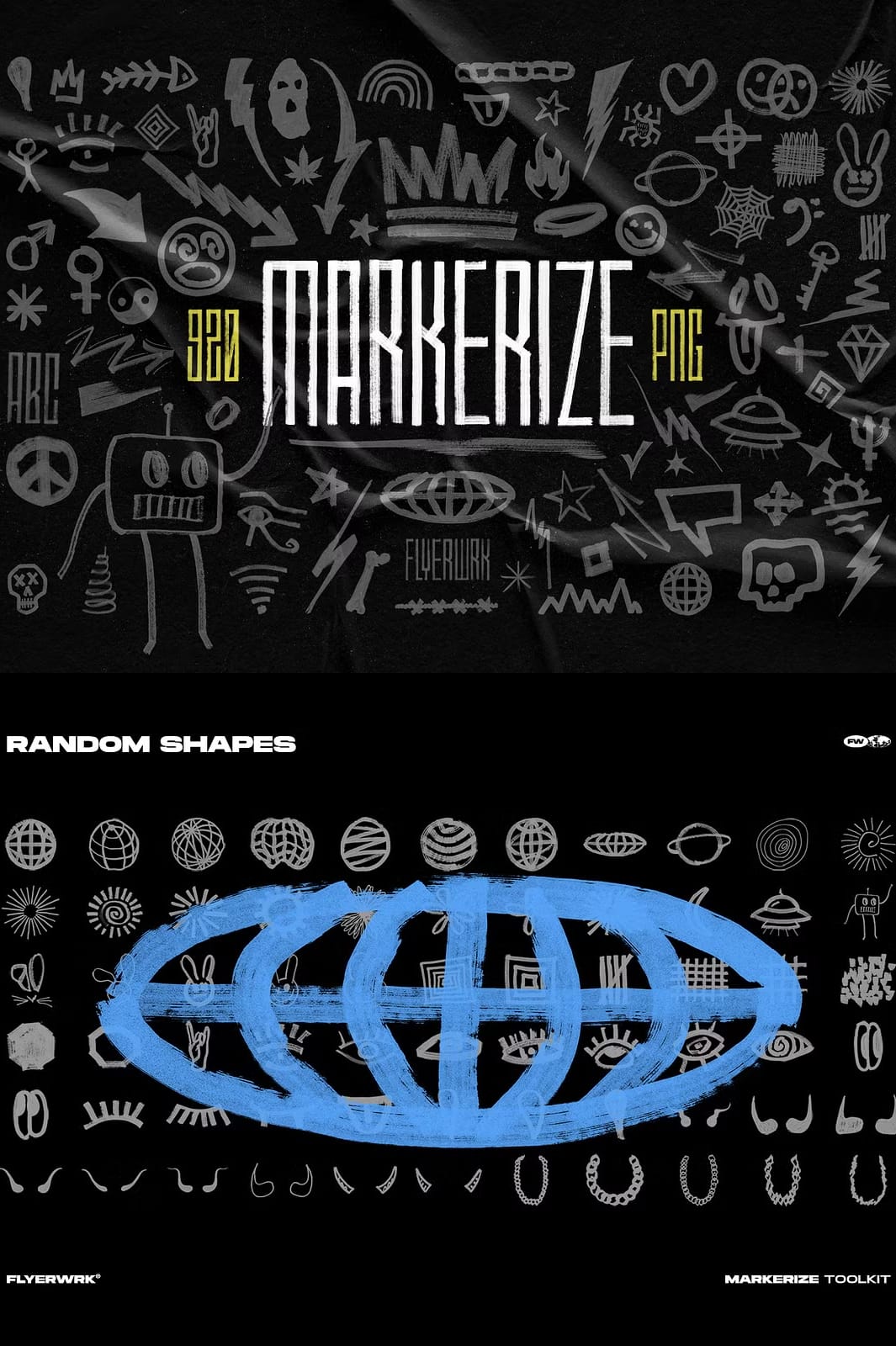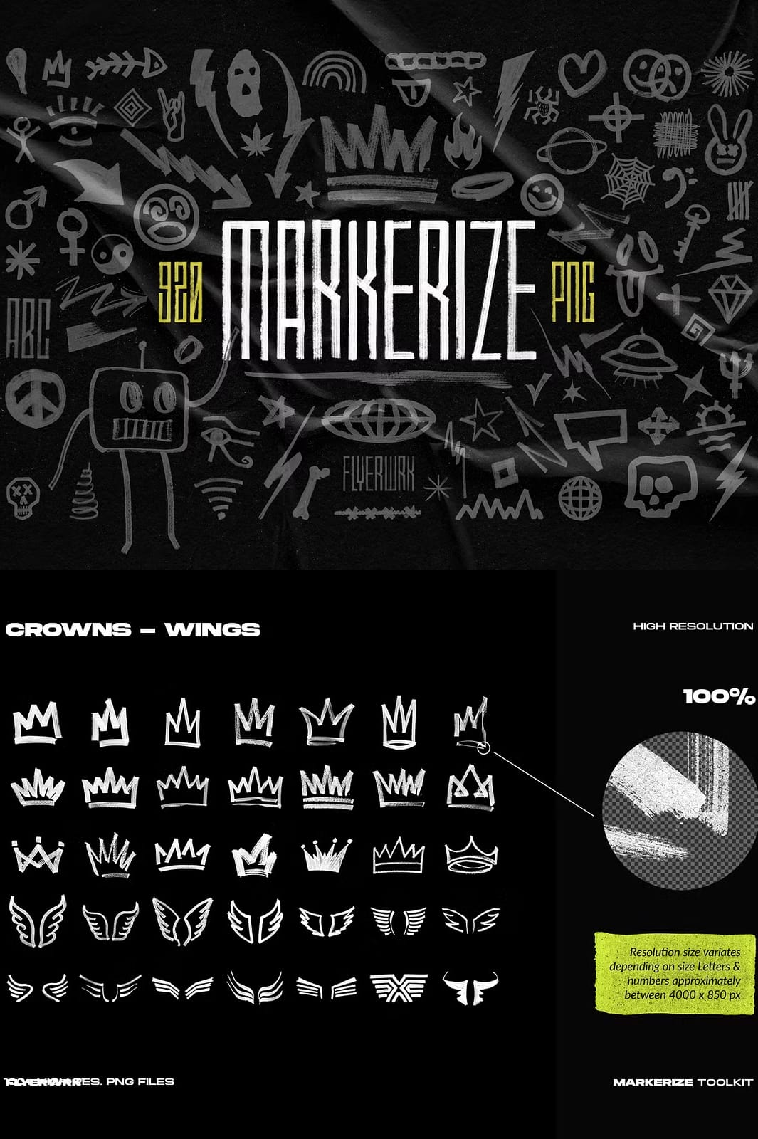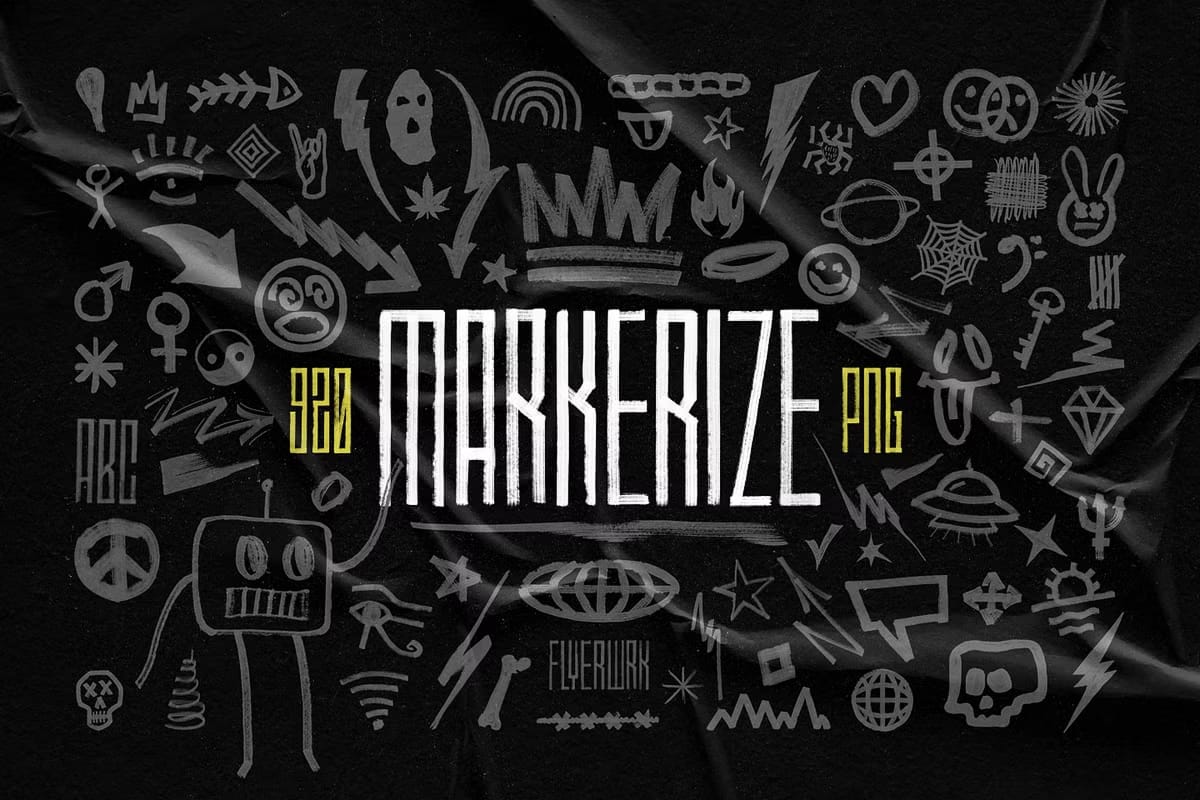 The Markerize collection includes an impressive total of 820 different design elements. Each element is meticulously crafted using real brush strokes to ensure authenticity and depth in every piece. This variety allows you to mix and match elements seamlessly in your projects: