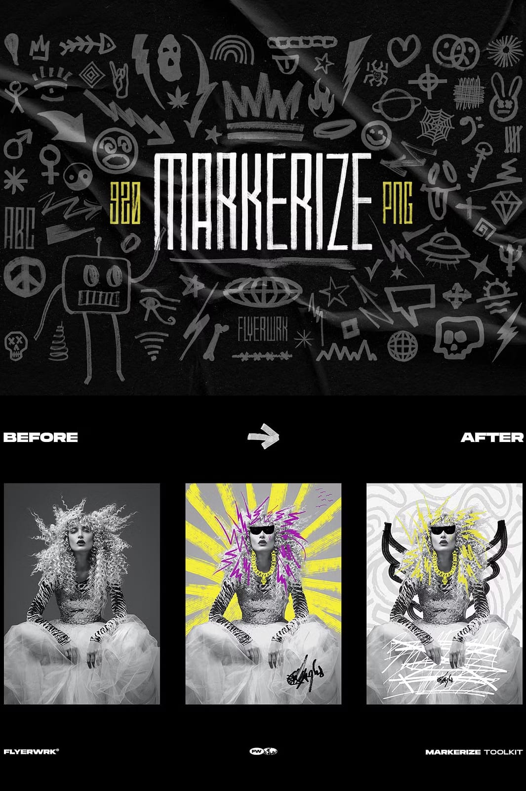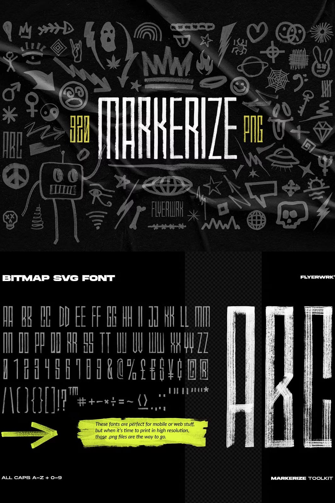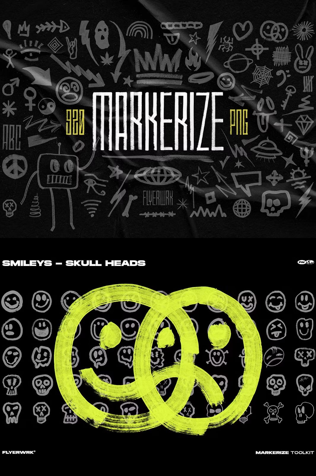 The Markerize collection includes an impressive total of 820 different design elements. Each element is meticulously crafted using real brush strokes to ensure authenticity and depth in every piece. This variety allows you to mix and match elements seamlessly in your projects: