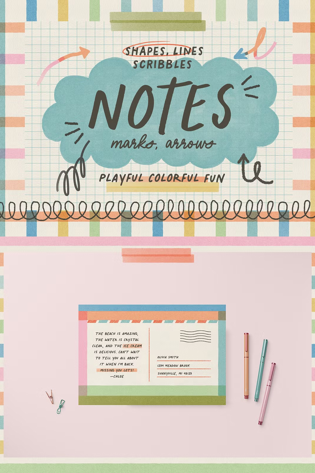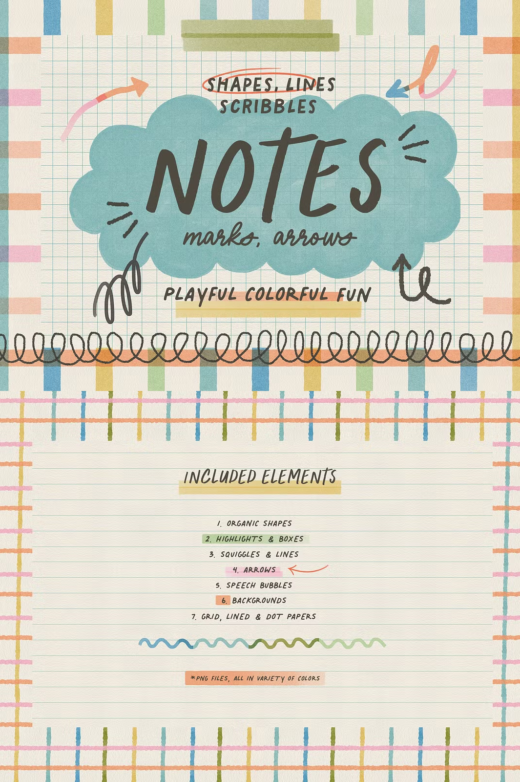 Introducing a vibrant collection of fun colorful doodle shapes, arrows, and playful marks designed to ignite your creativity! This assortment is perfect for adding a touch of charm and personality to your designs. With these ready-to-use graphic elements, you can effortlessly infuse your work with a unique flair that stands out.