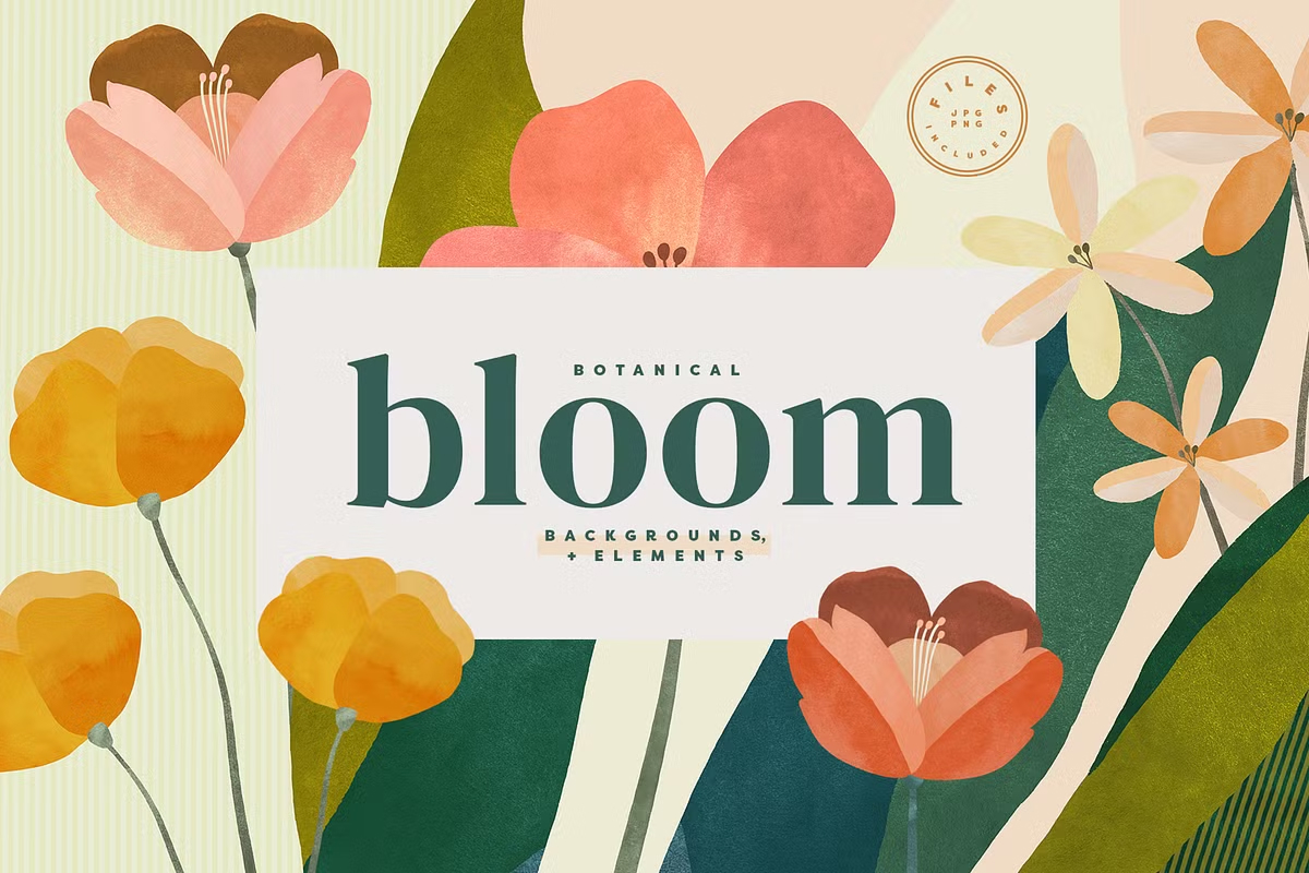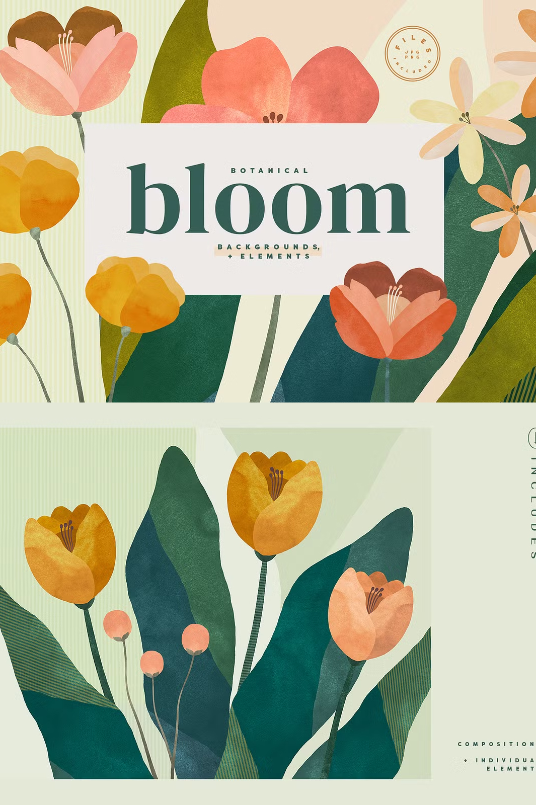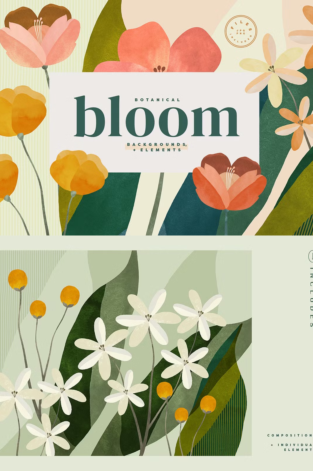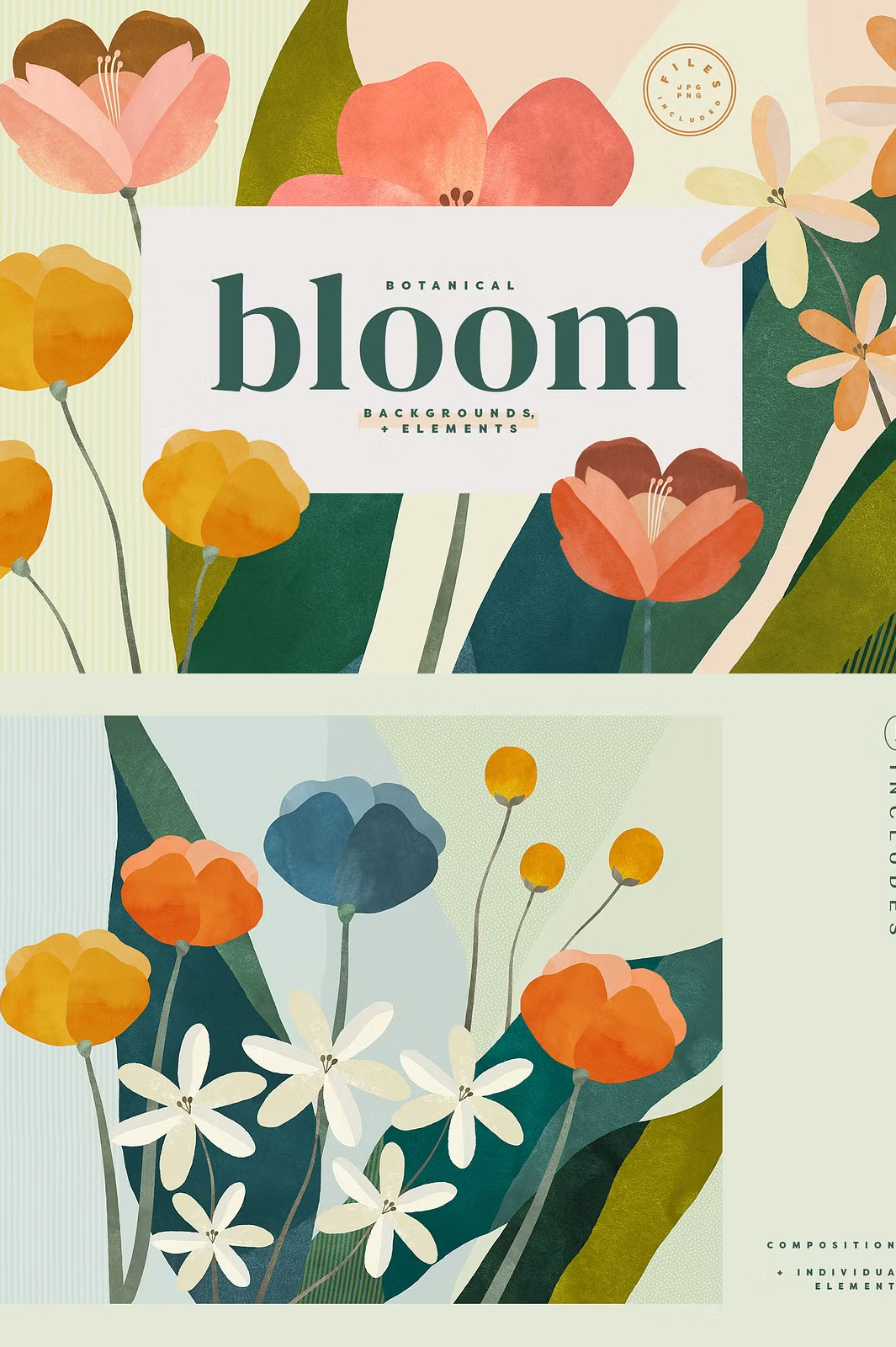 This collection includes a variety of handcrafted floral shapes and pre-made backgrounds to help you create unique and eye-catching compositions. Use them as-is or mix and match to craft something completely your own. The transparent backgrounds make layering a breeze, allowing for endless creative possibilities.