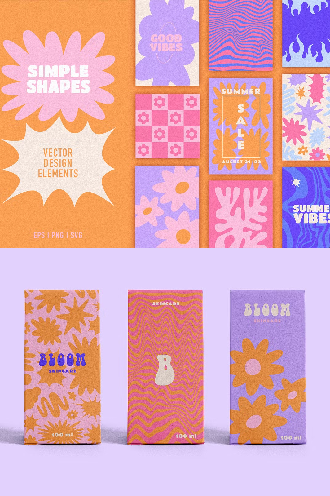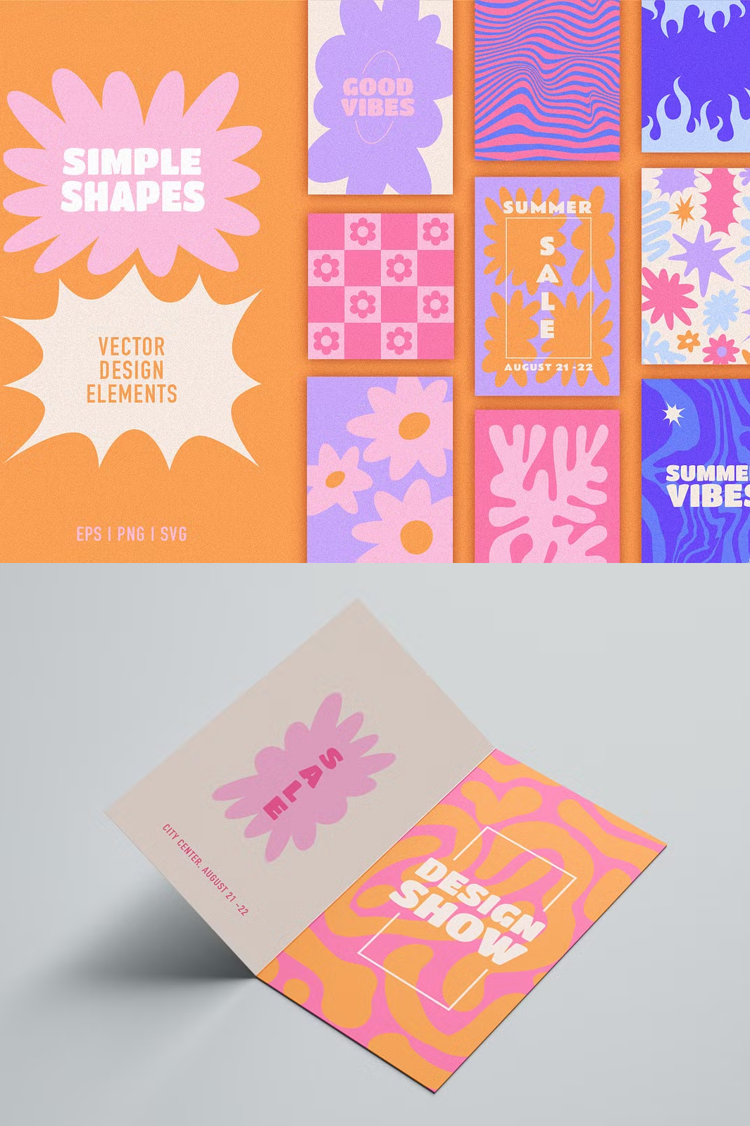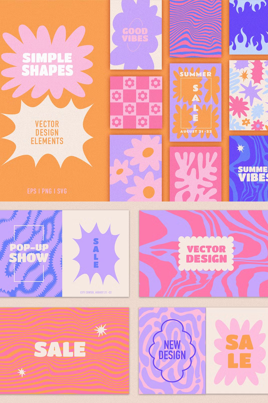 Step into a world of vibrant creativity with the Simple Shapes Collection! This set is packed with versatile vector graphic elements including logo templates, frames, borders, and backgrounds, all designed to bring a fun, decorative, and retro-inspired aesthetic to your projects.