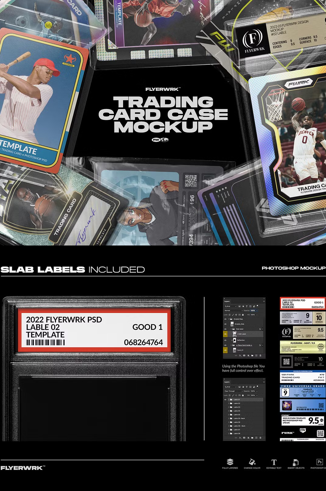 - 🏷️ 8 Slab Label Templates (PSD) – Add a professional touch to your cards.