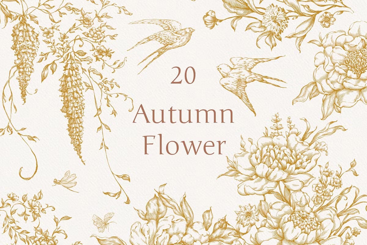 Use the Autumn Flower Clip Art and Pattern Collection to create wedding invitations, seasonal greeting cards, wall art, packaging designs, social media graphics, scrapbooking projects, textile patterns, and much more. The warm, natural aesthetic of this collection makes it a valuable resource for any autumn-inspired design.