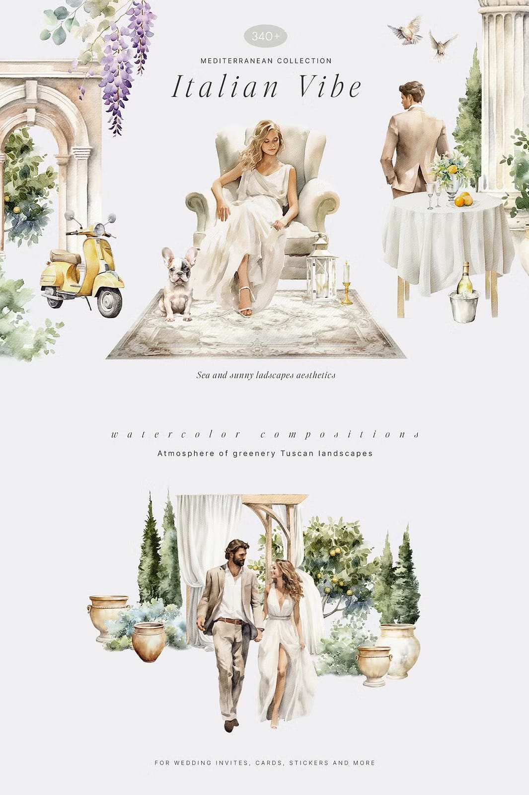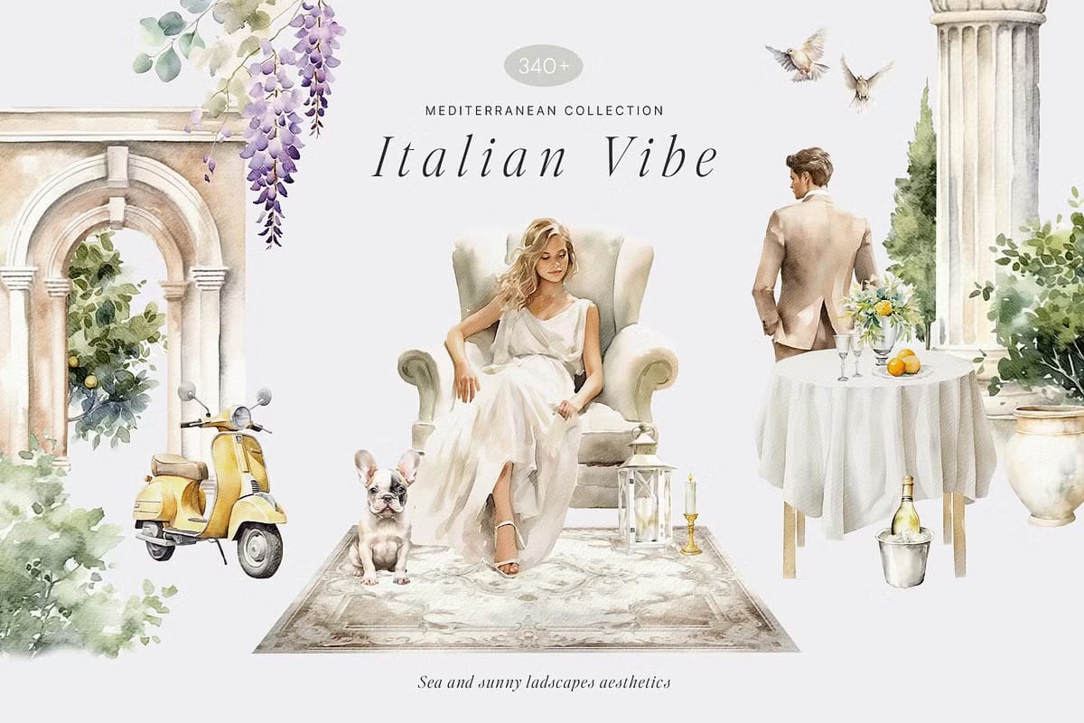 The Italian Vibe Mediterranean Wedding collection is ideal for designers, event planners, and creatives who want to infuse their work with the romance and sophistication of Italy. Use these elements to craft: