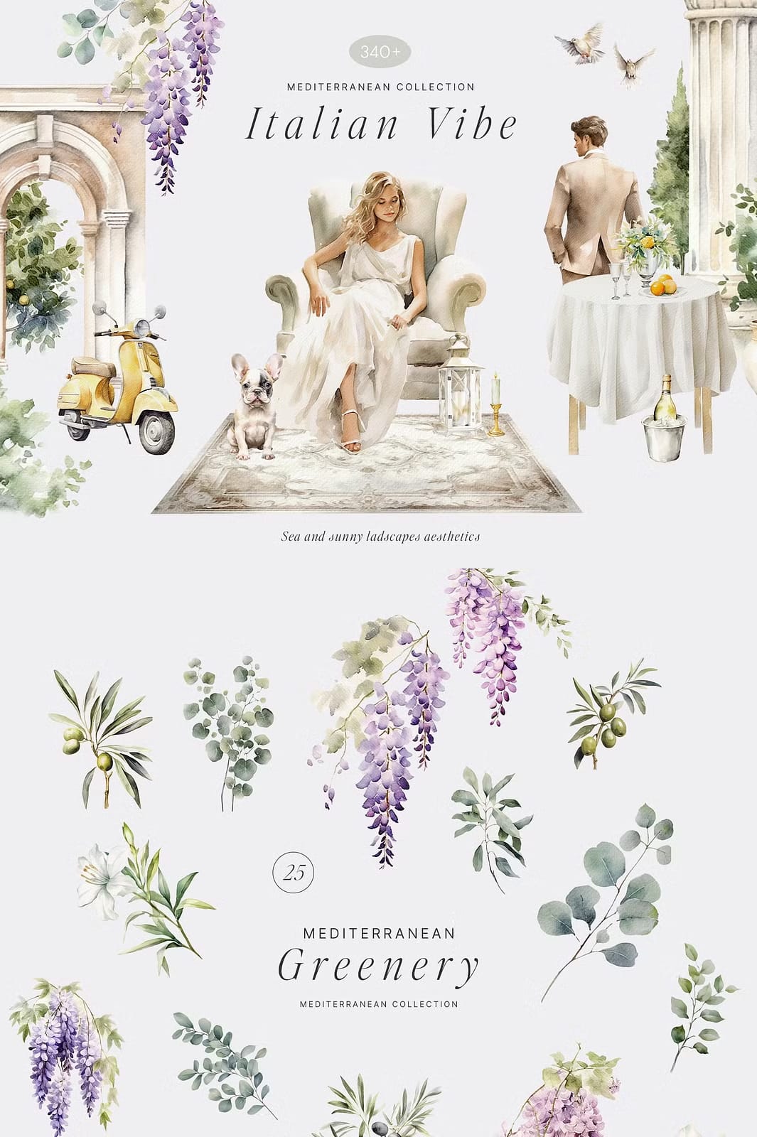 Each element in this collection is meticulously hand-painted with watercolors, scanned at high resolution, and carefully cleaned to ensure crisp, vibrant images. The modern watercolor style blends seamlessly with traditional motifs, making these graphics perfect for a wide range of elegant projects. Use them to create heartfelt gifts, charming home decor, or sophisticated stationery that reflects the warmth and beauty of the Mediterranean lifestyle.