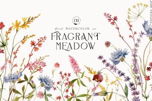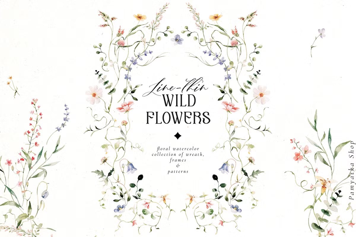 Introducing the Watercolor Wildflowers Collection, an exquisite assortment designed to bring the beauty of nature into your creative projects. This collection features an array of hand-painted elements that capture the delicate essence of wildflowers found in serene landscapes.
