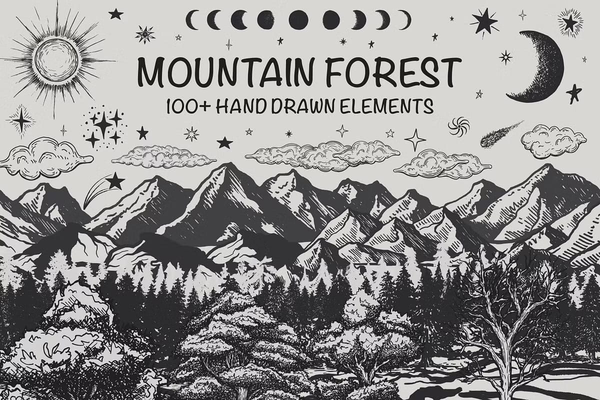 Download the Mountain Forest Hand-Drawn Elements Set Now
