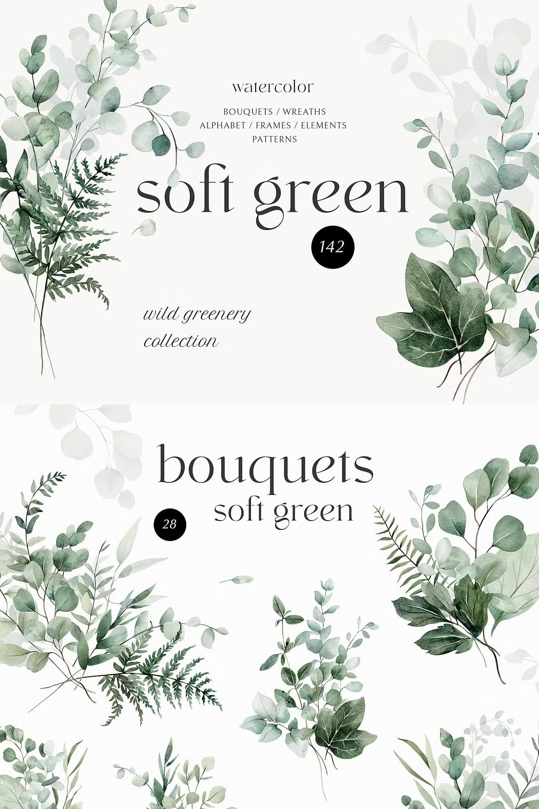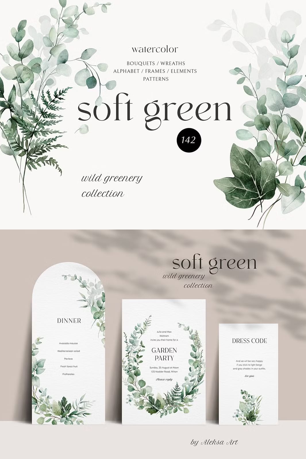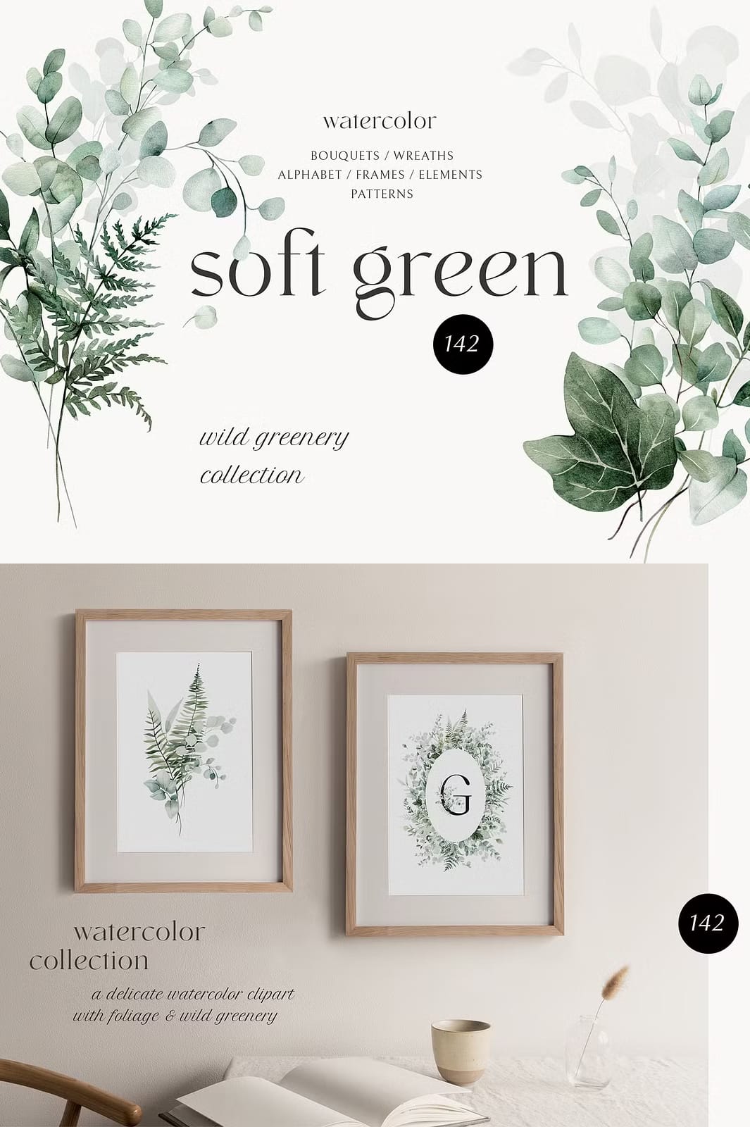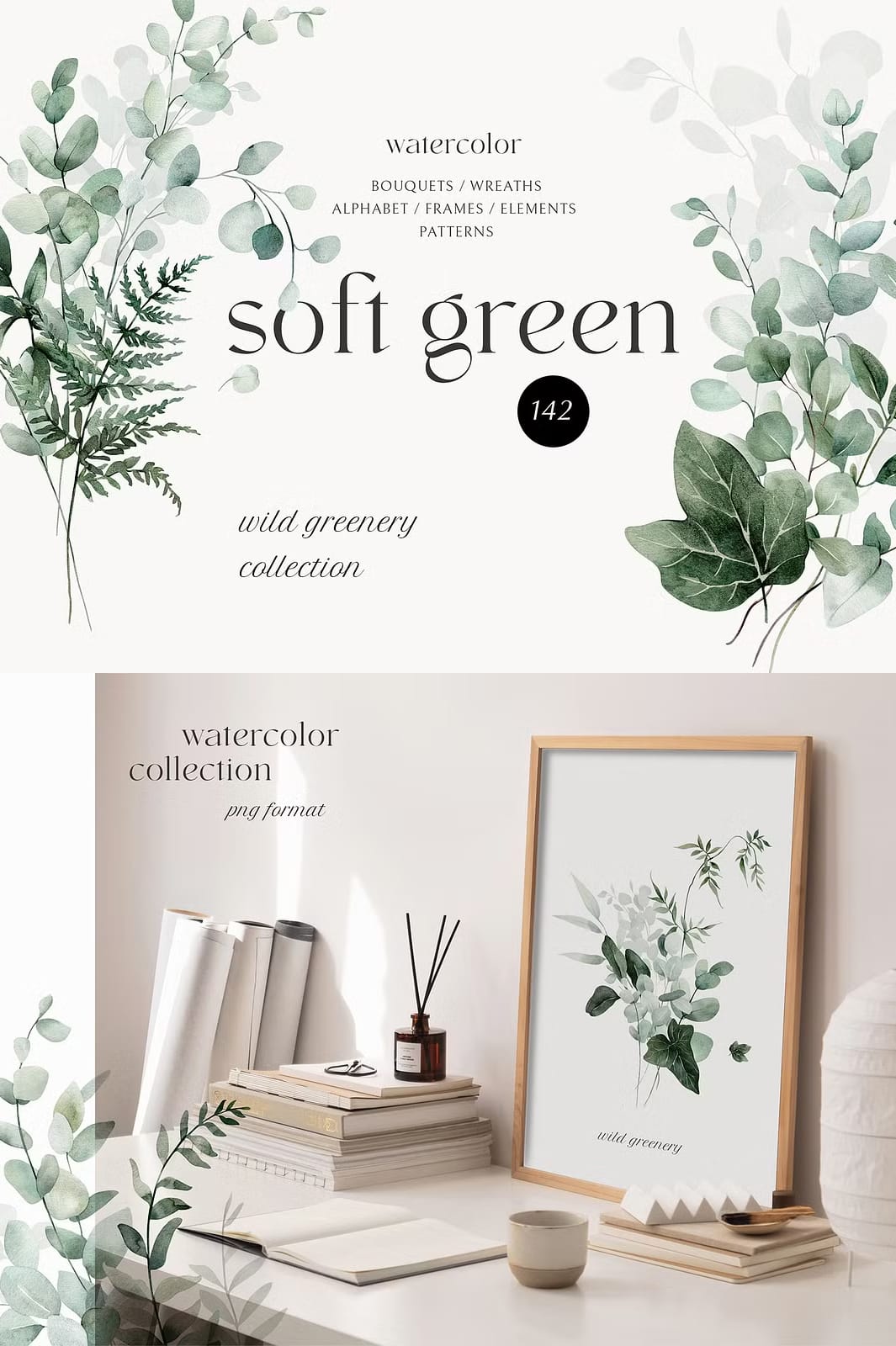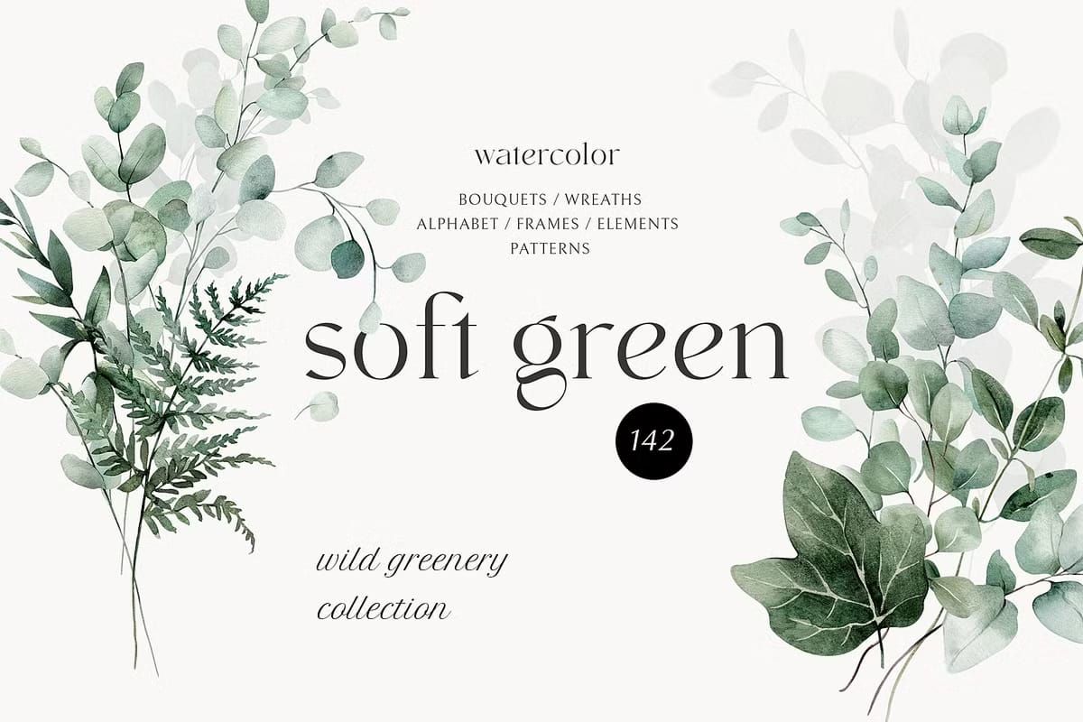 The Soft Green Collection is designed to elevate your creative work across numerous mediums. Use these delicate watercolor illustrations to craft stunning wedding invitations, elegant wall art, heartfelt greeting cards, unique logos, and sophisticated branding materials. They are also perfect for stationery, posters, planners, stickers, corporate identity, gift wrapping paper, textile design, advertising, packaging, covers, blogs, websites, banners, and so much more.