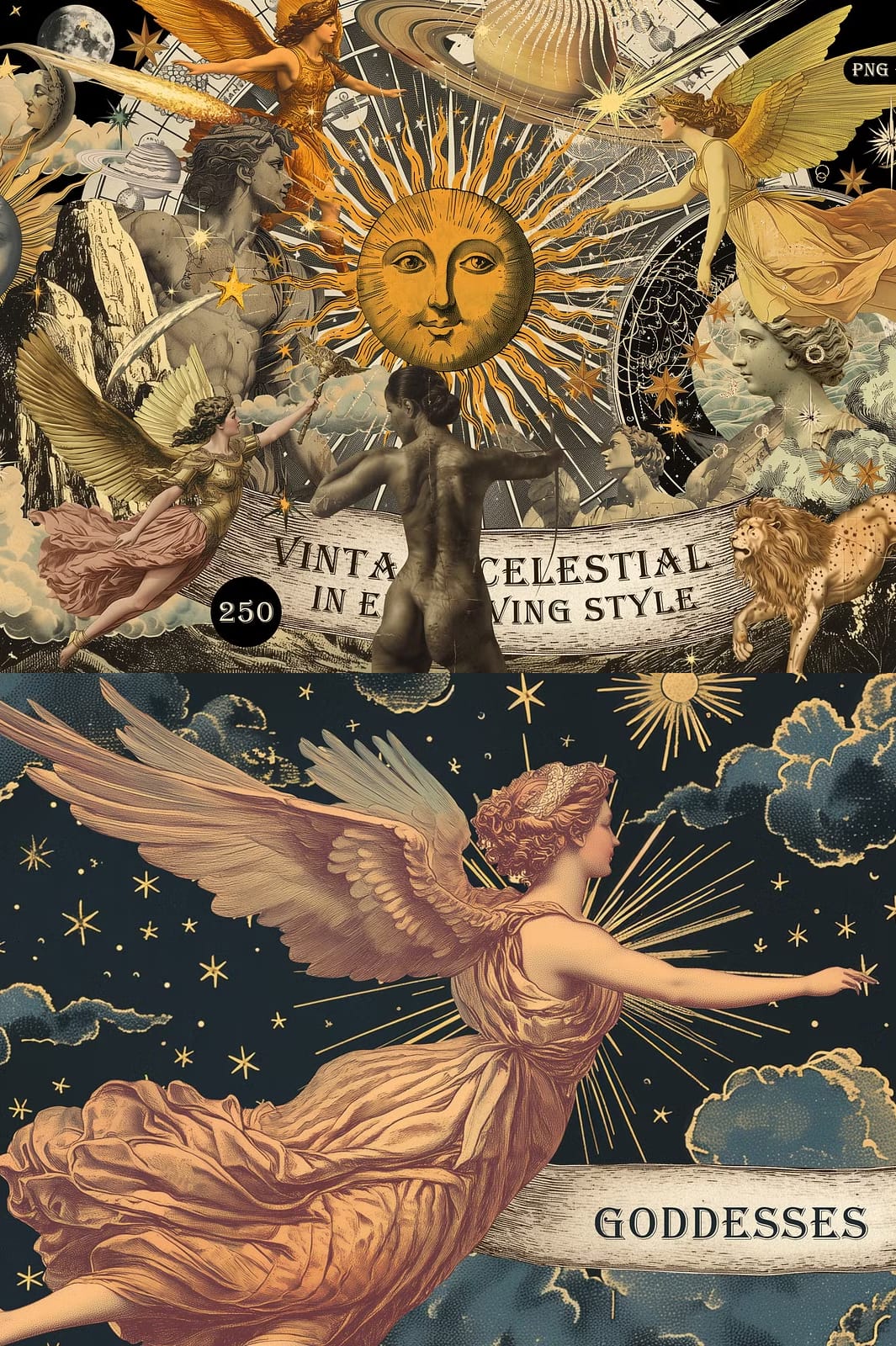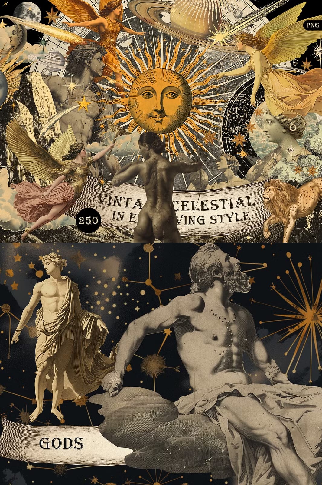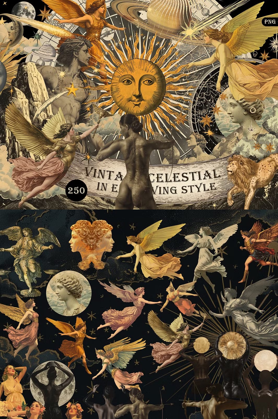 This vintage celestial collection is designed to actively enhance your creative workflow. Use these elements to: