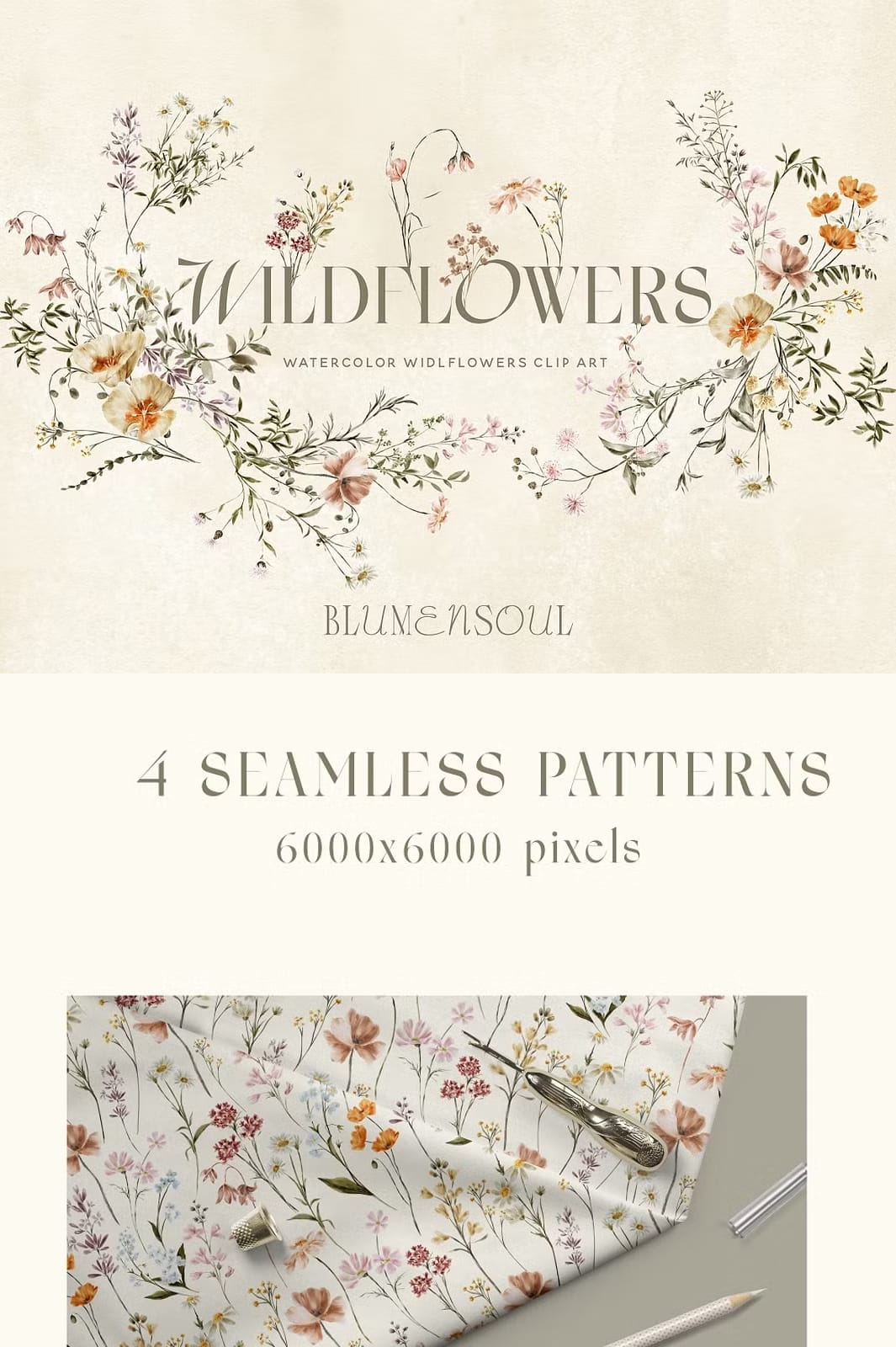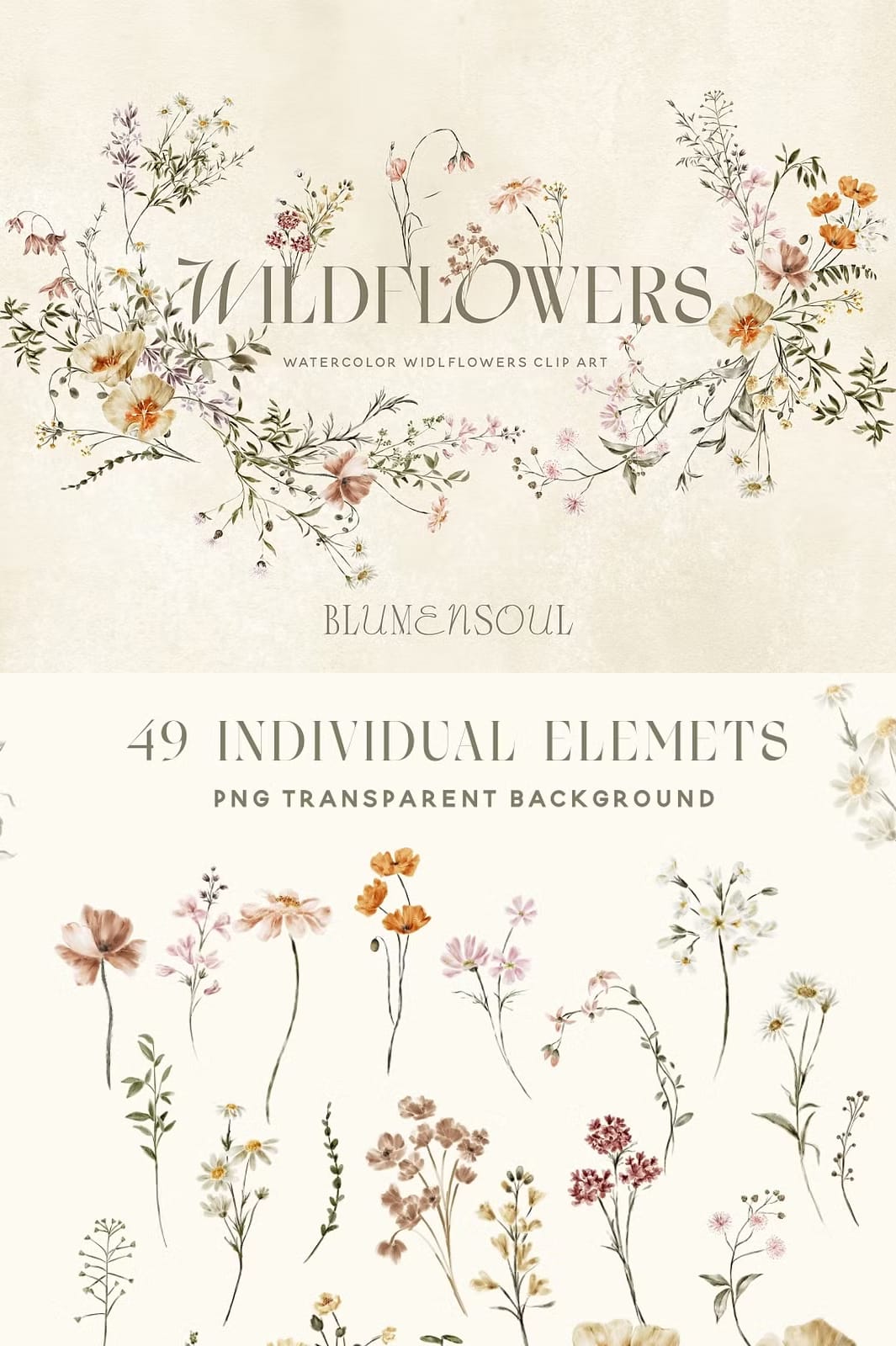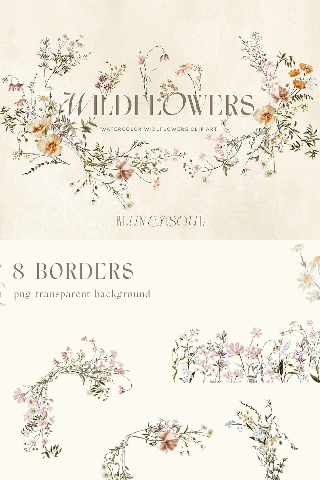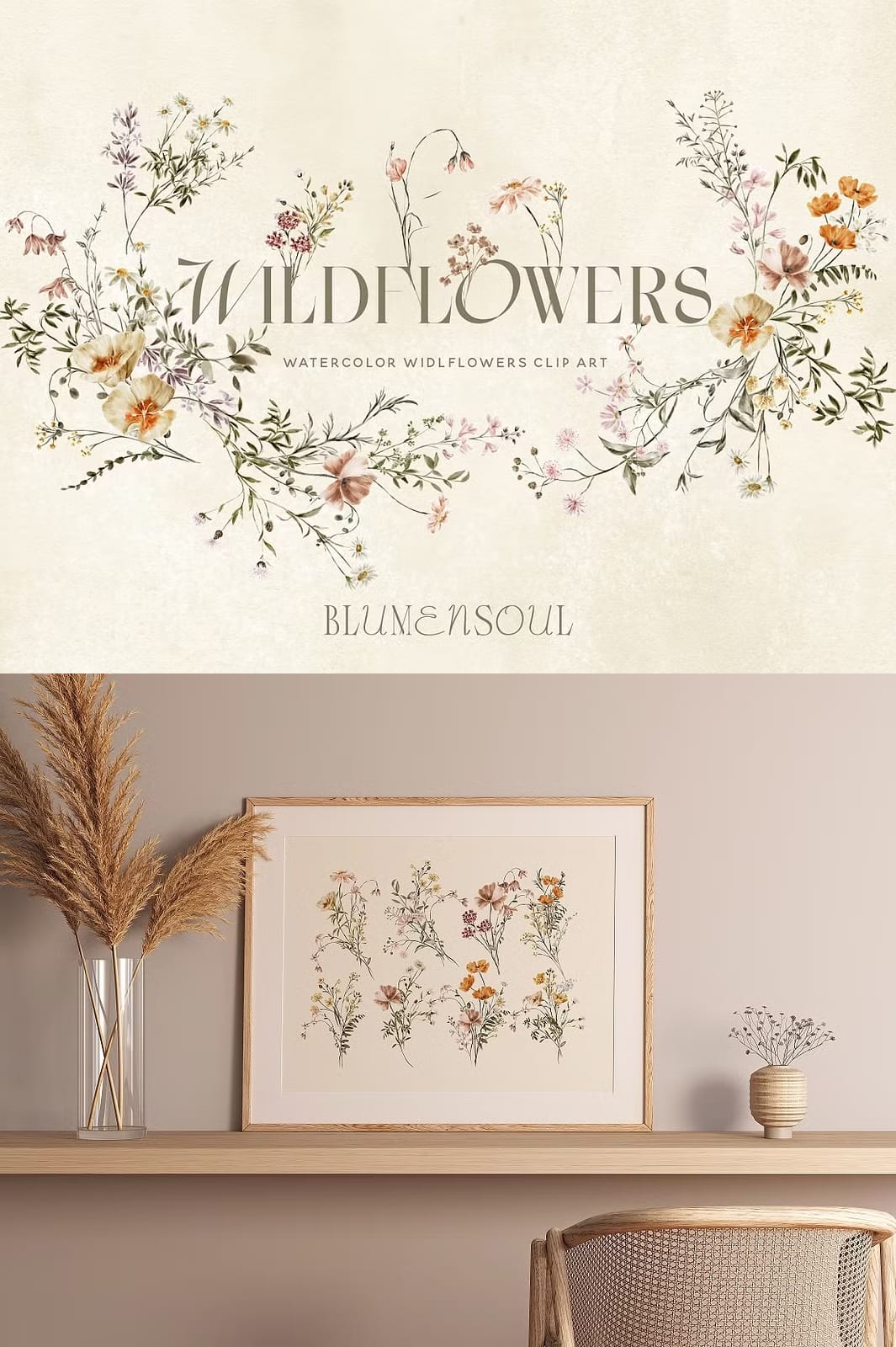 Discover the Wildflowers Watercolor Flowers Clip Art Collection, a stunning assortment of hand-painted floral elements designed to add a touch of natural charm and sophistication to your creative projects. This collection features a diverse range of wildflower illustrations, including individual elements, bouquets, frames, wreaths, seamless patterns, and decorative borders. Each piece is crafted with meticulous attention to detail, capturing the delicate beauty and vibrant colors of wildflowers in a high-resolution watercolor style.