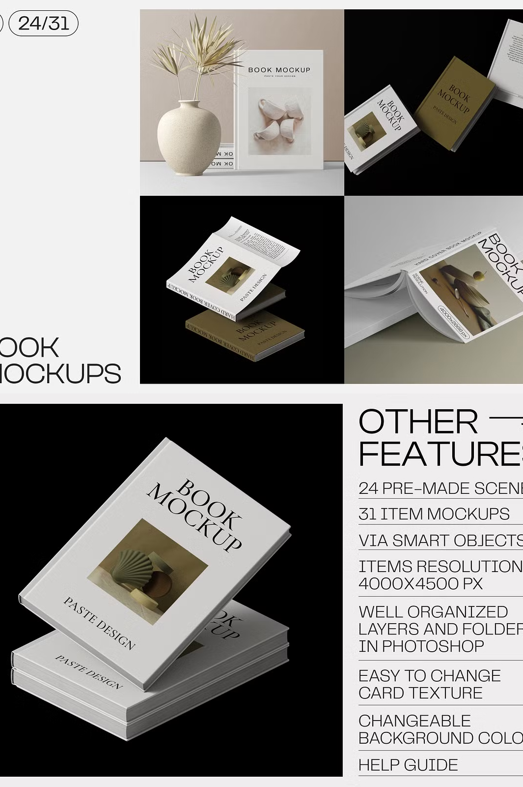 - π **31 Isolated Book Mockups** β Perfect for creating unique compositions.