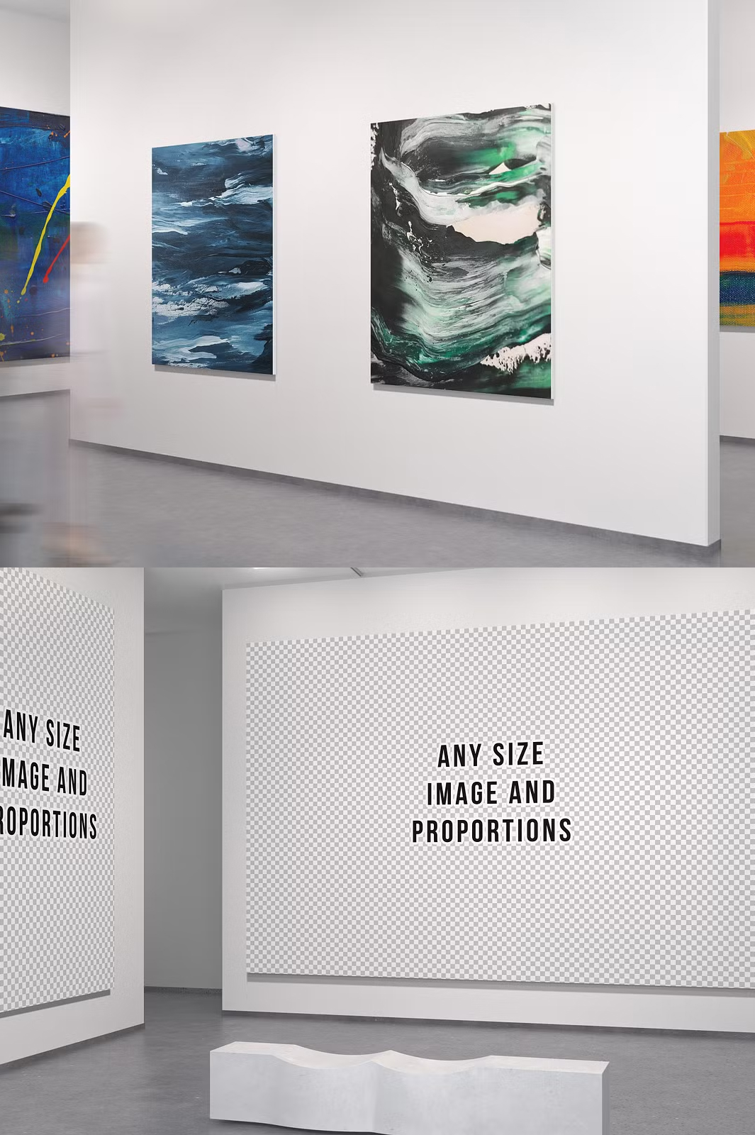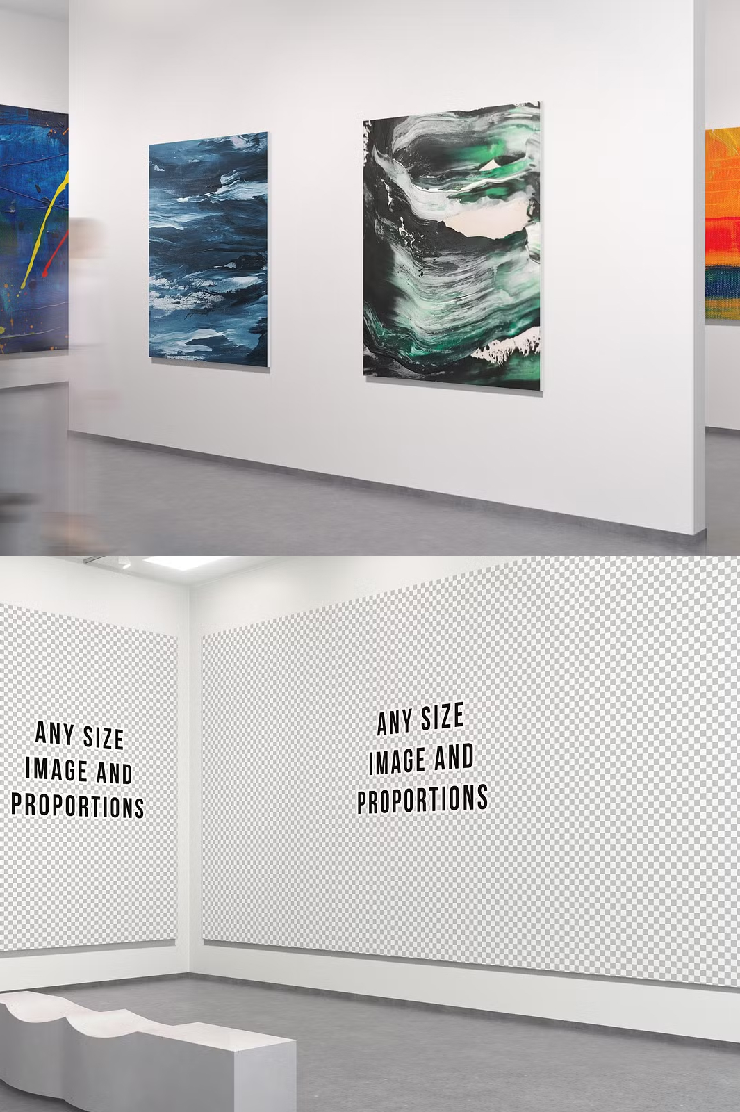 This mockup collection is perfect for artists and designers who want to display their work in a gallery-like environment. You can add one or multiple images to each wall, customize framing options, and achieve a highly realistic presentation with soft lighting and natural shadows.