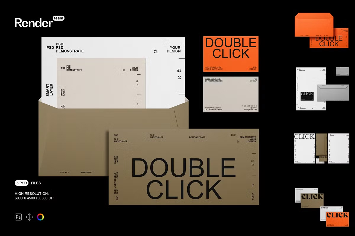 - 5 PSD Mockups Included: A variety of perspectives to display your brand identity cohesively.
