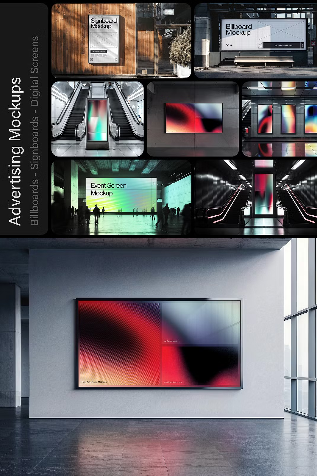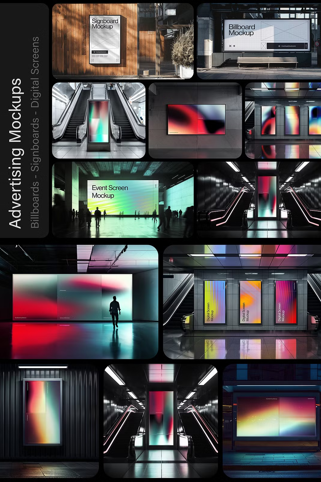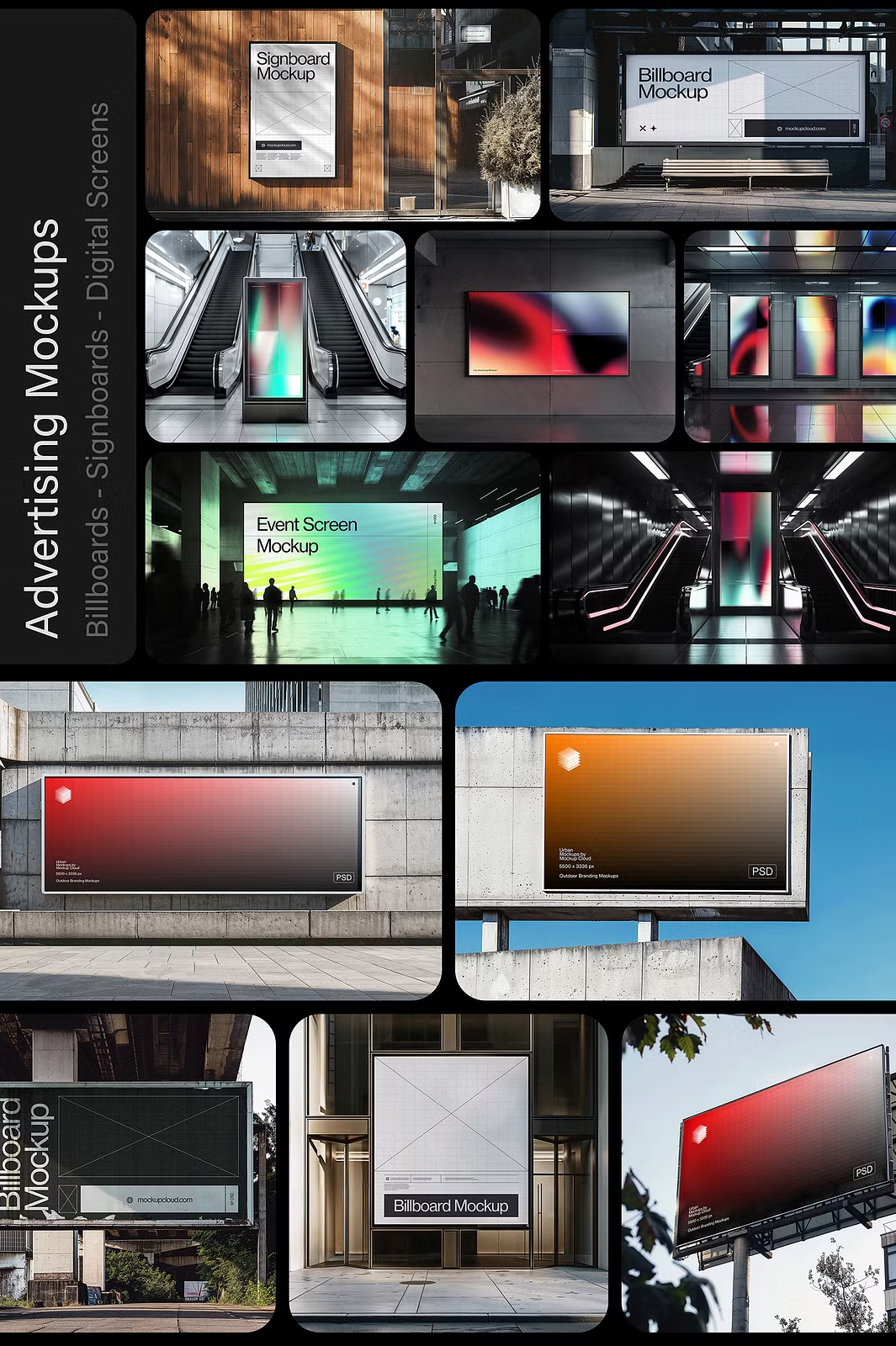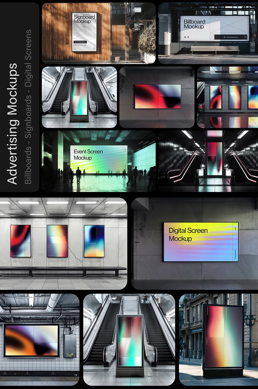 Get instant access to this high-quality mockup set and start creating stunning advertising visuals today.