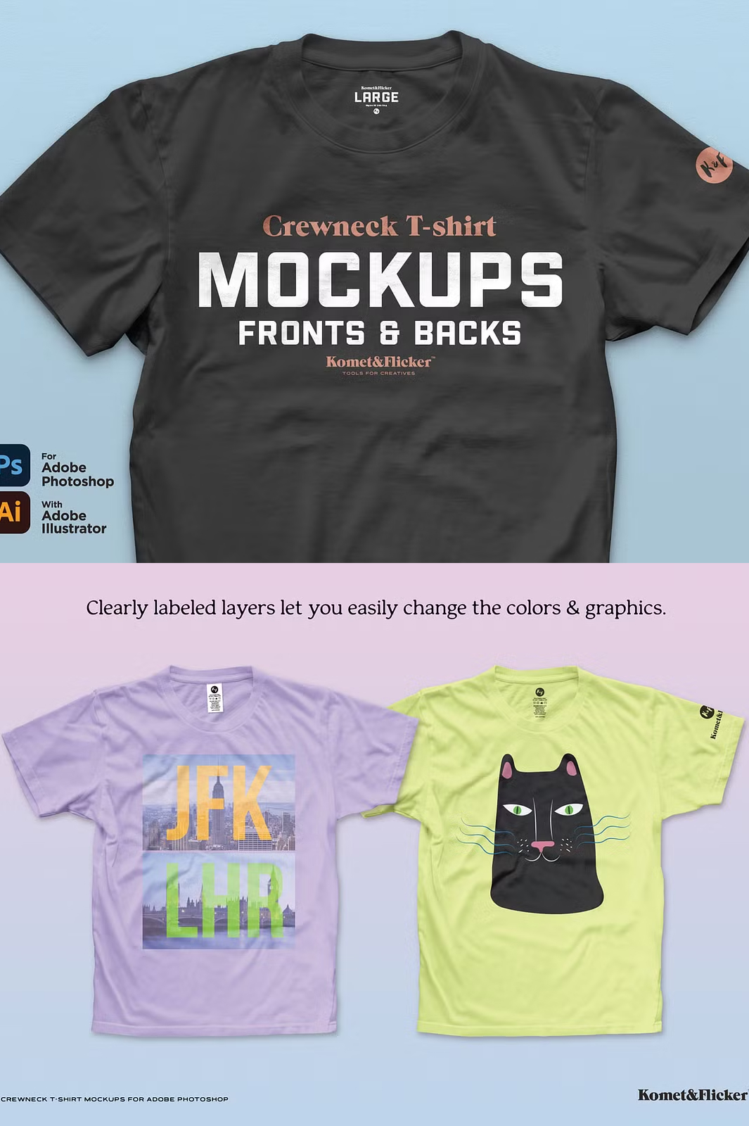 π¨ Easily add your own artwork, **change t-shirt colors, apply all-over graphics, swap backgrounds, and adjust shadows** to create a truly unique look. These **versatile mockups** are ideal for **e-commerce stores, social media marketing, portfolio displays, and client presentations**.