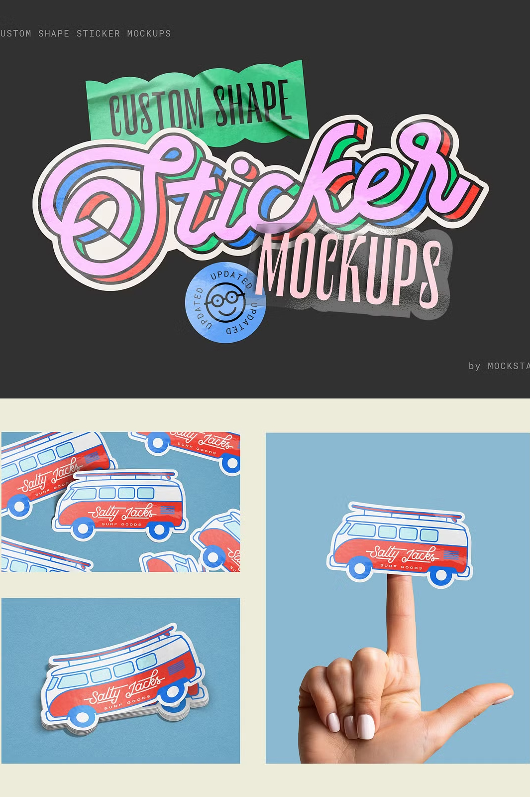 This mockup pack provides everything you need to create professional-quality sticker designs: