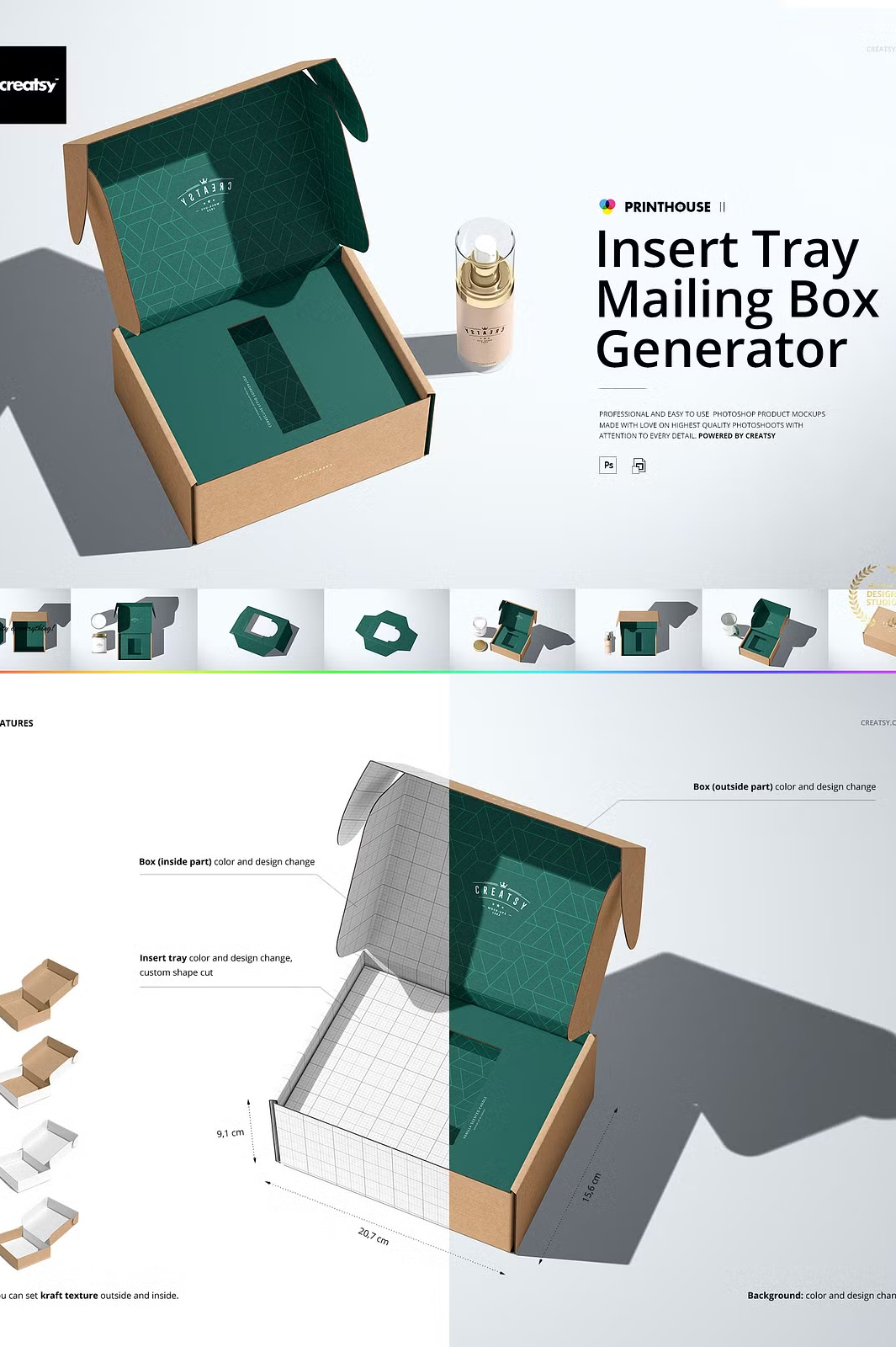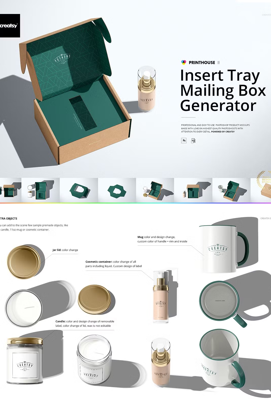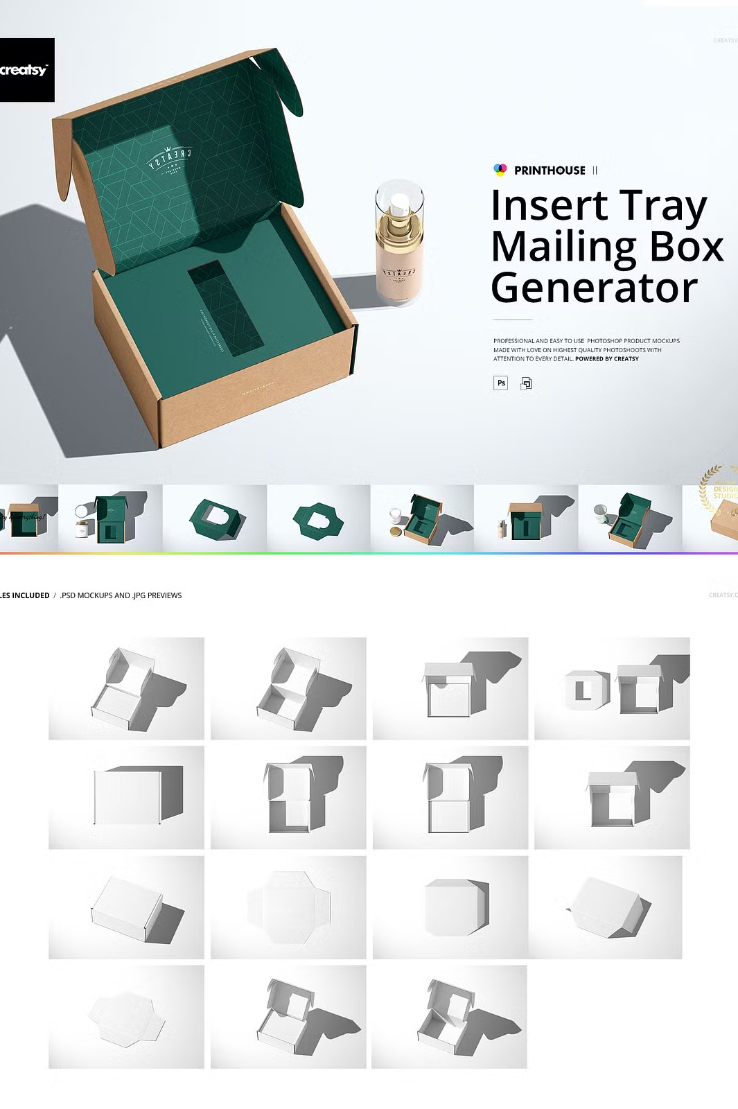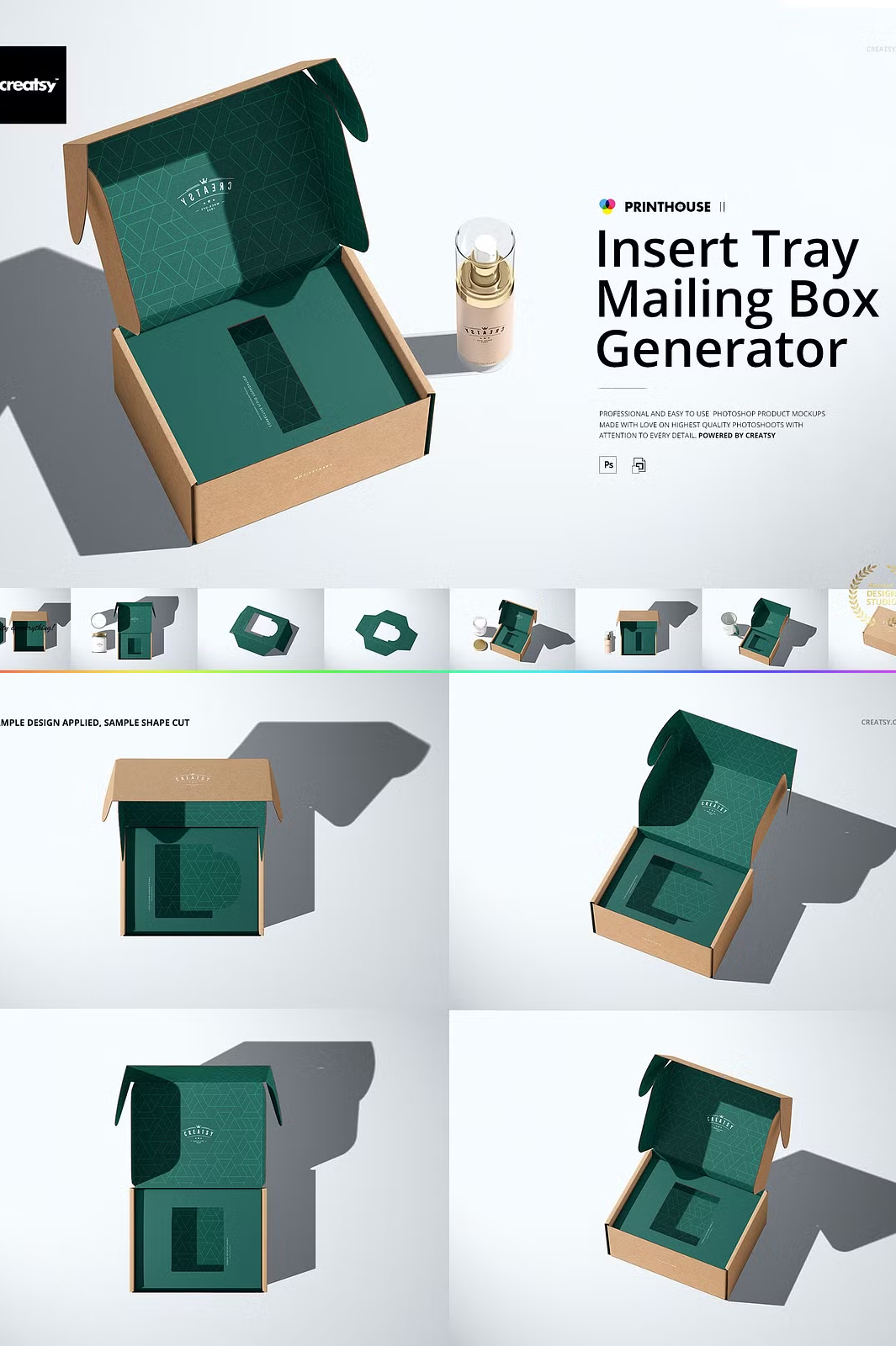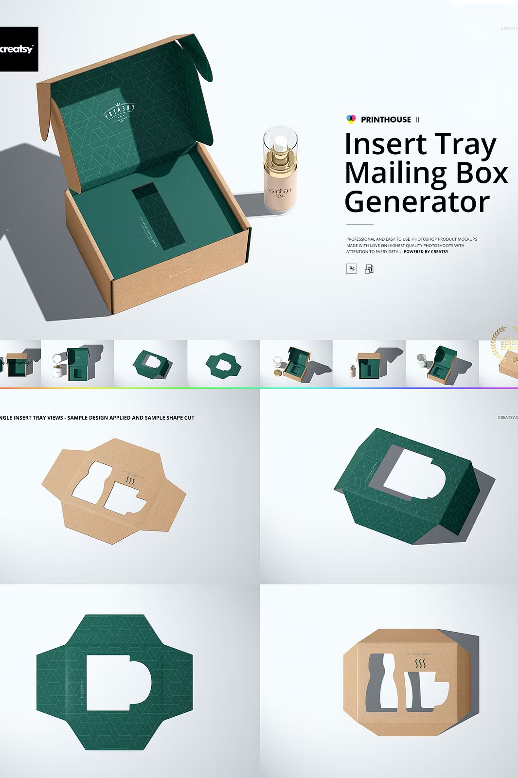 This Insert Tray Mailing Box Mockup Set is designed to help you present your designs in the most realistic way possible. With layered, editable PSD files, you can easily apply your artwork using smart objects and color layers. The set includes high-resolution files, ensuring your final presentation looks professional and high-quality.