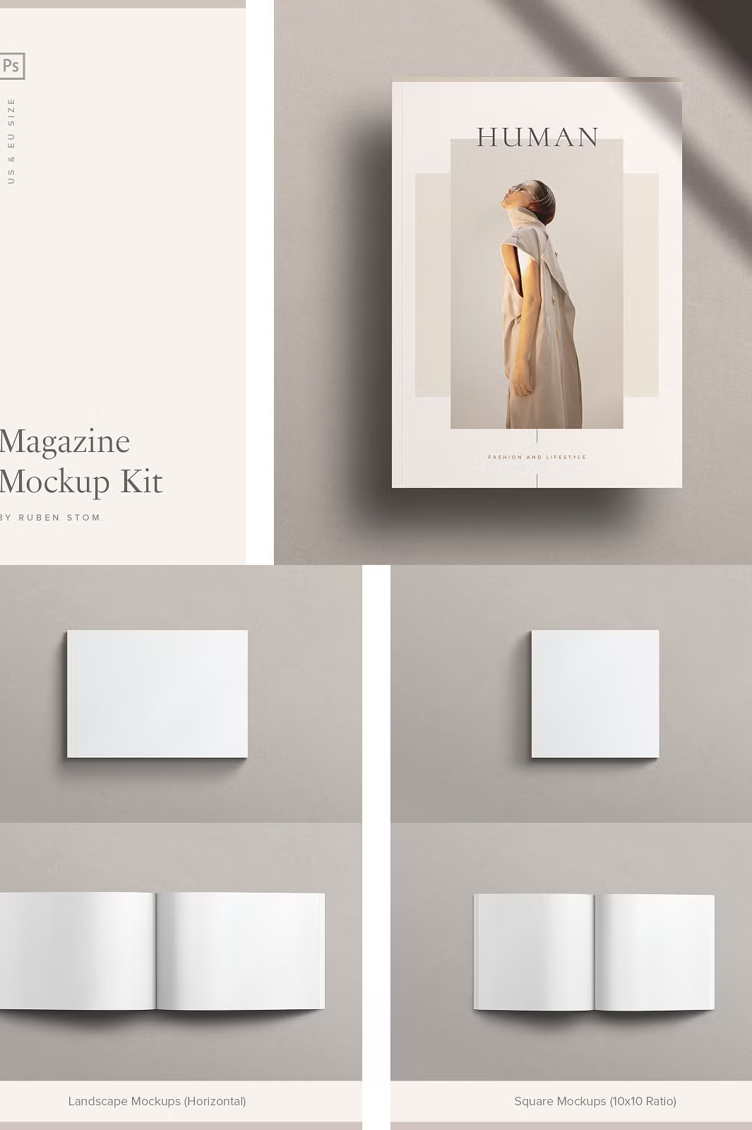 - π Landscape (Horizontal) Magazine Mockups β Cover, Spread, and Folded Spread.