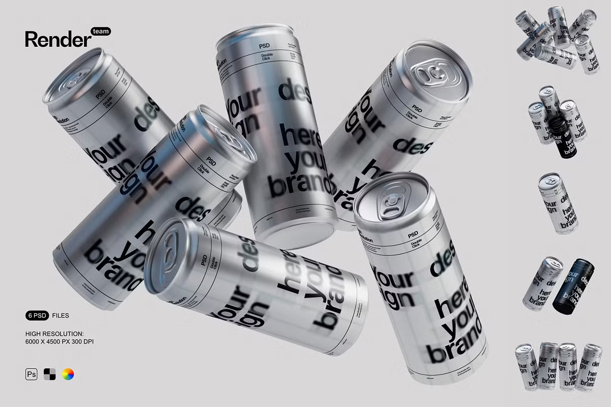 With multiple PSD mockups included, you can **craft dynamic product presentations** that fit your branding and aesthetic needs. Whether you’re showcasing **soda cans, energy drinks, craft beer, or sparkling water**, this mockup set provides **premium-quality visuals** for your designs.