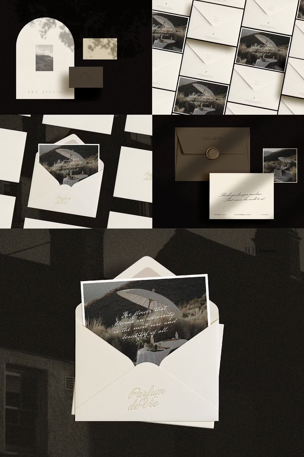 Introducing Sézanne, a **high-quality mockup scene creator** designed to bring **elegance, sophistication, and depth** to your design presentations. With a **dark, refined aesthetic**, this powerful kit offers **14 pre-made scenes** and a **fully customizable master scene**, allowing you to craft stunning visual compositions with ease.