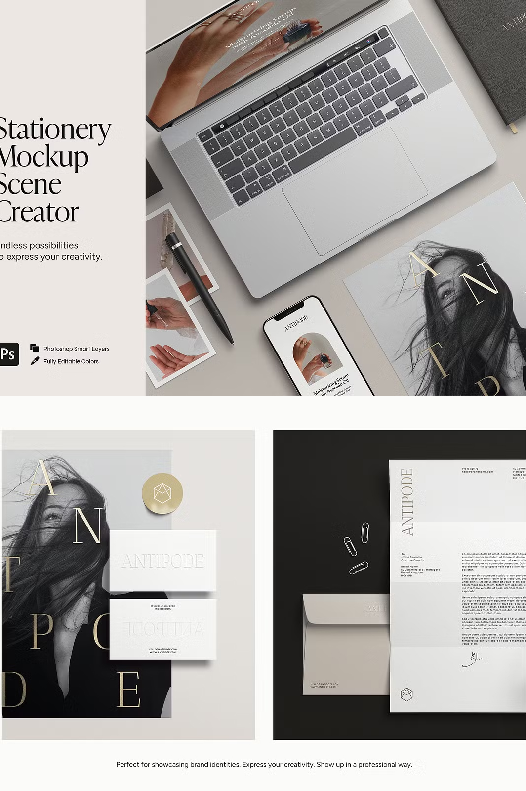 Make a **lasting impression** with the Stationery Mockup Scene Creator β the ultimate tool for designers looking to showcase their branding, websites, mood boards, photography, illustrations, and social media visuals with **professional elegance.**