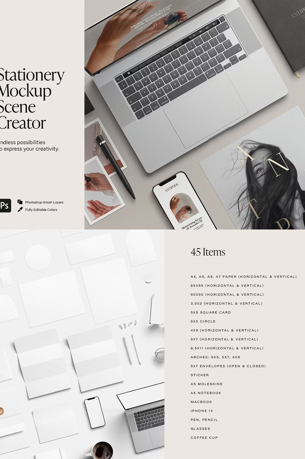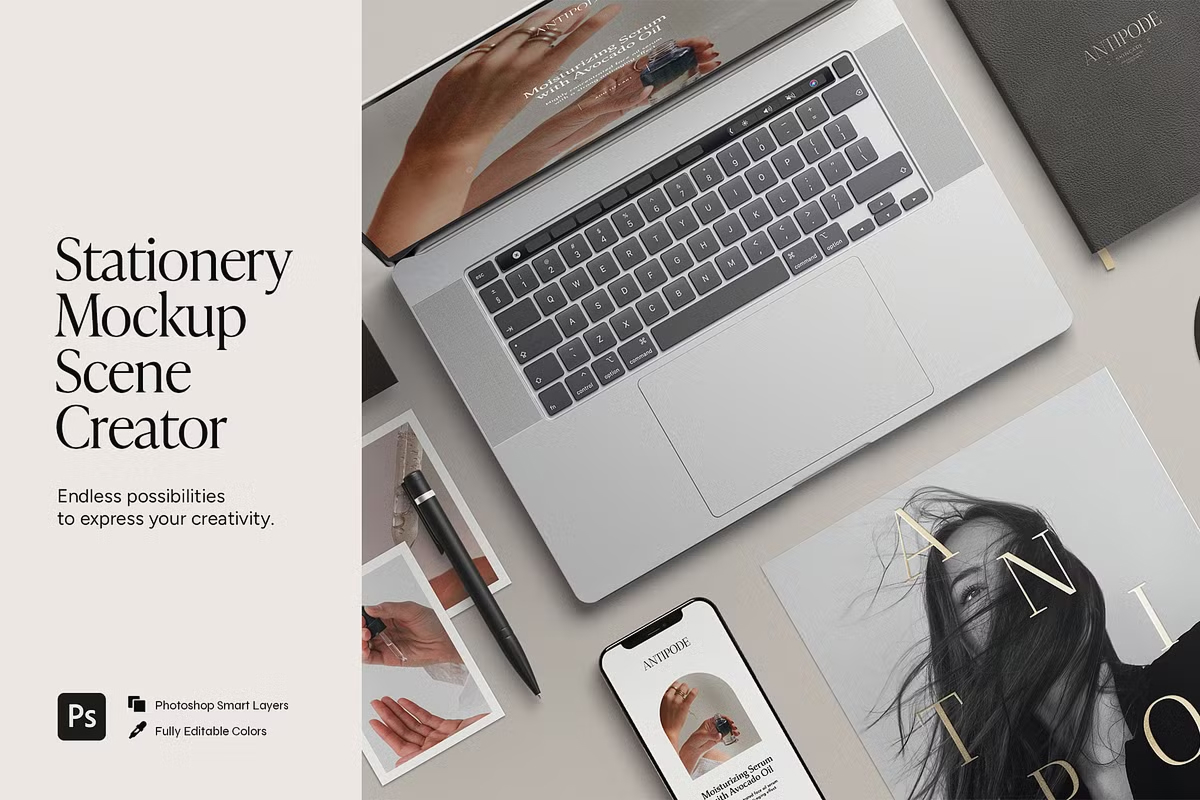 - πΌοΈ **45 High-Quality Stationery Items** β Fully customizable for unique, branded mockups.