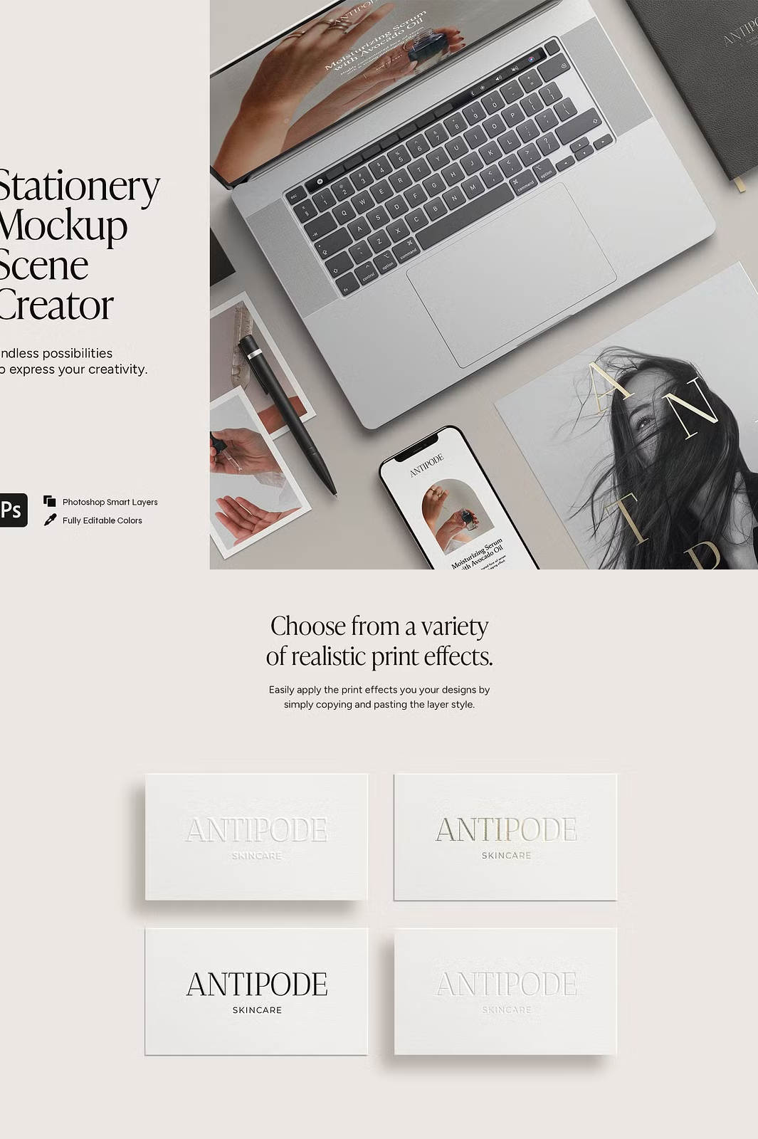 With **pre-made mockup scenes** and **Smart Object functionality**, this product is designed to **save time** while delivering **stunning, professional-quality results.**